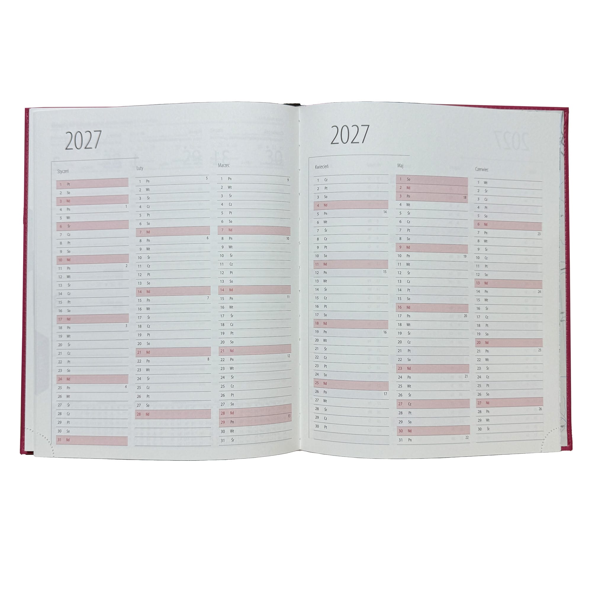 Kalendarz A4 tygodniowy to idealne rozwiązanie dla osób, które cenią sobie organizację czasu w stylowy sposób. Dzięki praktycznemu formatowi bloku wynoszącemu 210X265 mm, oferuje on wygodne i przejrzyste układanie planów na nadchodzące miesiące. Strukturę kalendarza stanowi tygodniowy układ, z 1 tygodniem na 2 stronach, co umożliwia łatwe śledzenie zadań i wydarzeń. Z bogatą zawartością 144 stron oraz 8 stronami z mapami, będzie niezastąpionym pomocnikiem na każdy dzień.