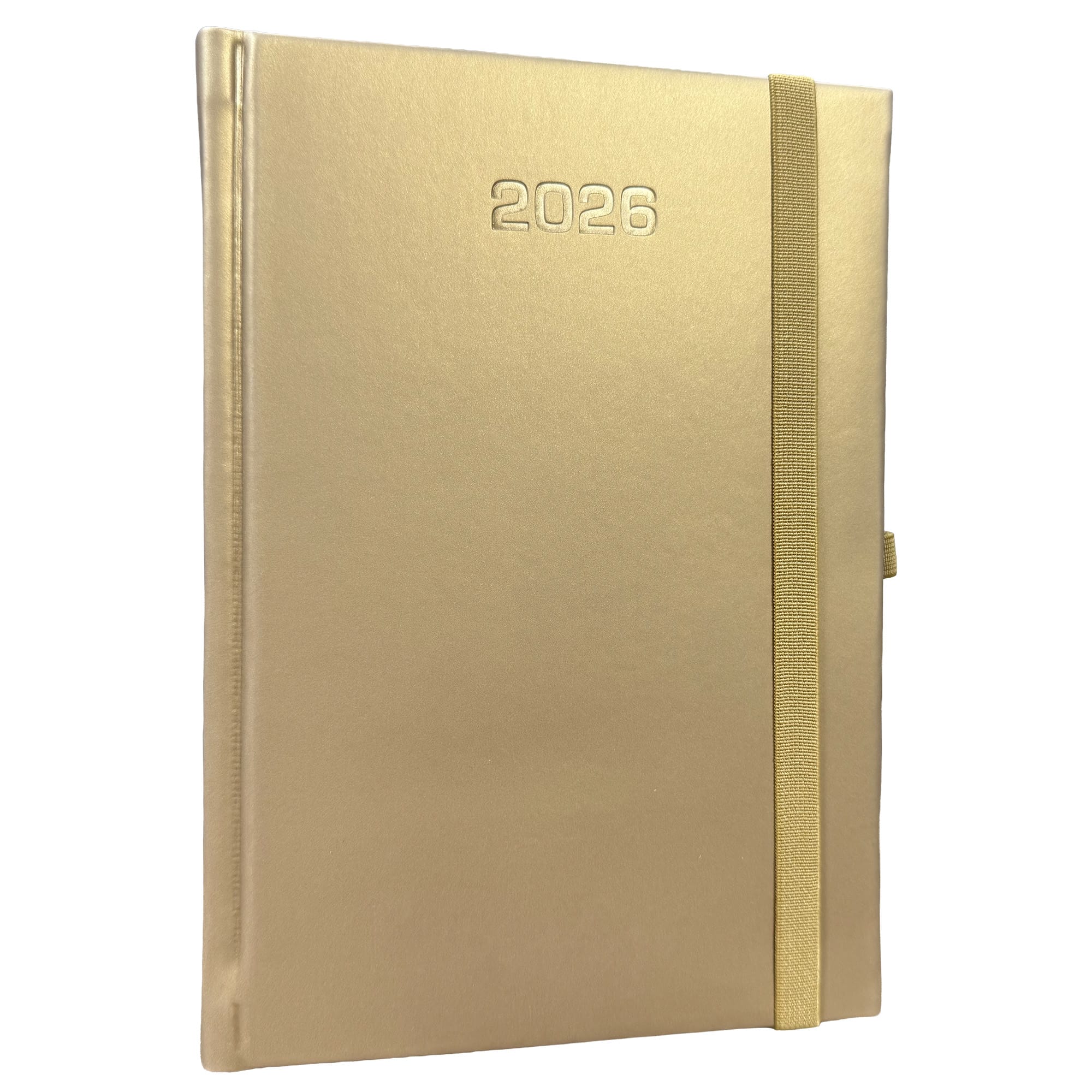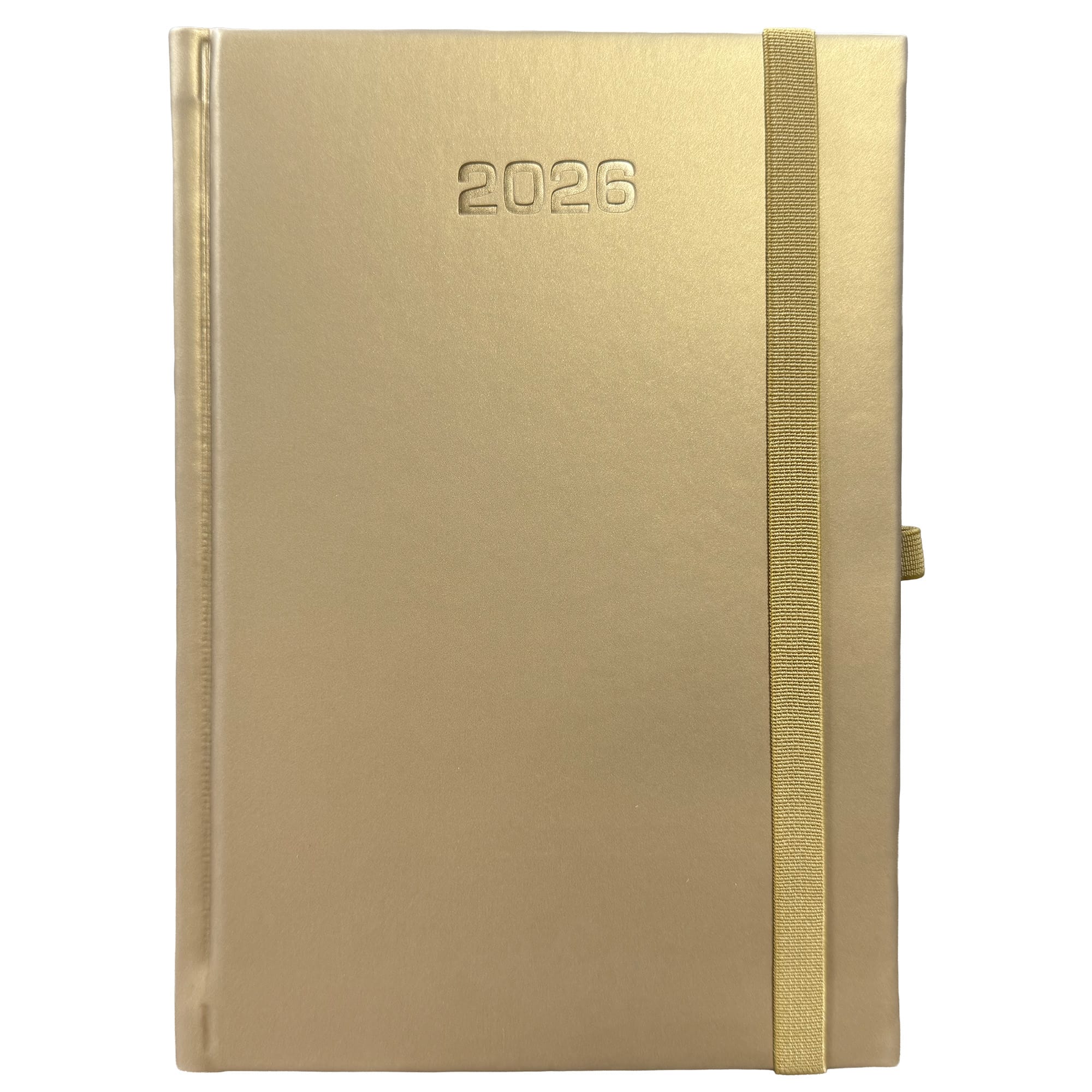 Kalendarz 2026 A5 dzienny sobota niedziela razem z gumką MATOWE ZŁOTO