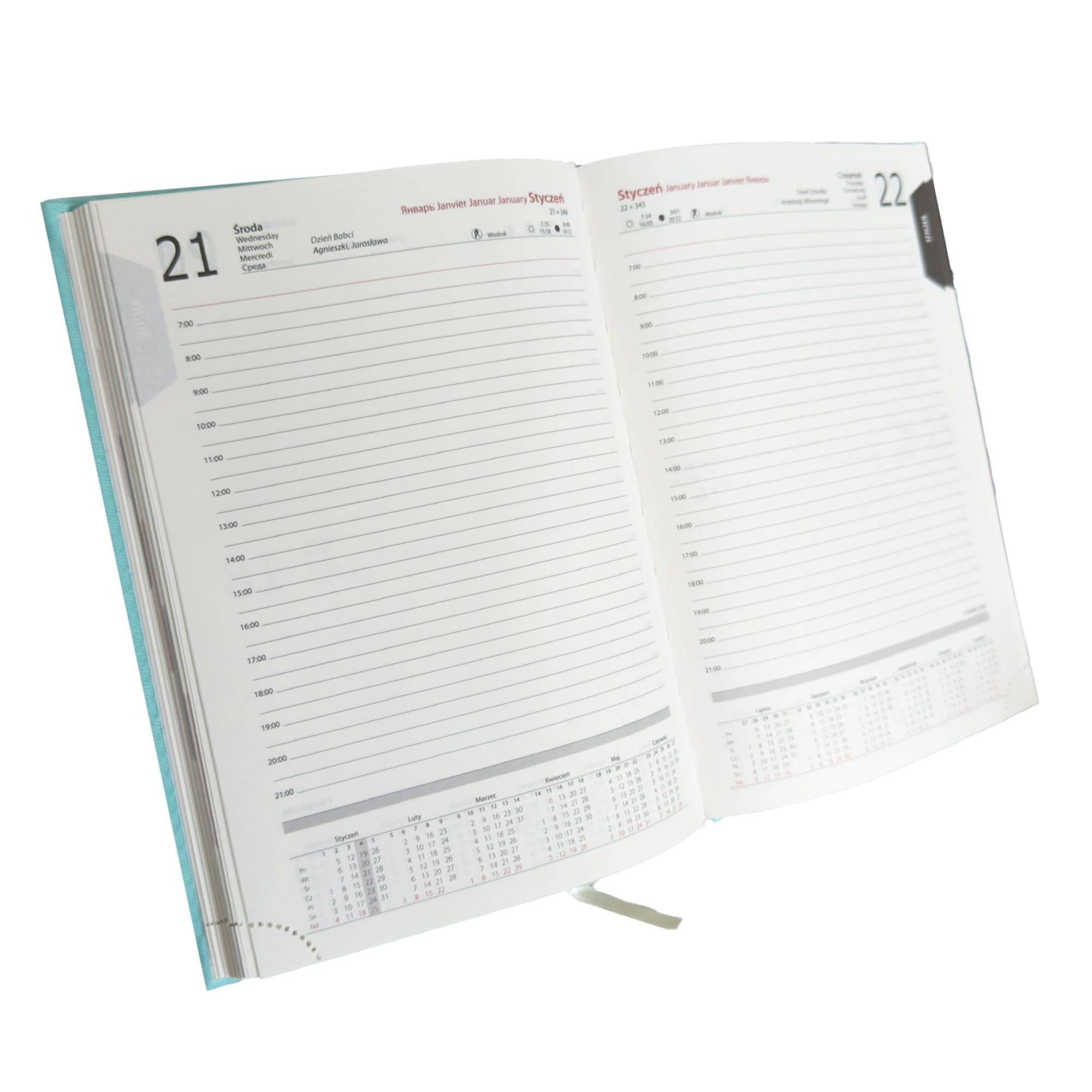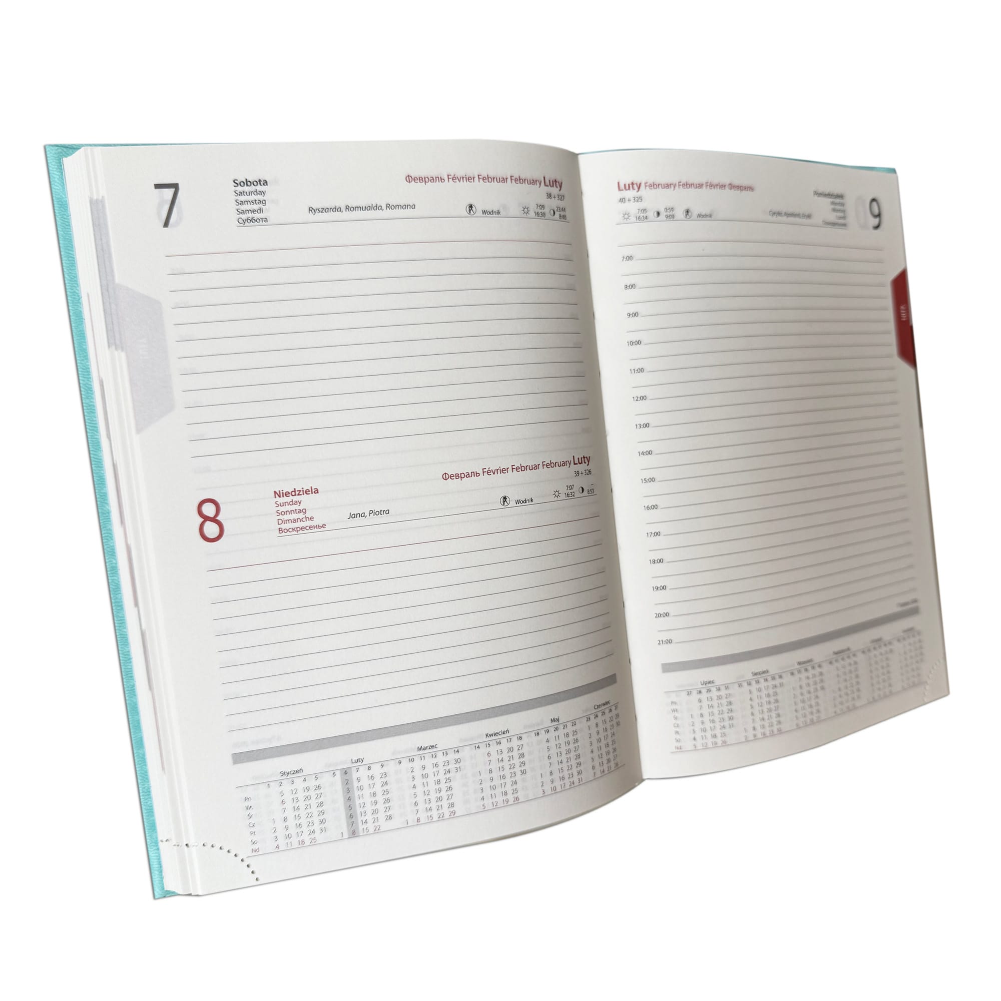 Kalendarz A5 dzienny 2026 to doskonałe narzędzie dla wszystkich, którzy szukają sposobu na efektywne zarządzanie czasem. Z zaprojektowanym układem 1 dzień na 1 stronie, oraz sobota i niedziela na 1 stronie, kalendarz zapewnia dużą przestrzeń na notatki i plany. Przed każdym miesiącem znajduje się terminarz miesięczny, co ułatwia szybkie przeglądanie nadchodzących wydarzeń. Wysokiej jakości papier chamois 70g/m2 gwarantuje komfort pisania, a aż 360 stron daje możliwość zaplanowania każdego dnia w roku.