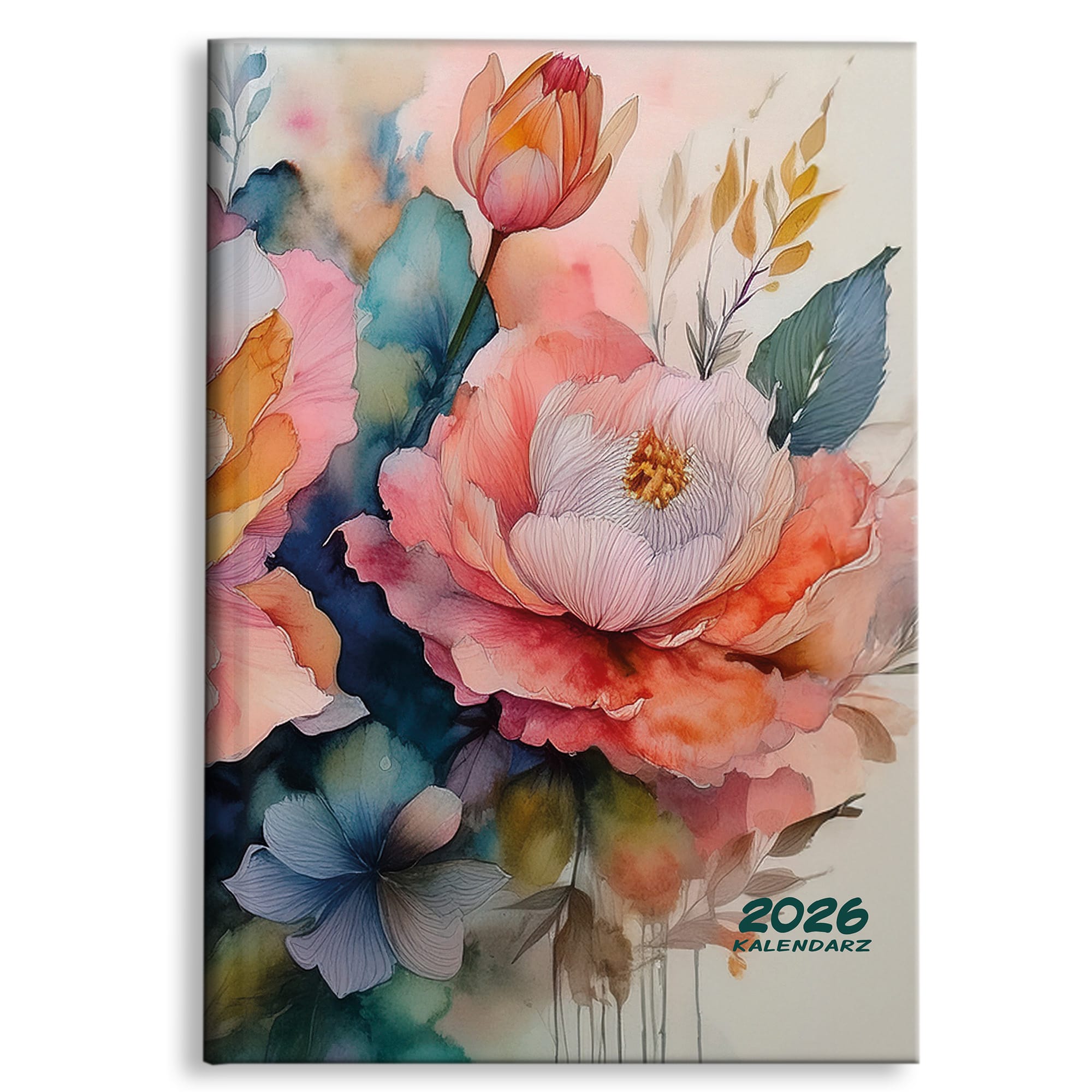 Kalendarz 2026 B5 dzienny sobota niedziela razem Soft Touch AKWARELOWE KWIATY