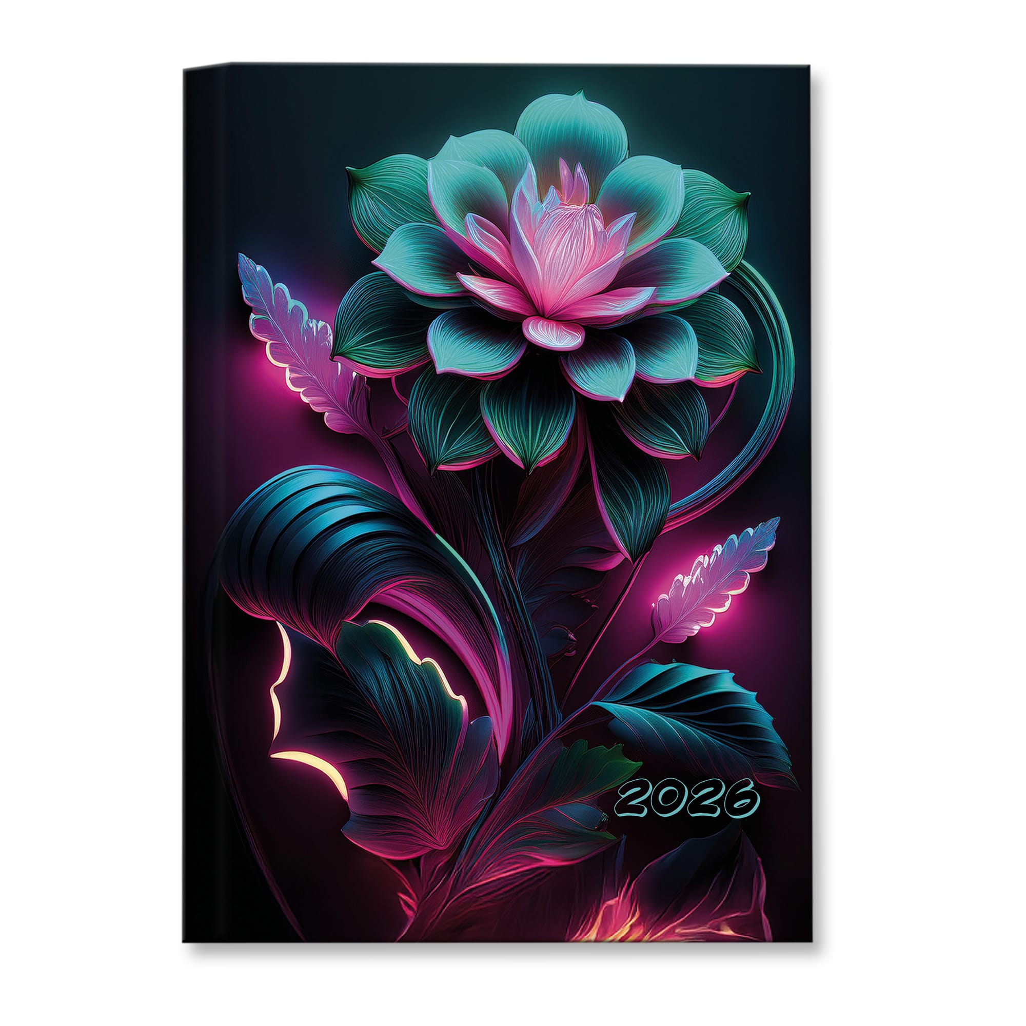 Kalendarz 2026 B6 dzienny sobota niedziela razem Soft Touch NEONOWE KWIATY