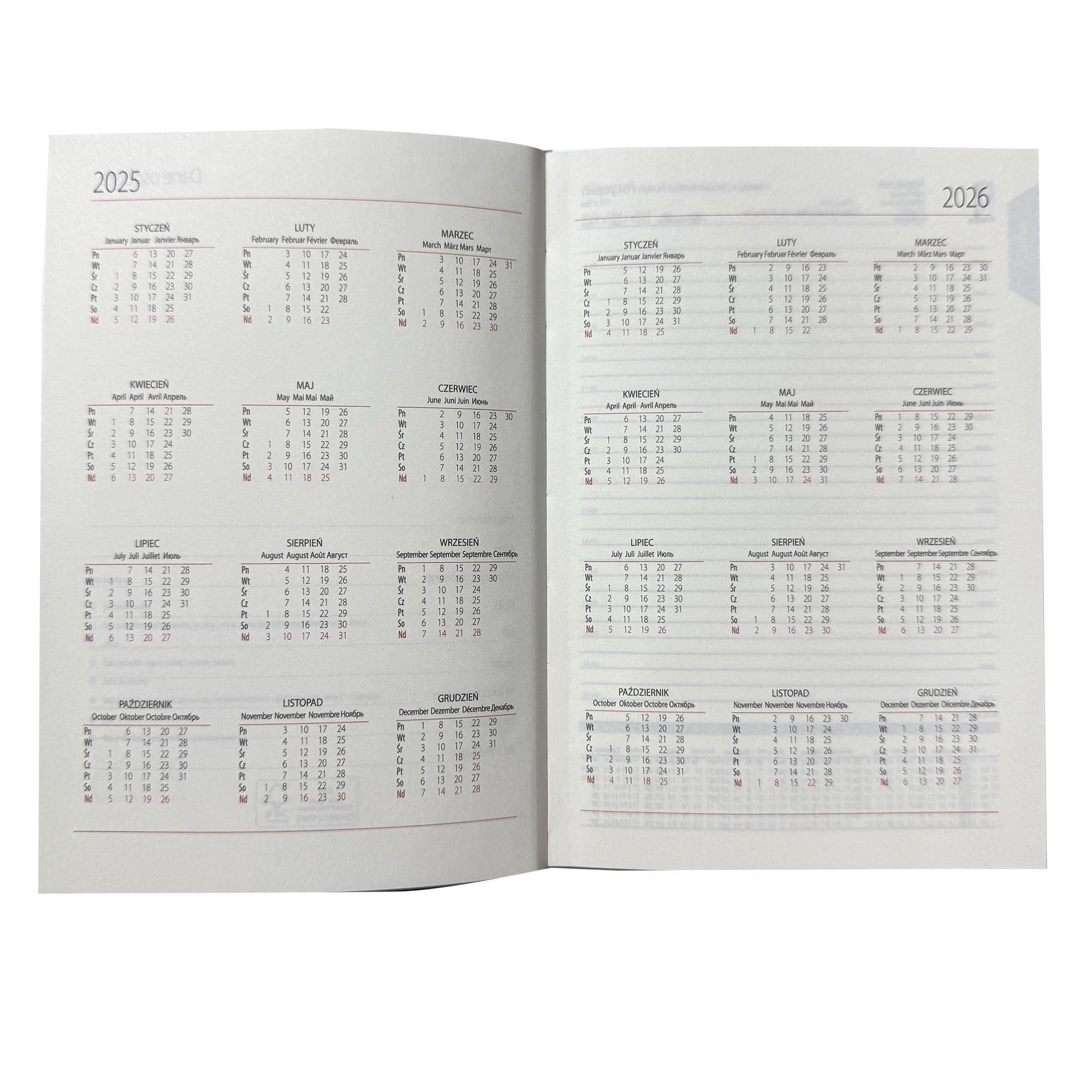 Kalendarz B6 dzienny sobota niedziela razem to idealne rozwiązanie dla osób, które cenią sobie organizację czasu w eleganckim wydaniu. Dzięki formatowi bloku 110 x 160 mm kalendarz jest poręczny, a jednocześnie zapewnia wystarczająco dużo miejsca na notatki i planowanie. Ten dzienny kalendarz oferuje wygodne rozłożenie – 1 dzień na 1 stronie, a sobota i niedziela na 1 stronie, co ułatwia zarządzanie codziennymi obowiązkami oraz planowanie weekendowych aktywności.