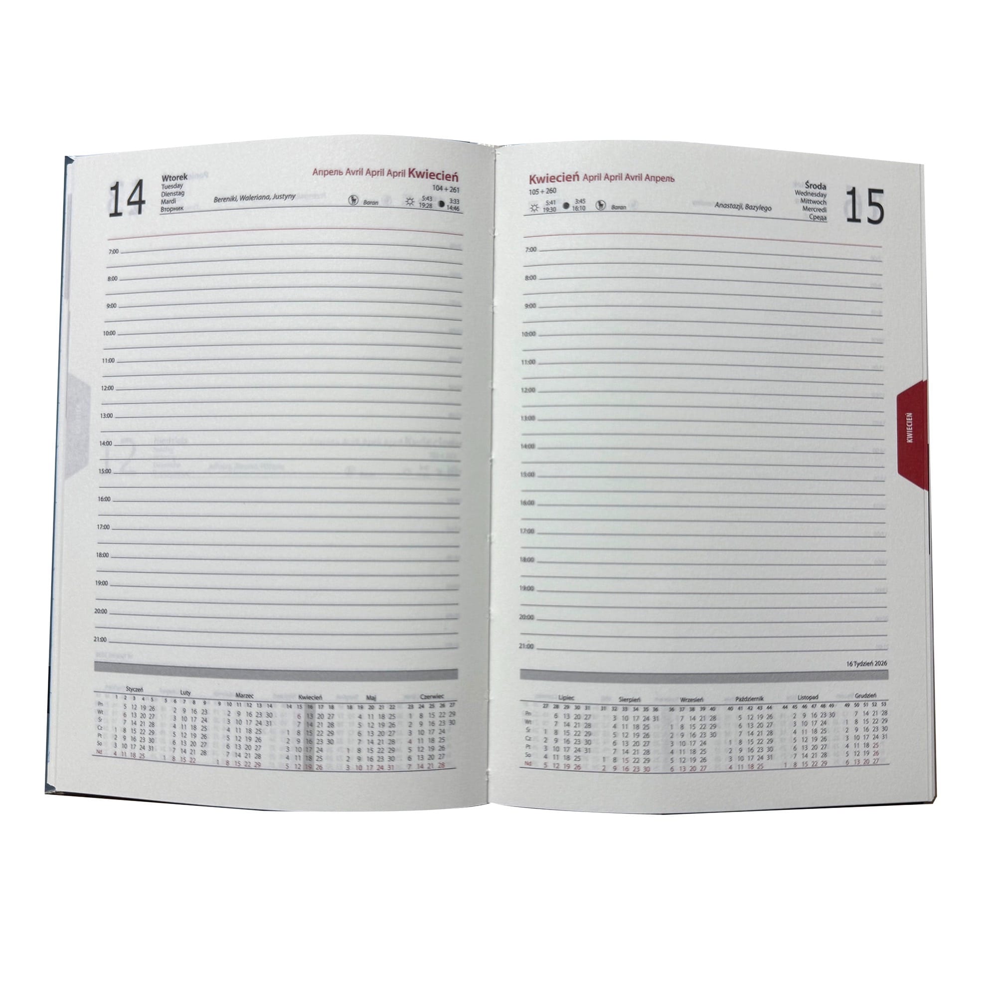 Kalendarz B6 dzienny sobota niedziela razem to idealne rozwiązanie dla osób, które cenią sobie organizację czasu w eleganckim wydaniu. Dzięki formatowi bloku 110 x 160 mm kalendarz jest poręczny, a jednocześnie zapewnia wystarczająco dużo miejsca na notatki i planowanie. Ten dzienny kalendarz oferuje wygodne rozłożenie – 1 dzień na 1 stronie, a sobota i niedziela na 1 stronie, co ułatwia zarządzanie codziennymi obowiązkami oraz planowanie weekendowych aktywności.