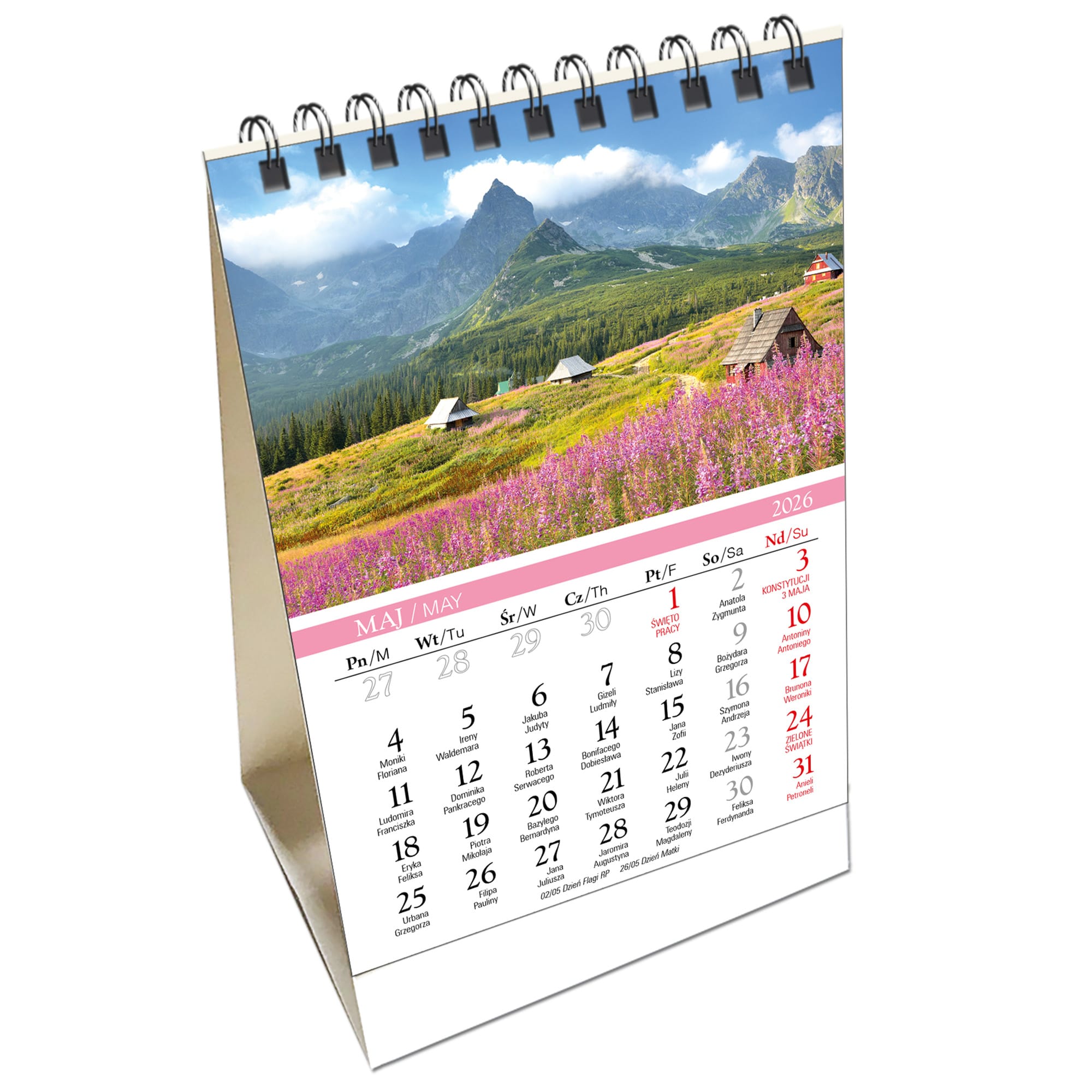 Kalendarz 2026 biurkowy pionowy mały 13 planszowy TATRY
