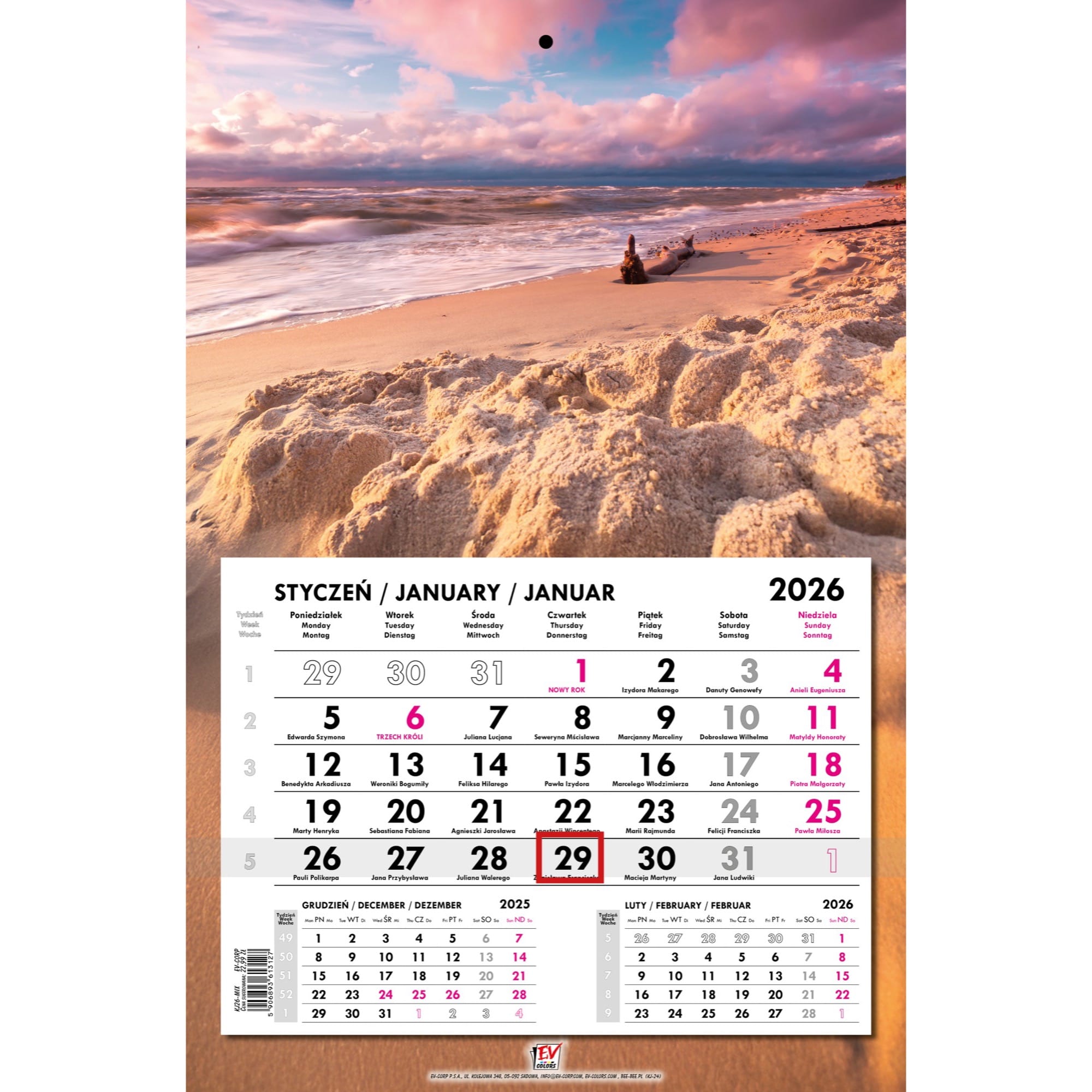 Kalendarz 2026 jednodzielny główka płaska POLSKIE KRAJOBRAZY KJ26-20