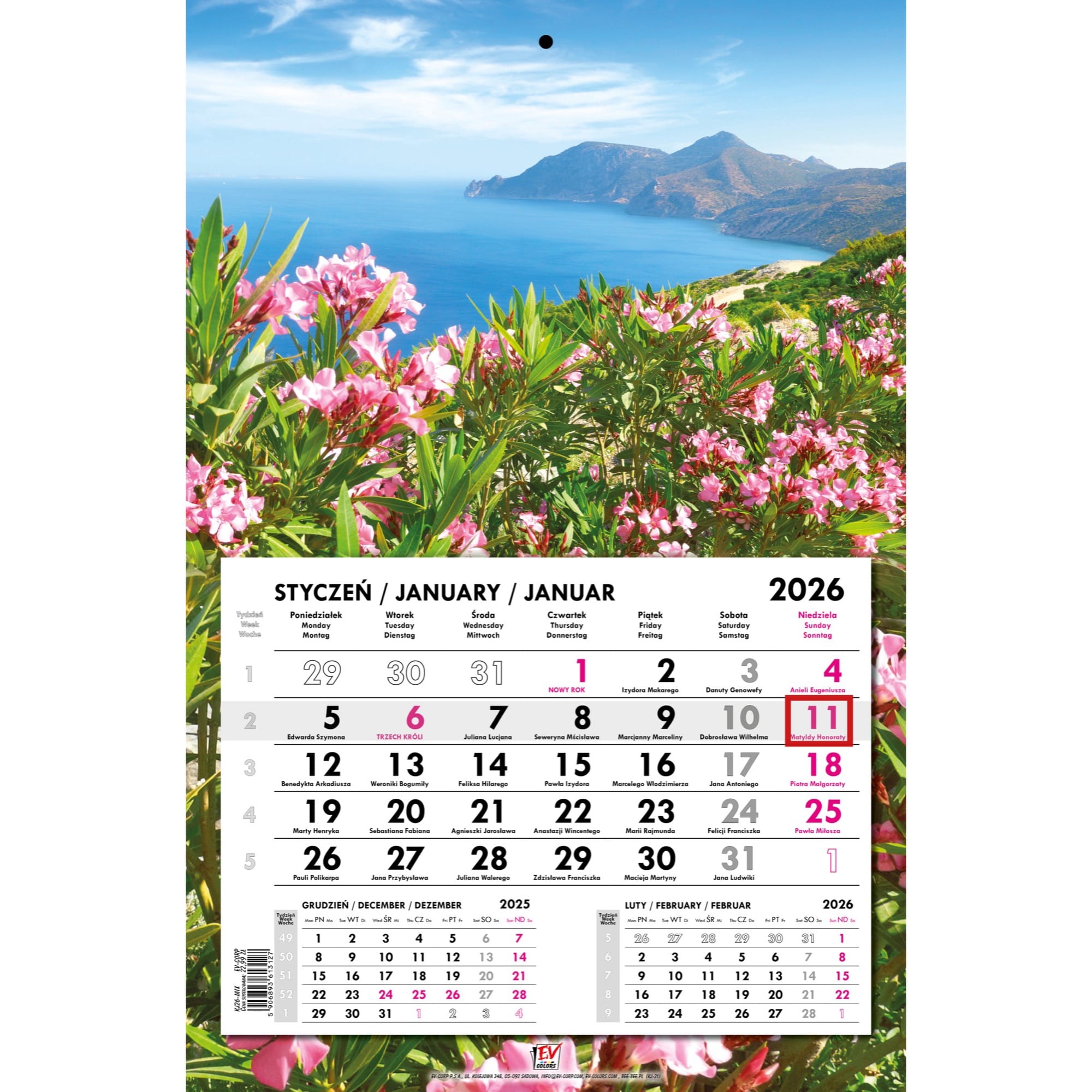 Kalendarz 2026 trójdzielny główka płaska CHORWACJA KSE26-39