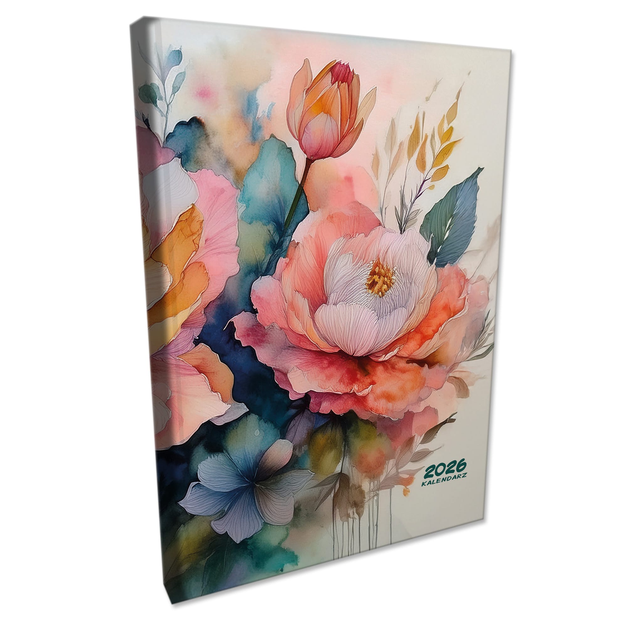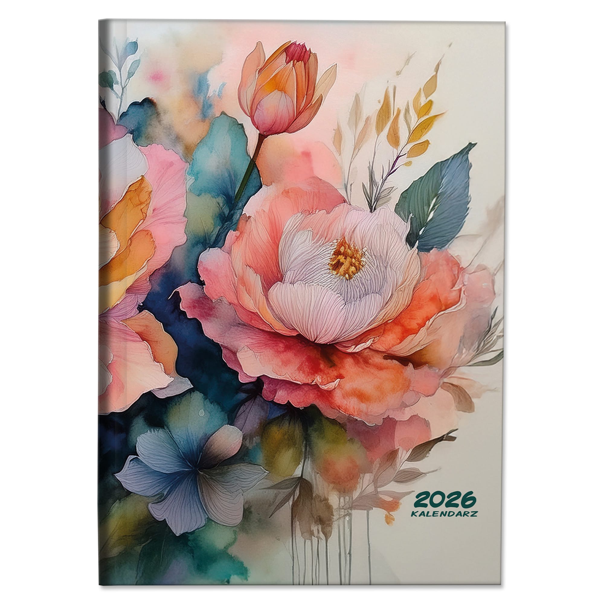 Kalendarz 2026 książkowy dzienny A4 sobota niedziela osobno soft touch AKWARELOWE KWIATY