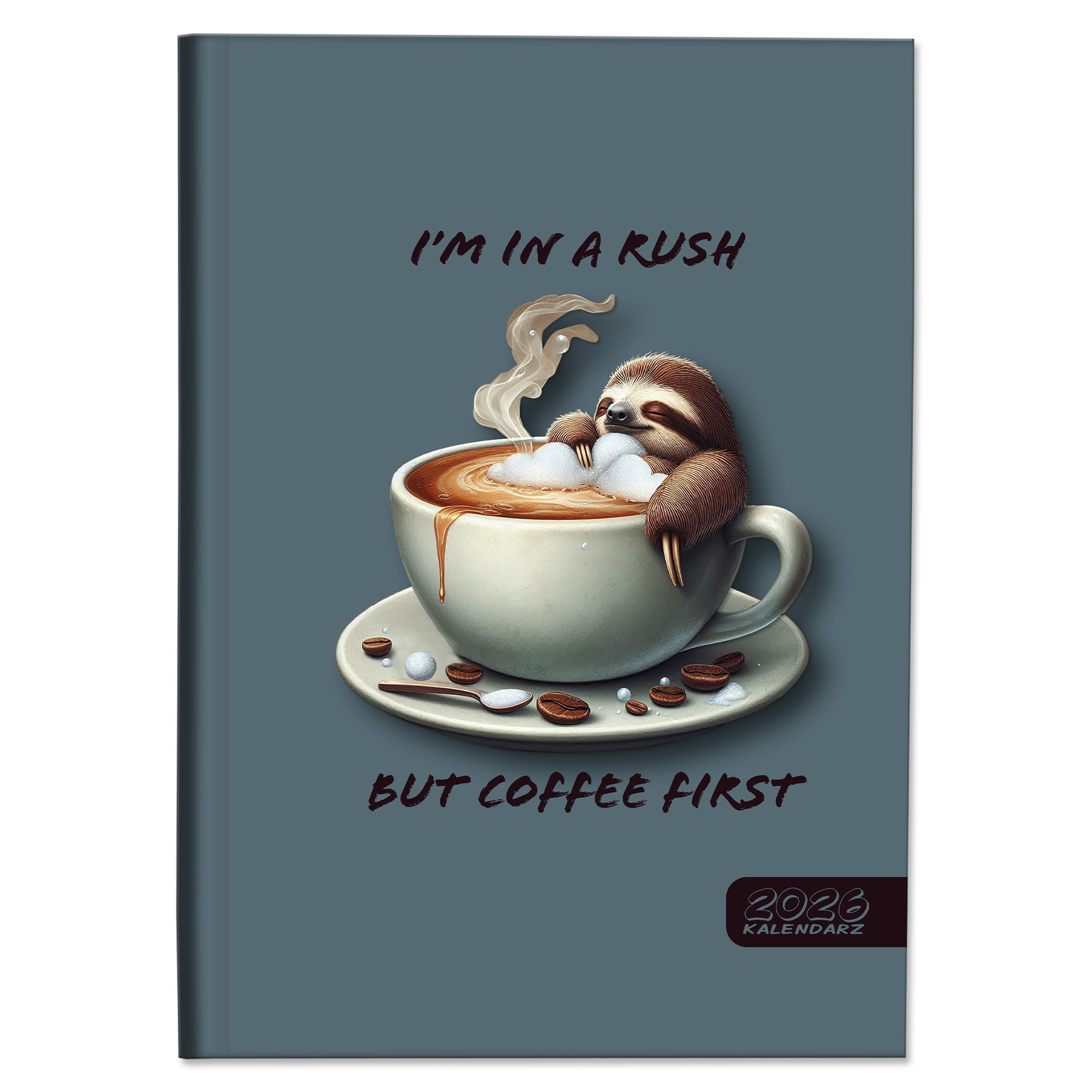 Kalendarz 2026 książkowy dzienny A4 sobota niedziela osobno soft touch LENIWIEC KAWA