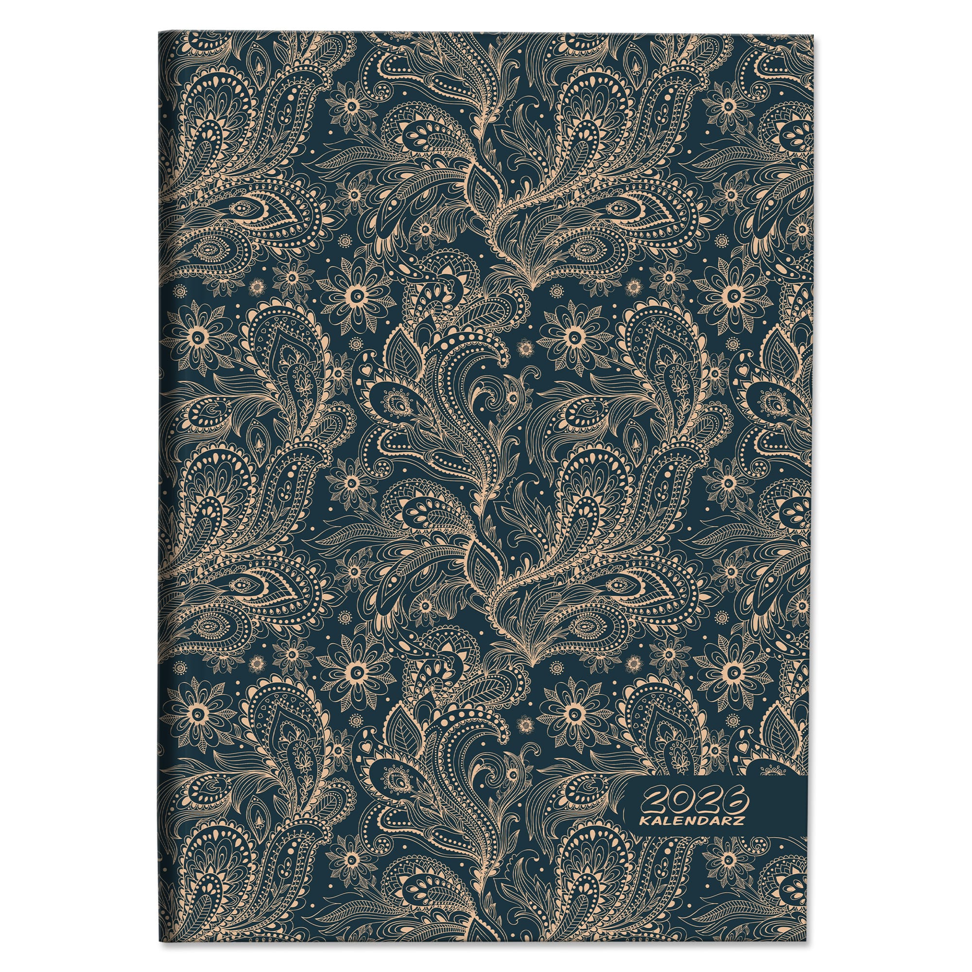 Kalendarz 2026 książkowy dzienny A4 sobota niedziela osobno soft touch papier chamois BEŻ DENIM