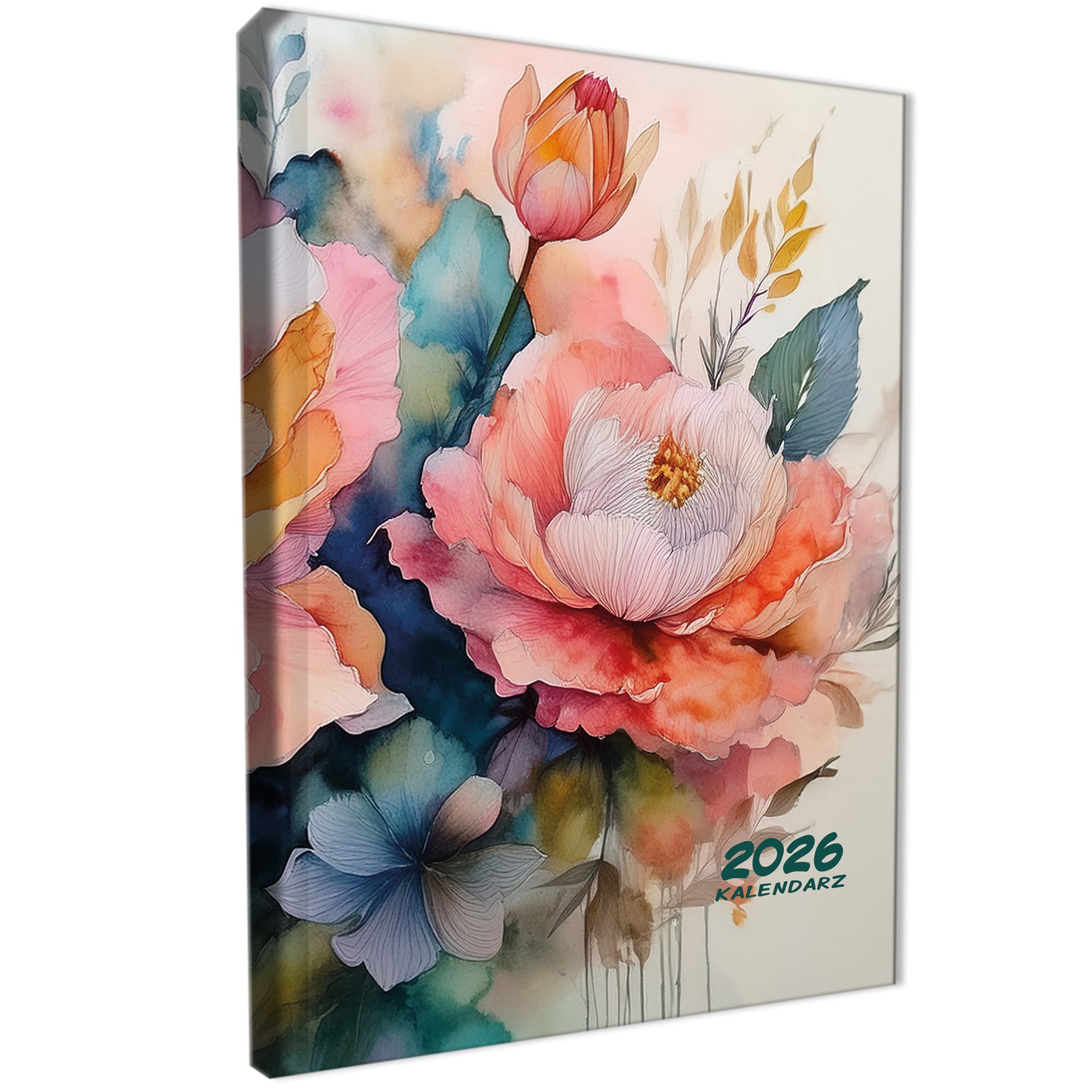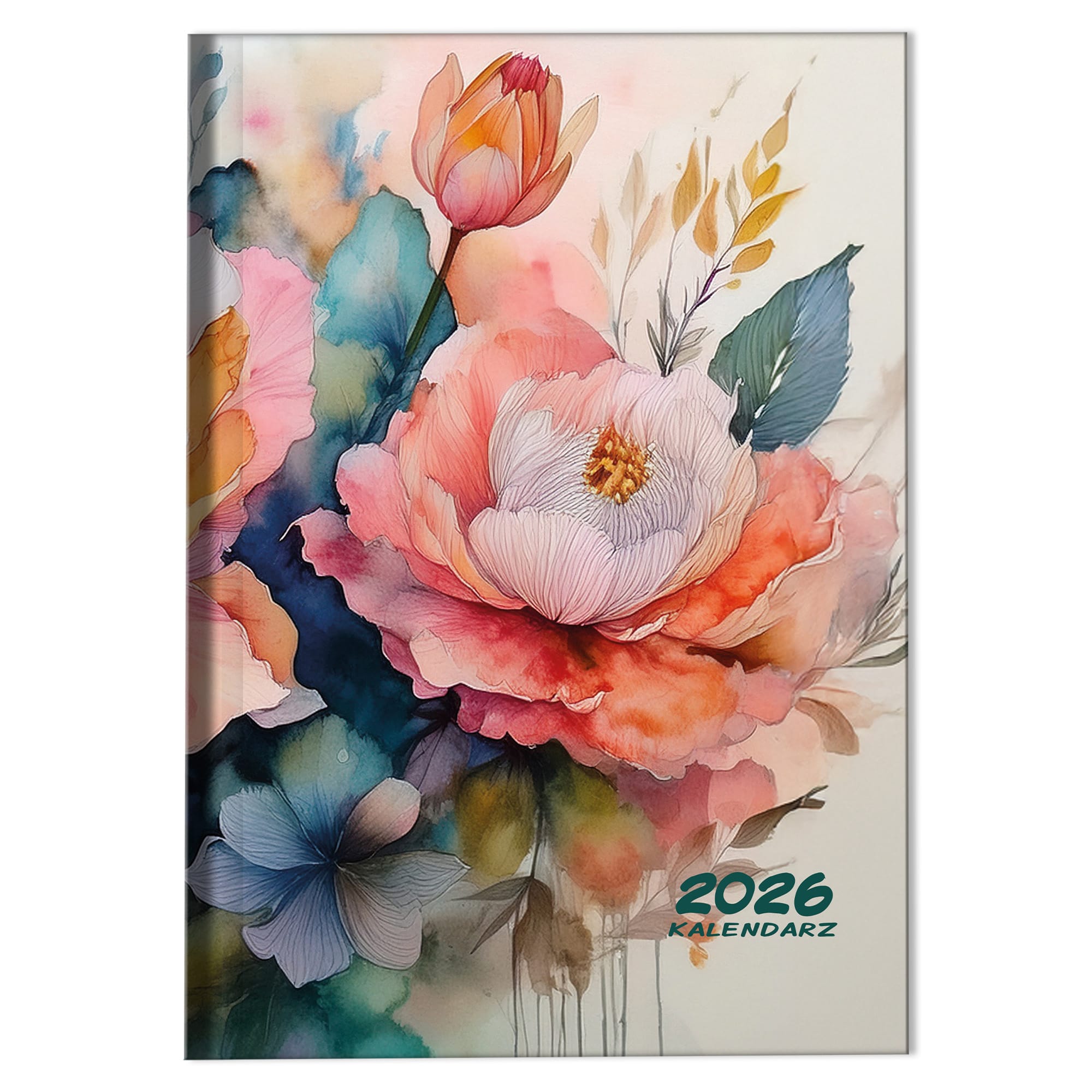 Kalendarz 2026 książkowy dzienny A5 sobota niedziela osobno soft touch AKWARELOWE KWIATY
