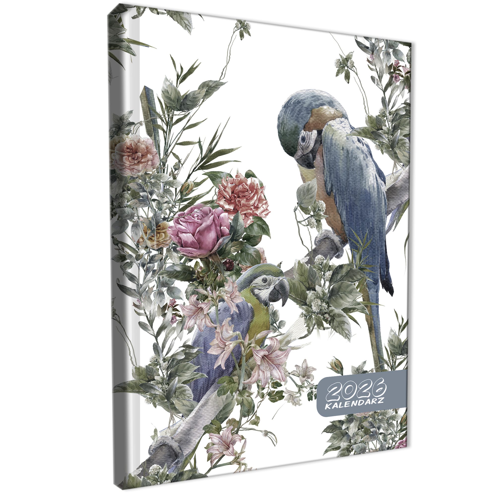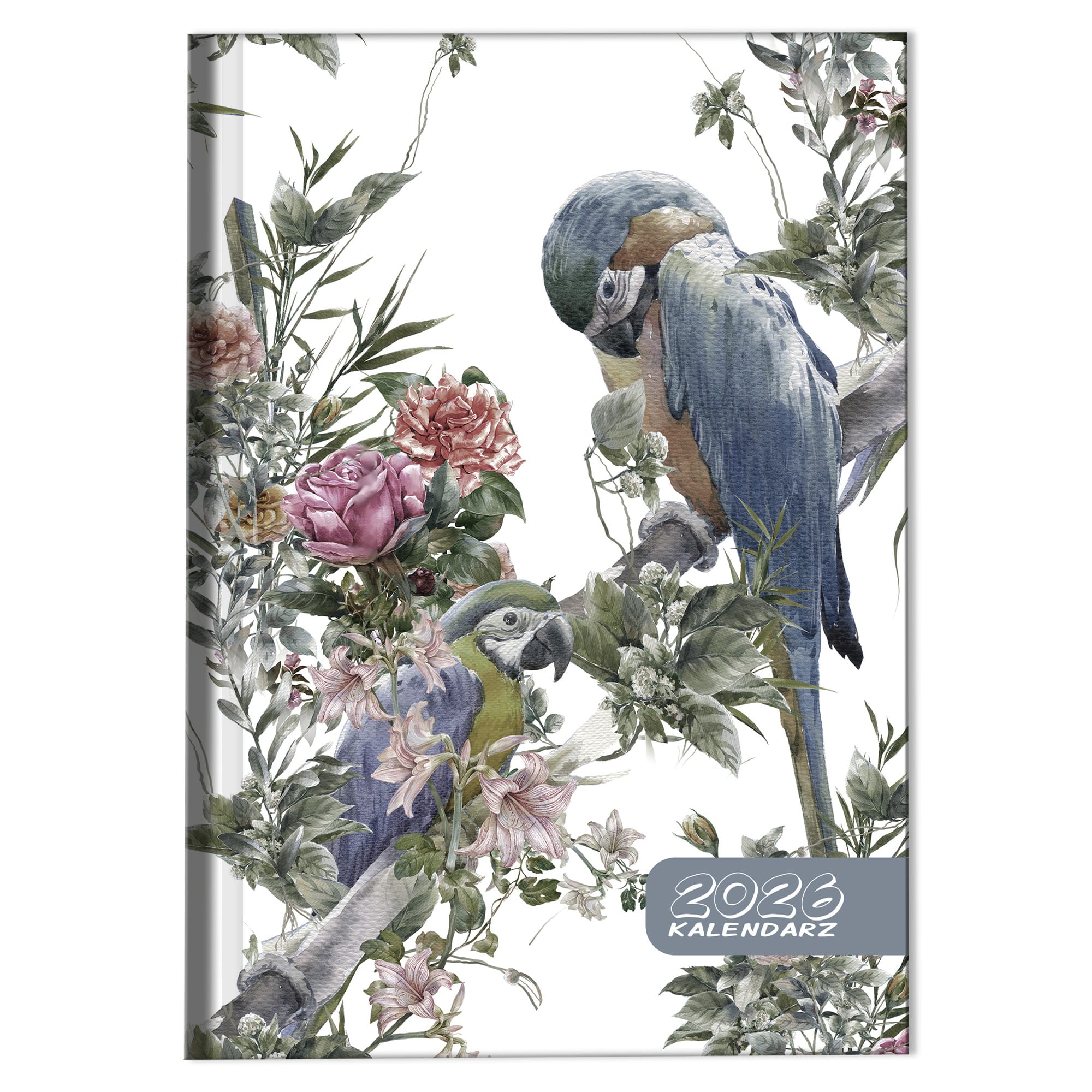 Kalendarz 2026 książkowy dzienny A5 sobota niedziela osobno soft touch PAPUGI BOHO