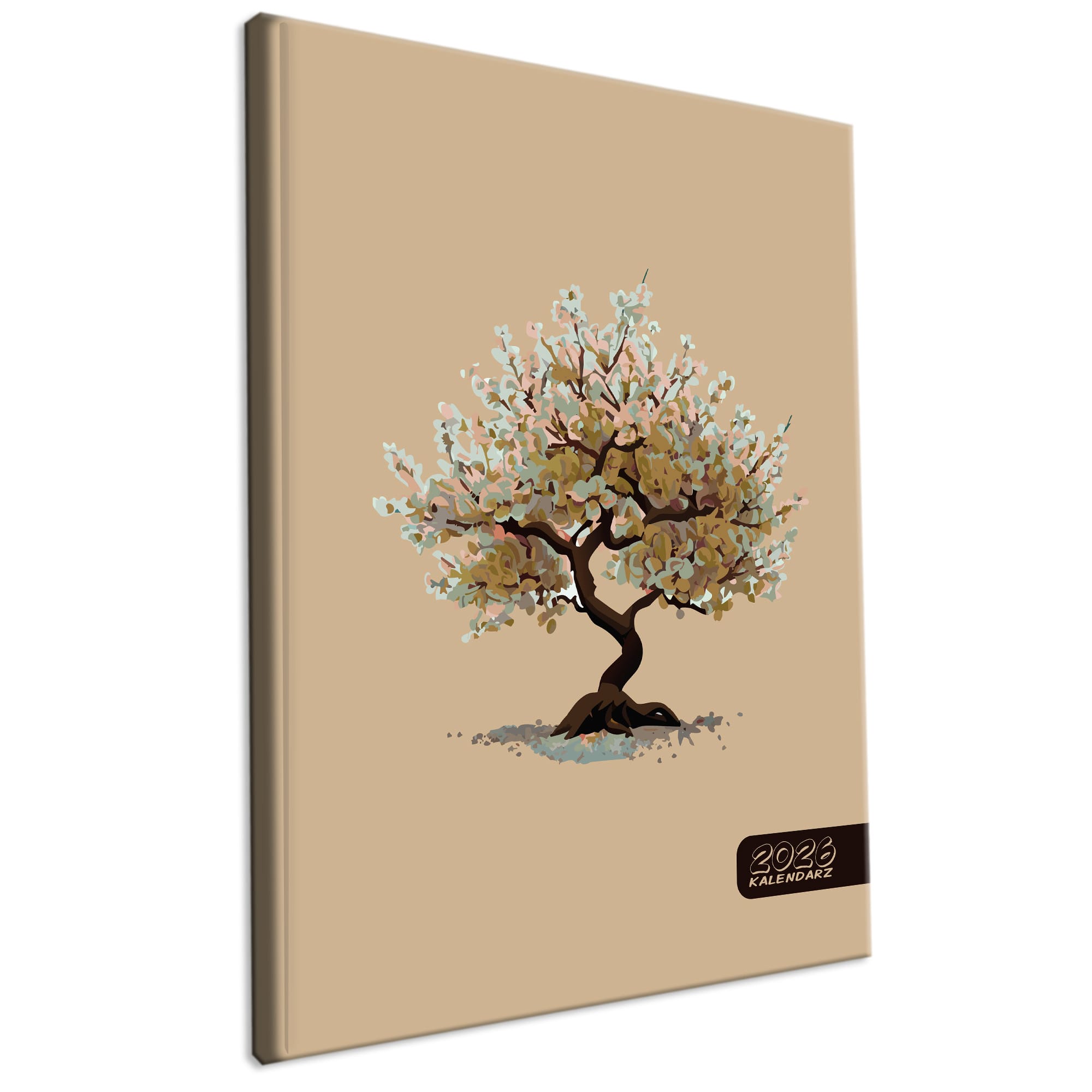 Kalendarz 2026 książkowy tygodniowy A4 ROZKŁADÓWKA soft touch DRZEWO BEŻ