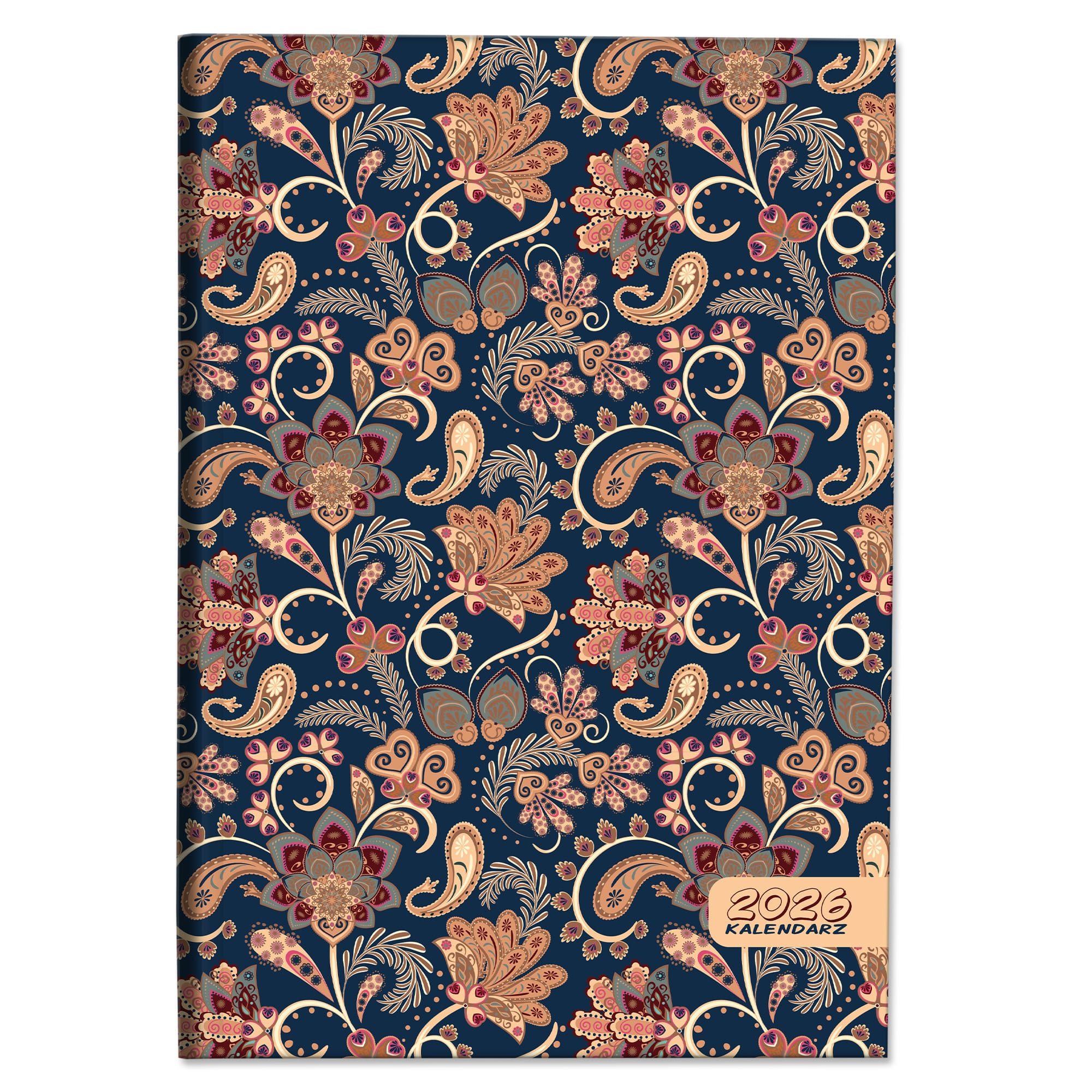 Kalendarz 2026 książkowy tygodniowy A4 ROZKŁADÓWKA soft touch KWIATY BLUE