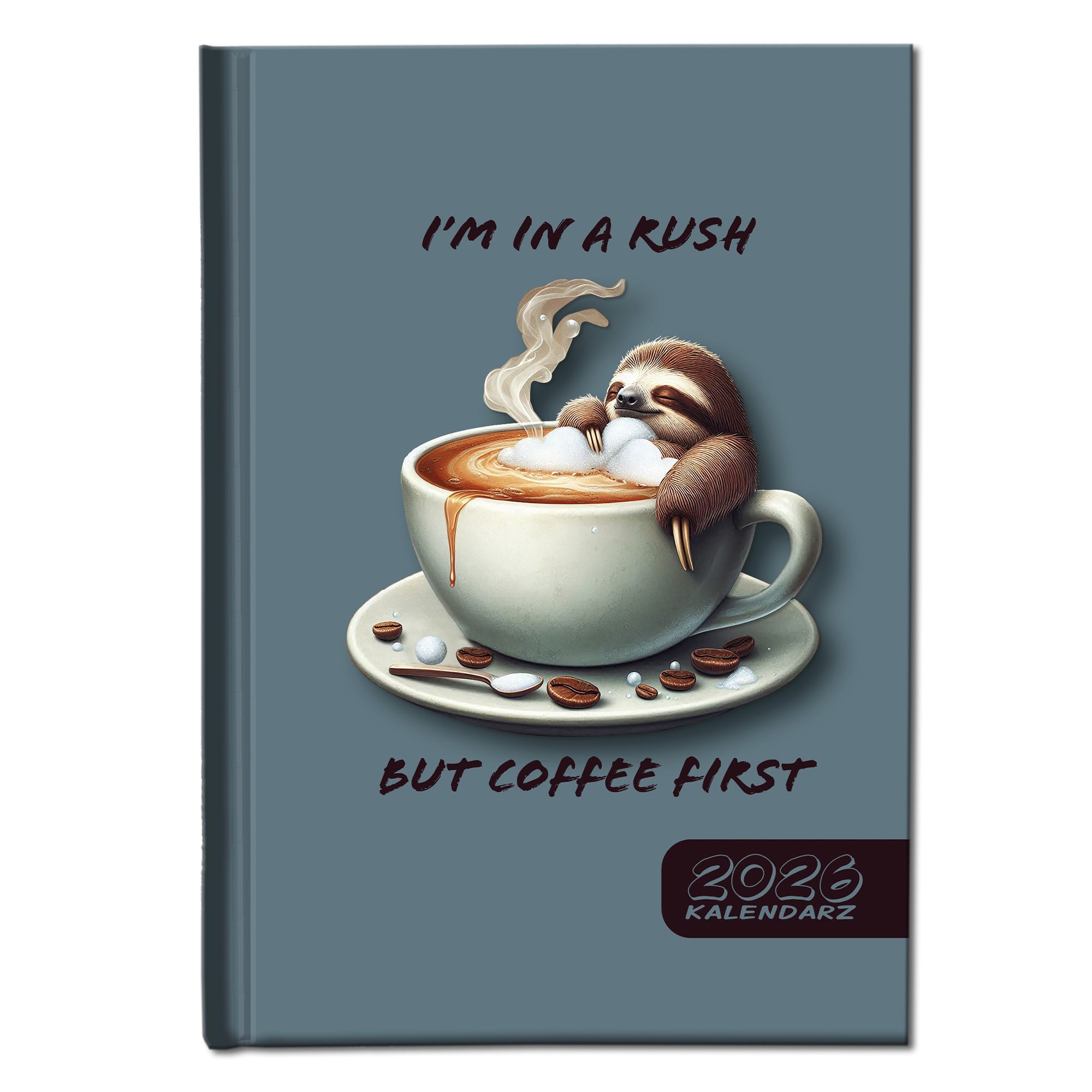 Kalendarz 2026 książkowy tygodniowy A5 notatka soft touch LENIWIEC KAWA