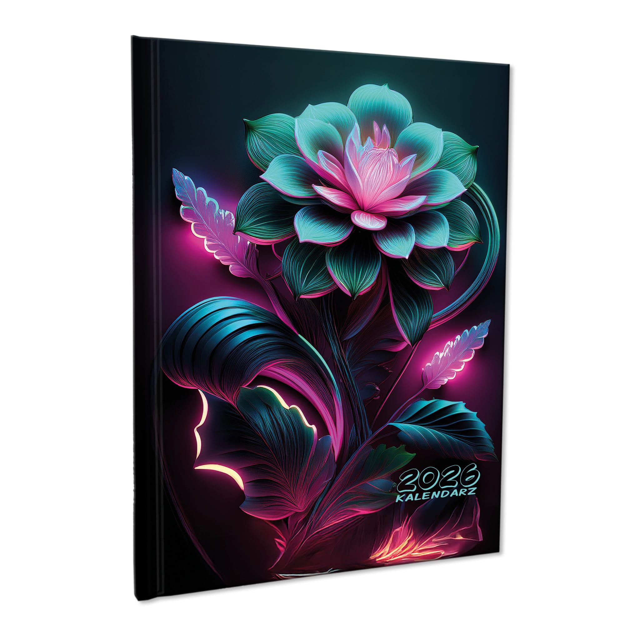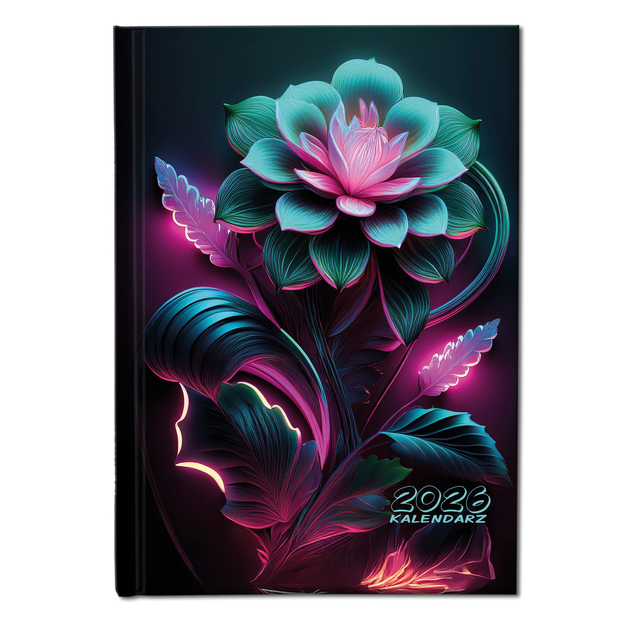 Kalendarz 2026 książkowy tygodniowy A5 notatka soft touch NEONOWE KWIATY