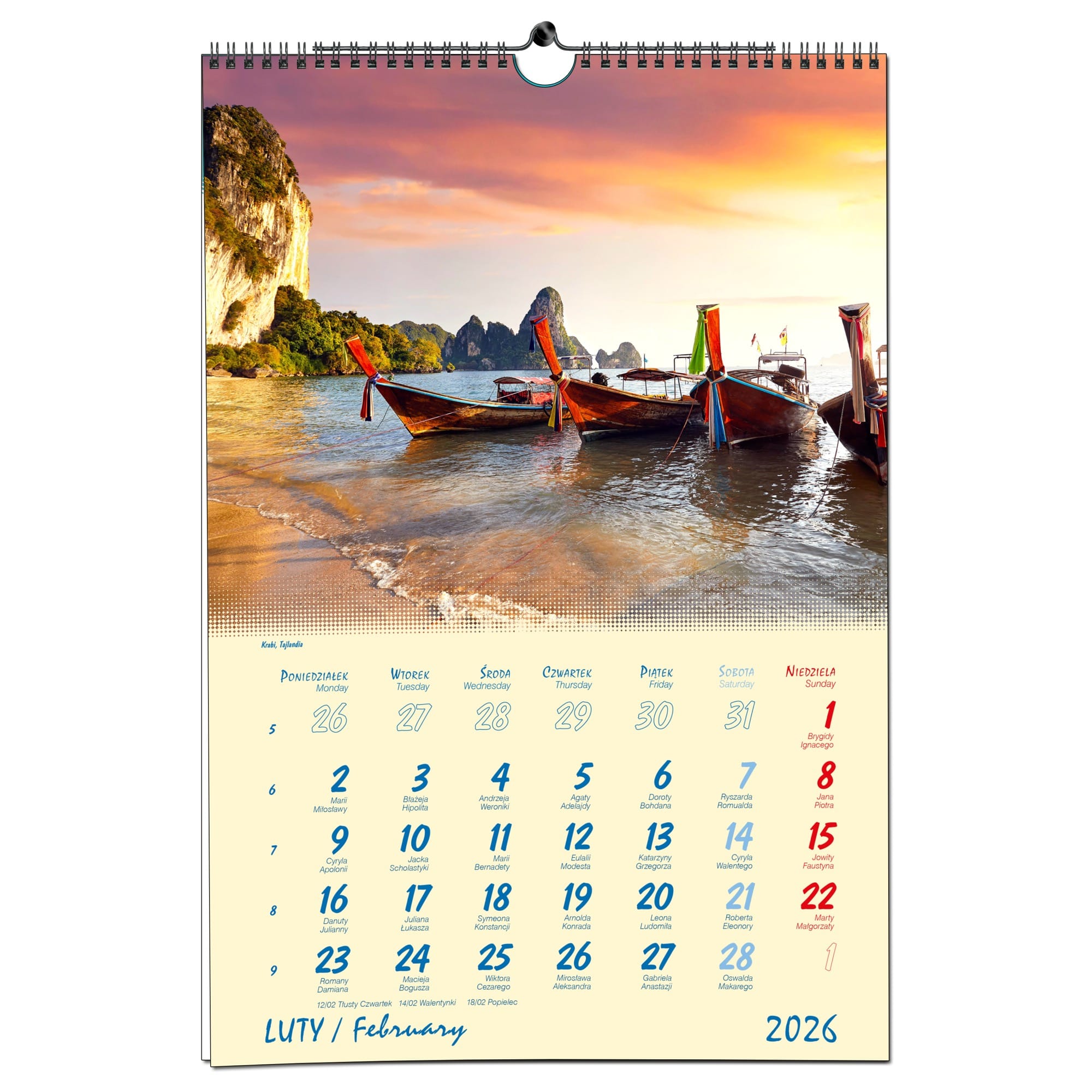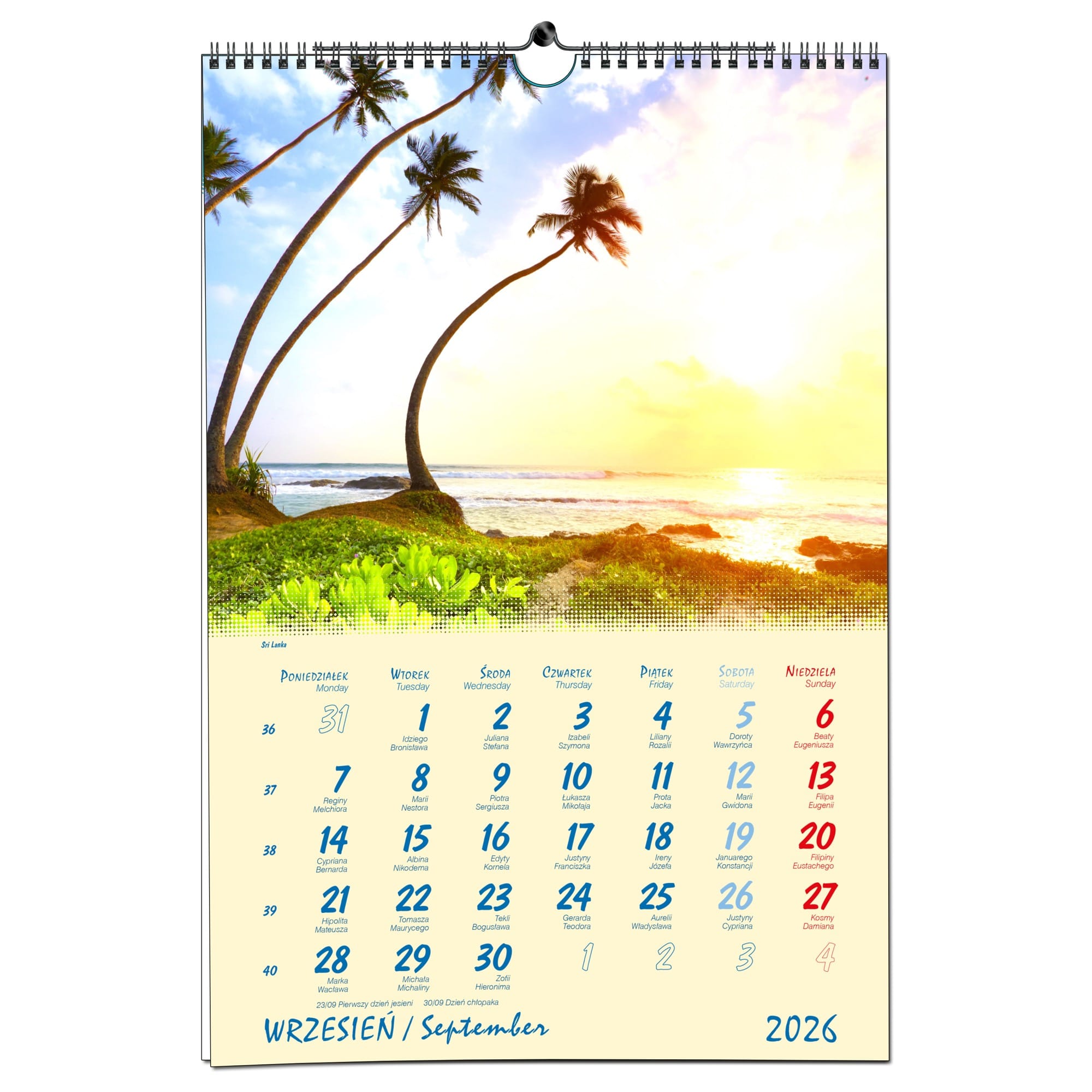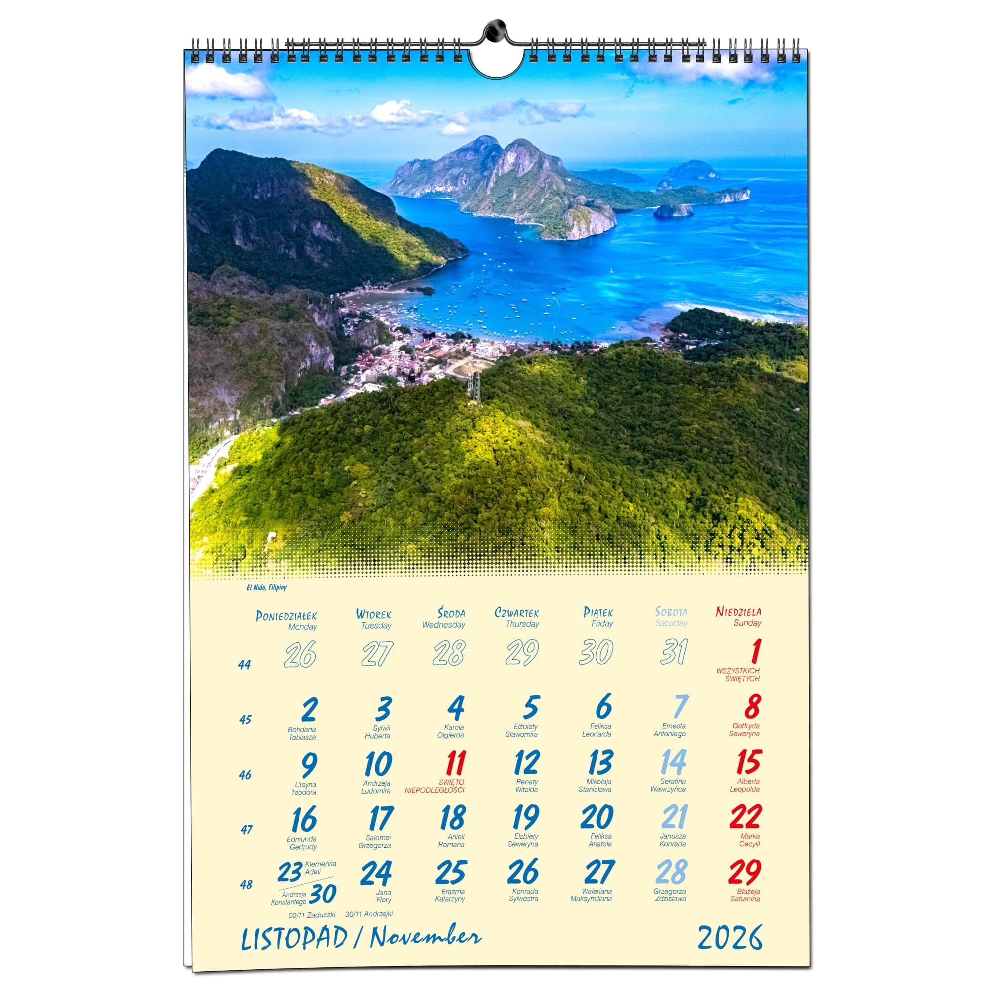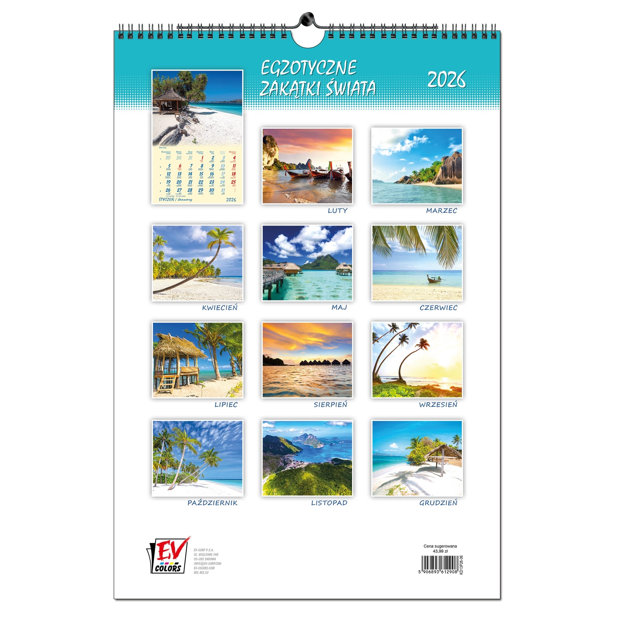 Kalendarz 2026 ścienny B3 33 x 48 cm 13 planszowy EGZOTYCZNE ZAKĄTKI ŚWIATA
