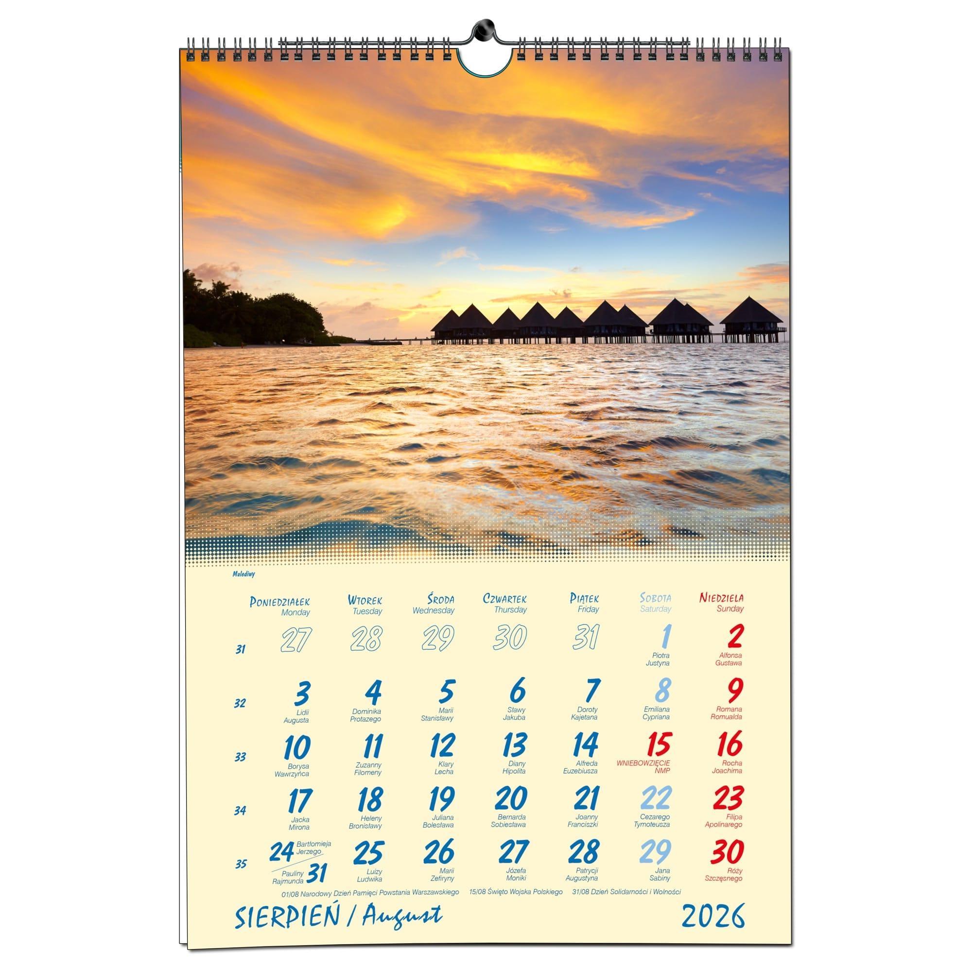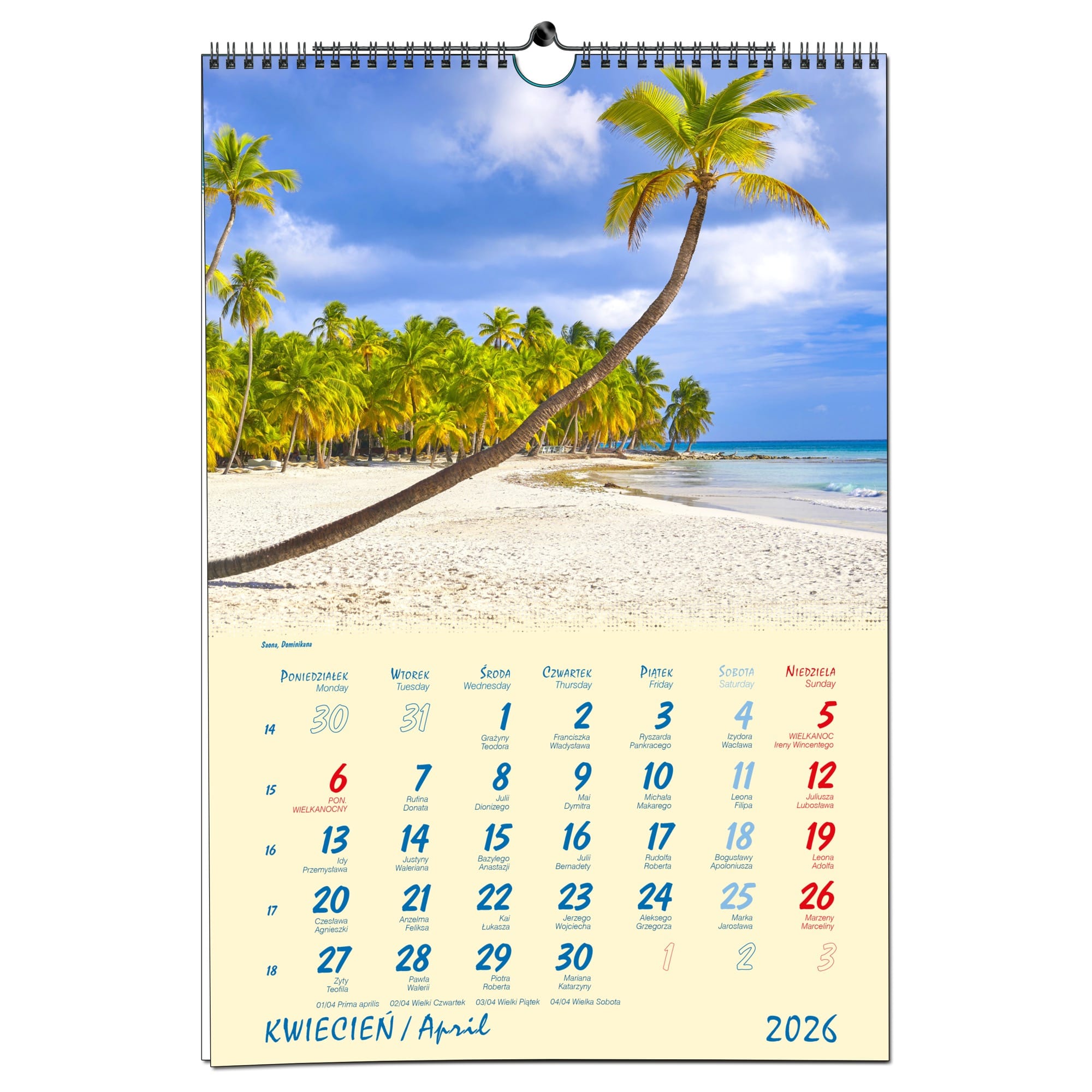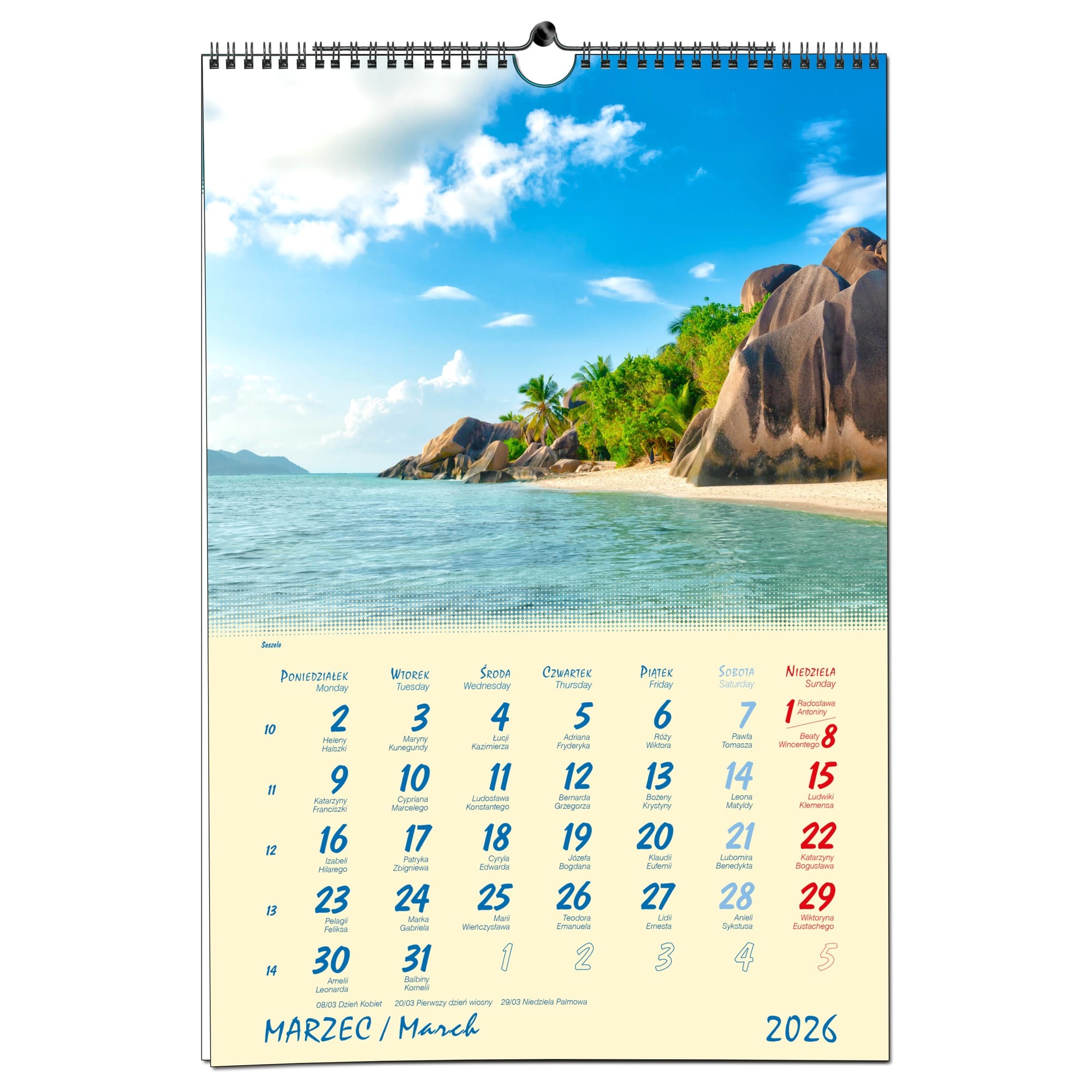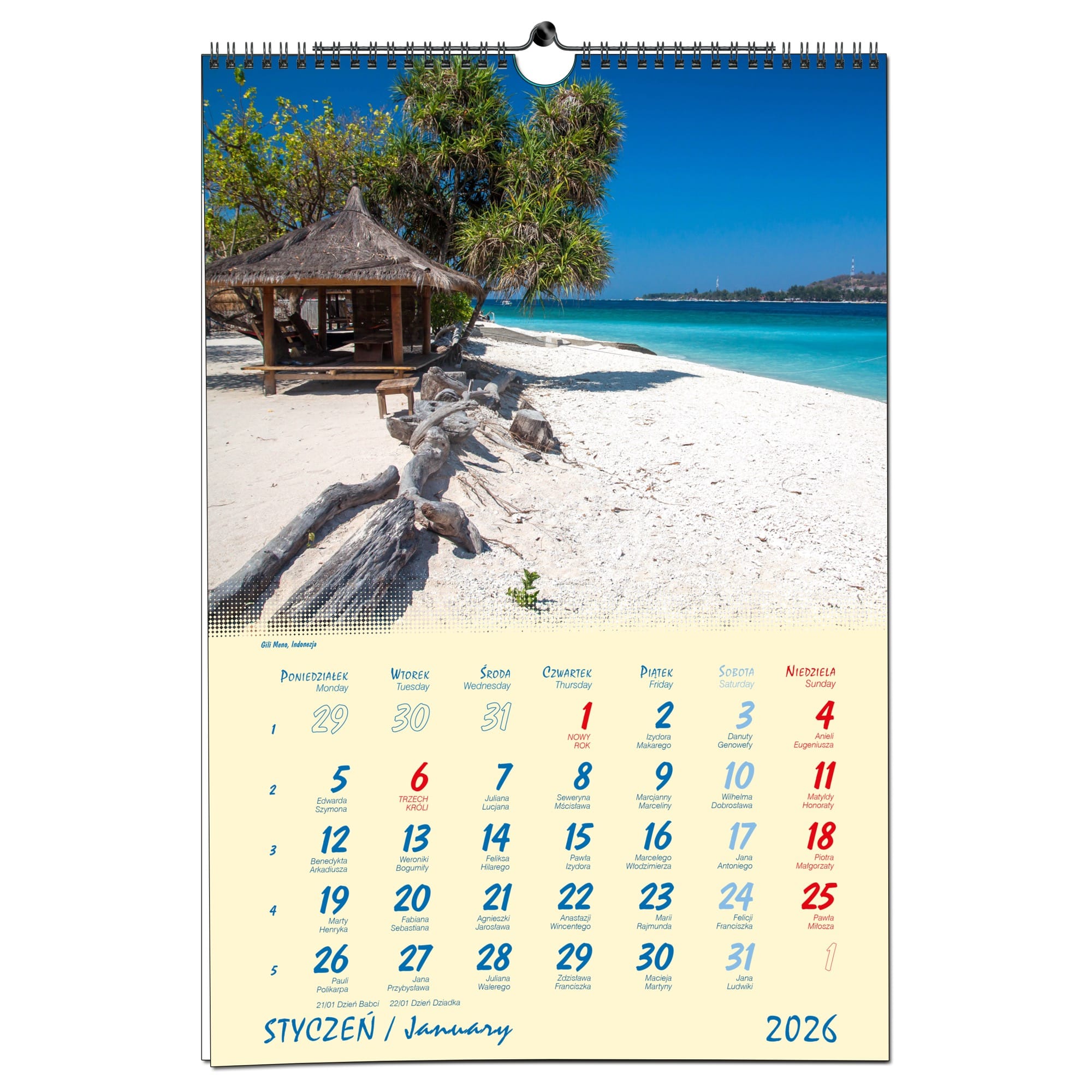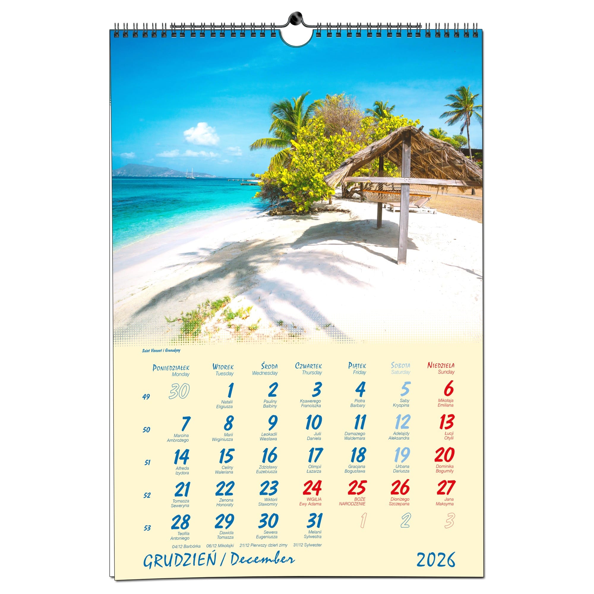 Kalendarz 2026 ścienny B3 33 x 48 cm 13 planszowy EGZOTYCZNE ZAKĄTKI ŚWIATA