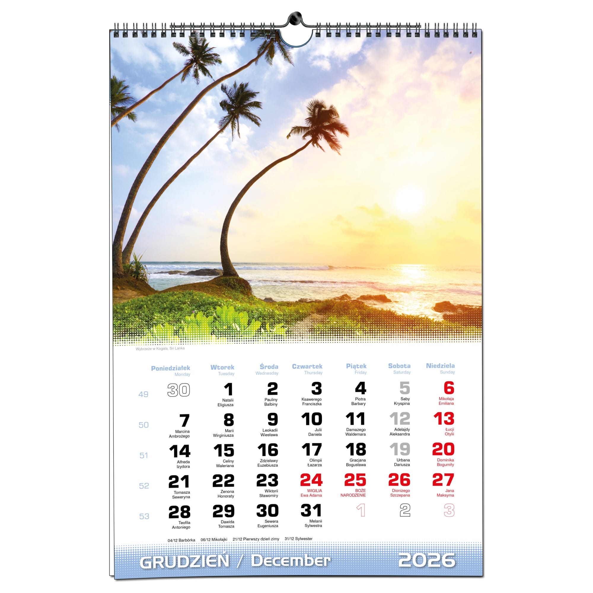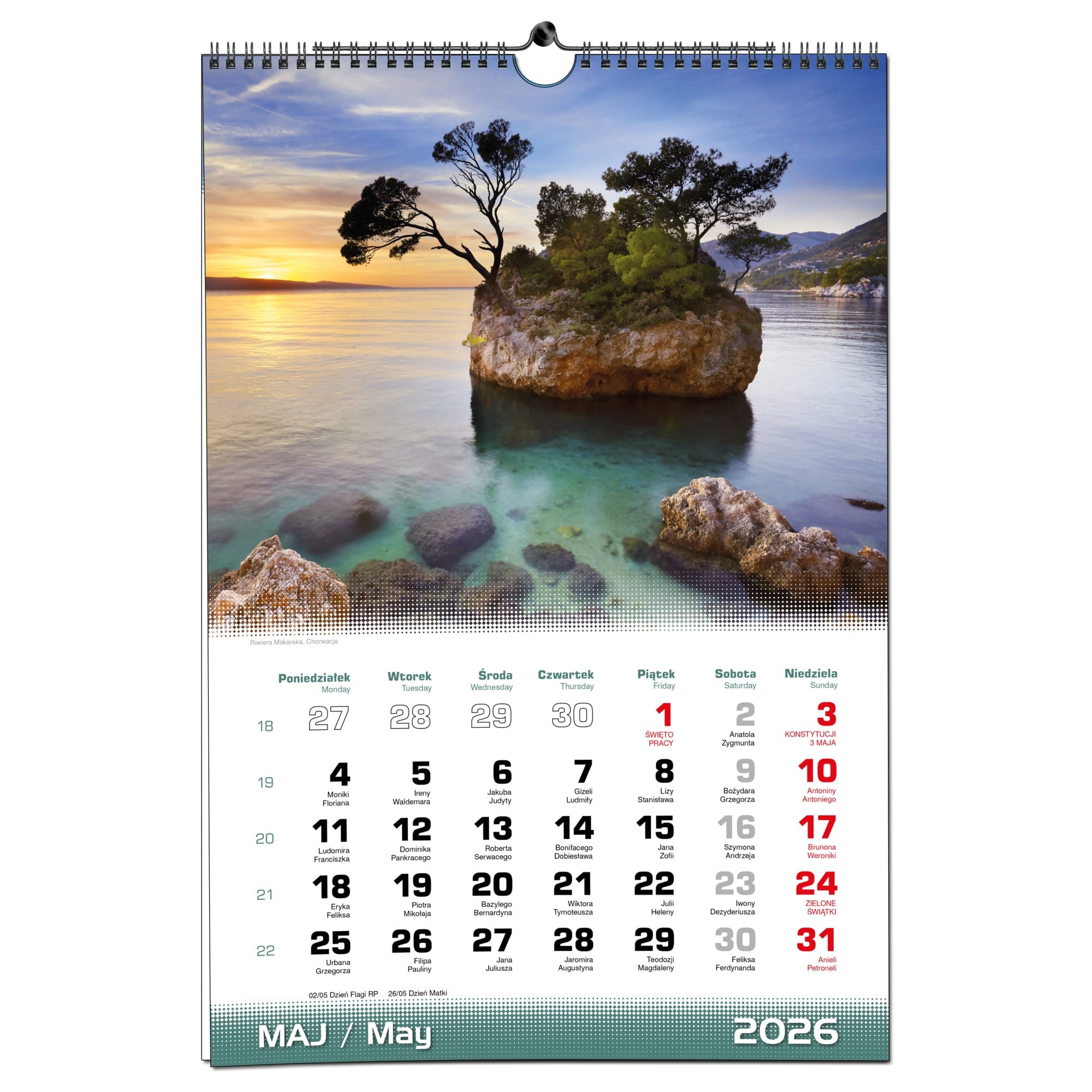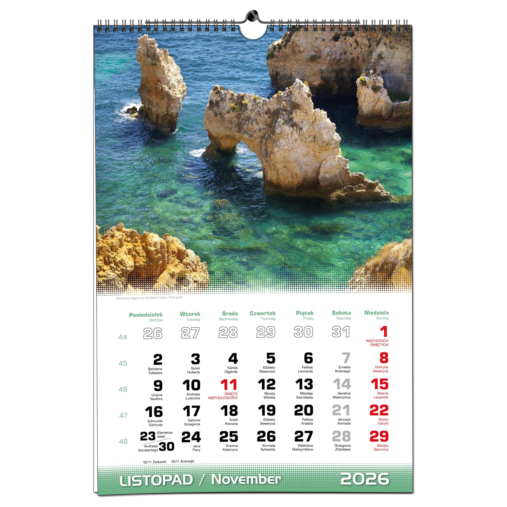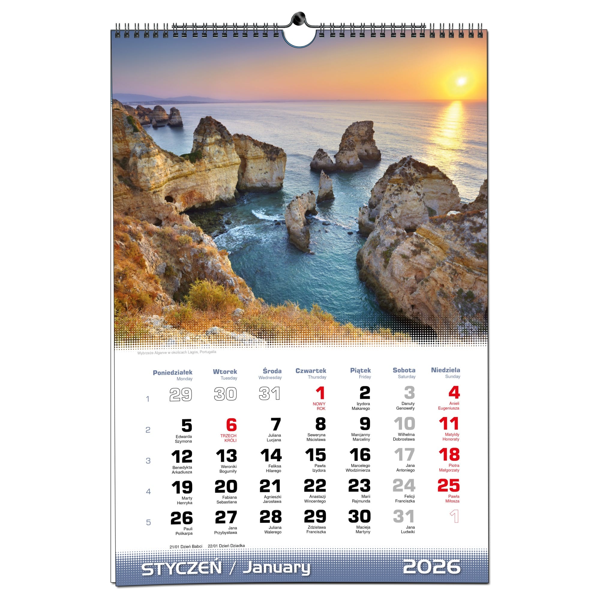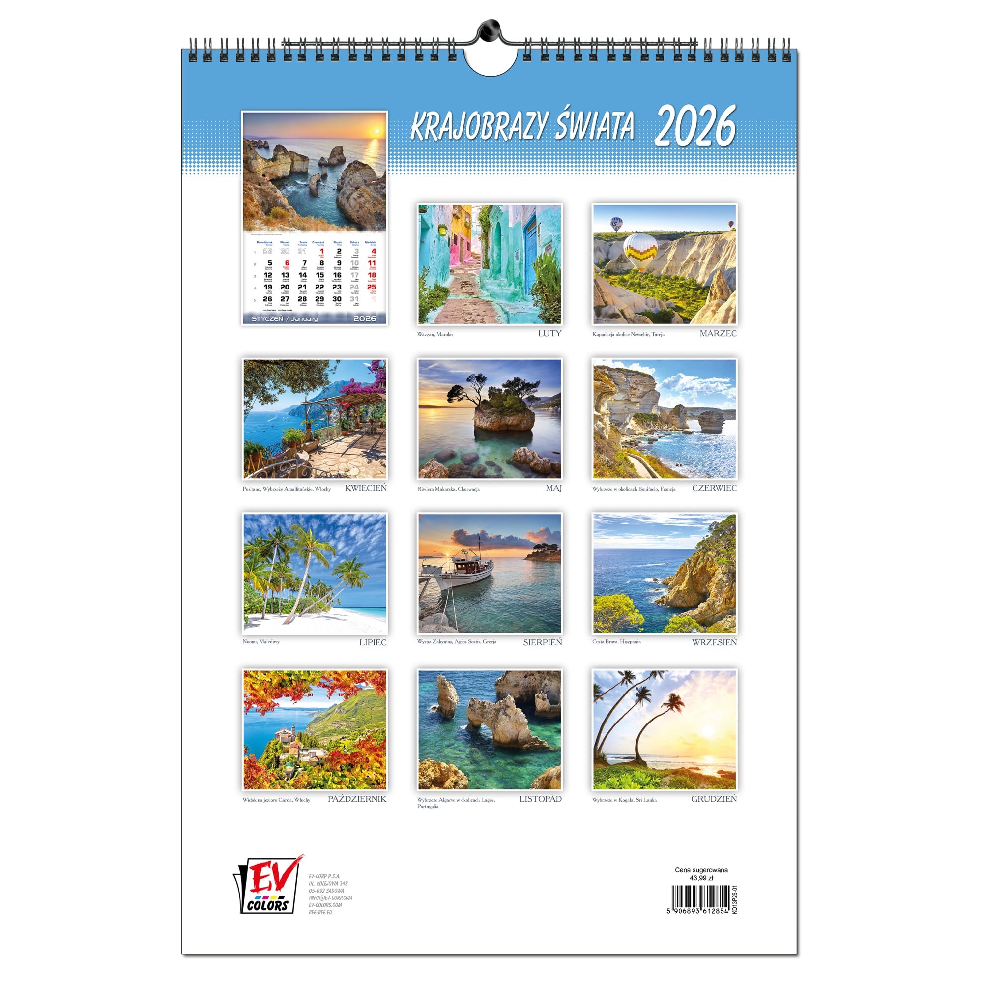 Kalendarz 2026 ścienny B3 33 x 48 cm 13 planszowy KRAJOBRAZY ŚWIATA