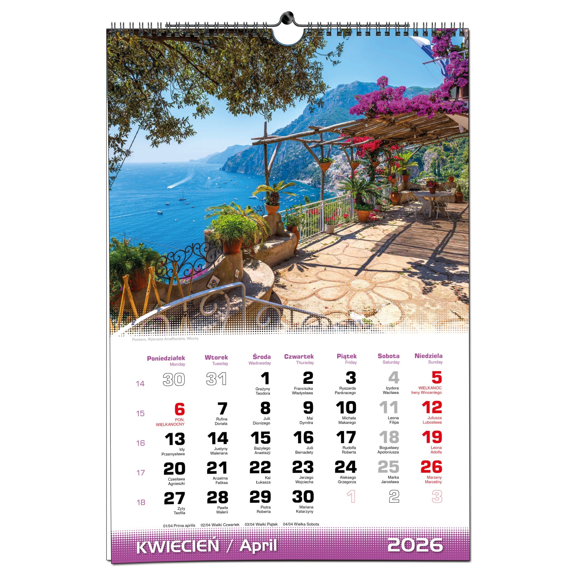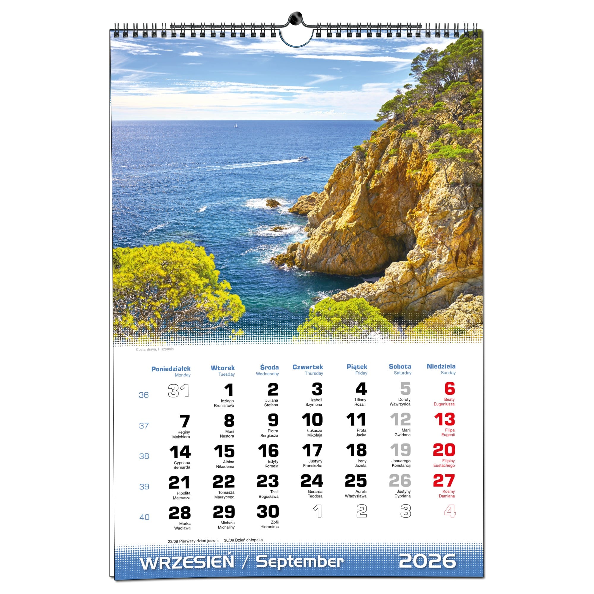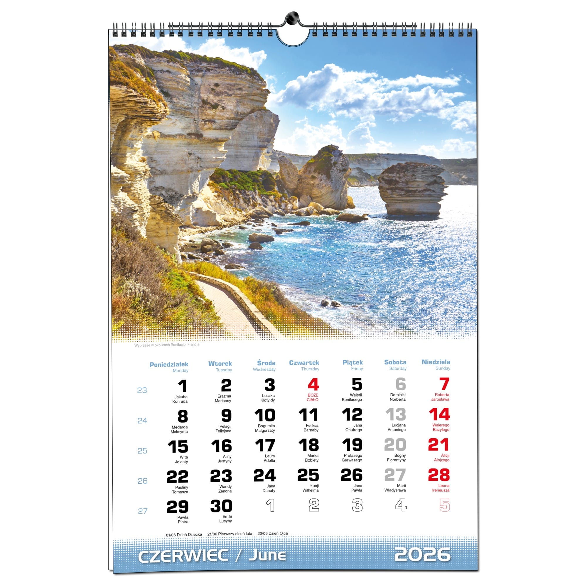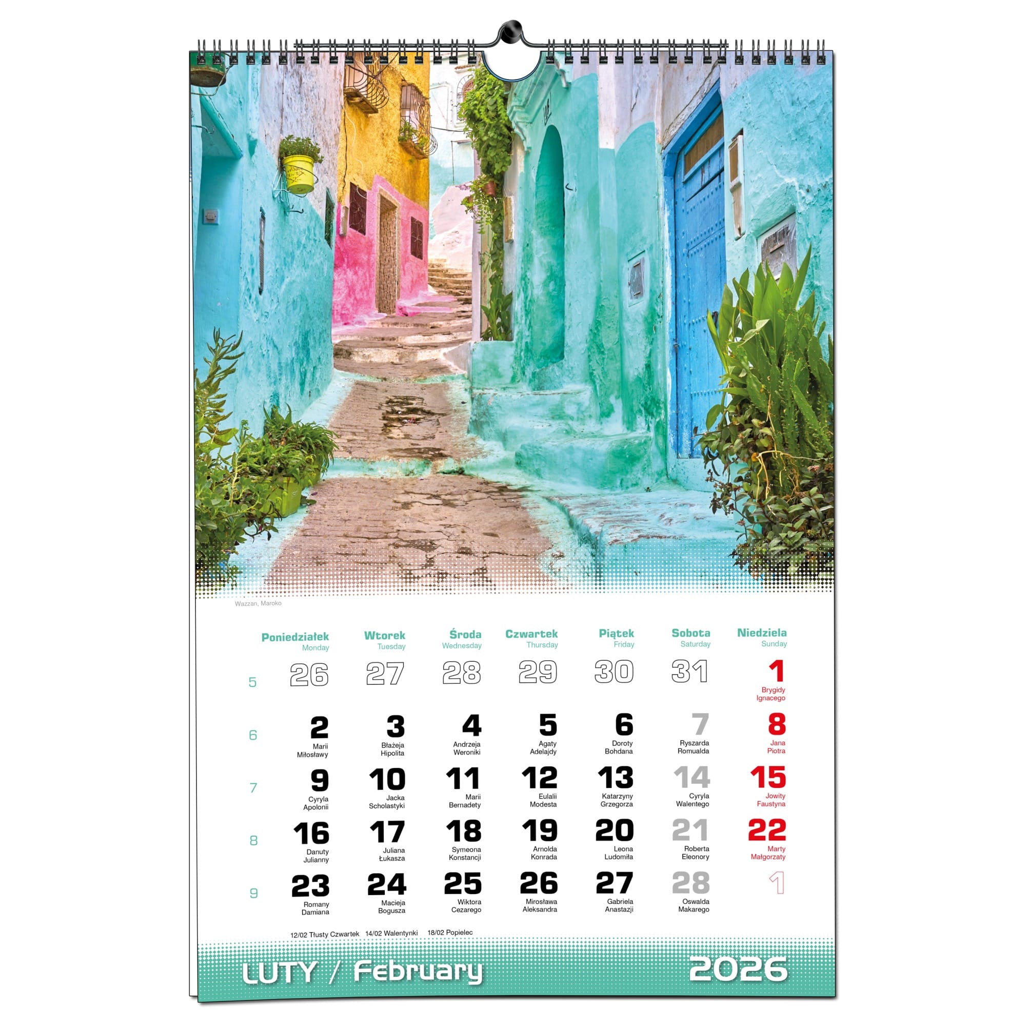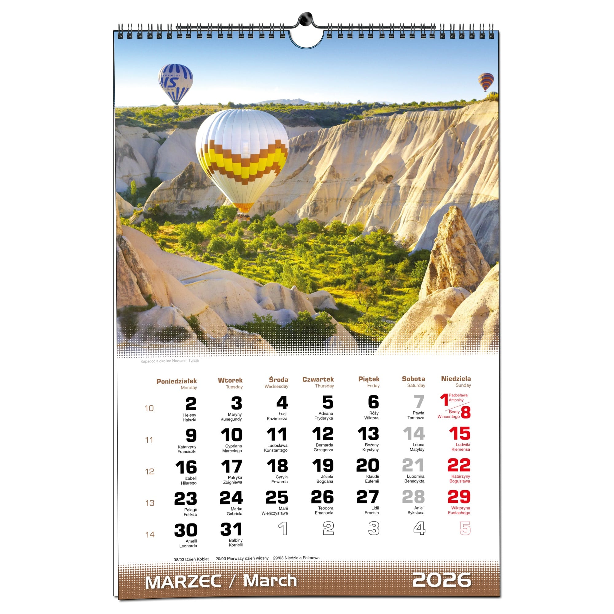 Kalendarz 2026 ścienny B3 33 x 48 cm 13 planszowy KRAJOBRAZY ŚWIATA