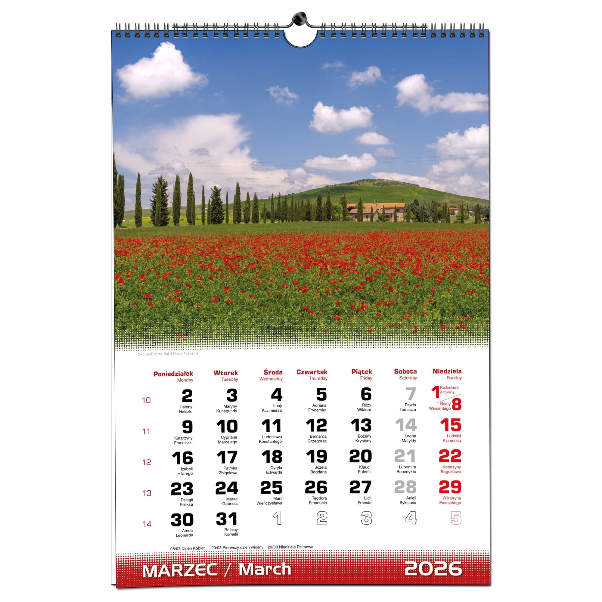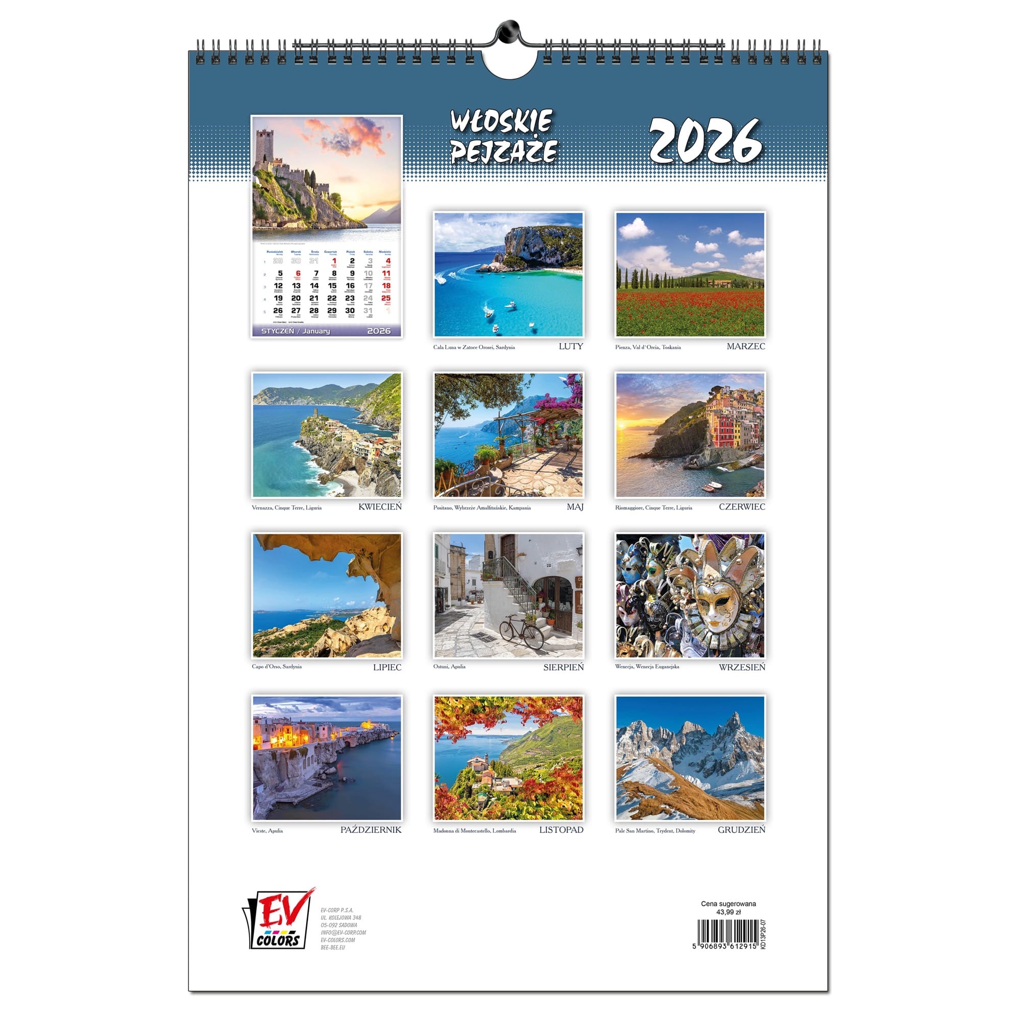 Kalendarz 2026 ścienny B3 33 x 48 cm 13 planszowy WŁOSKIE PEJZAŻE