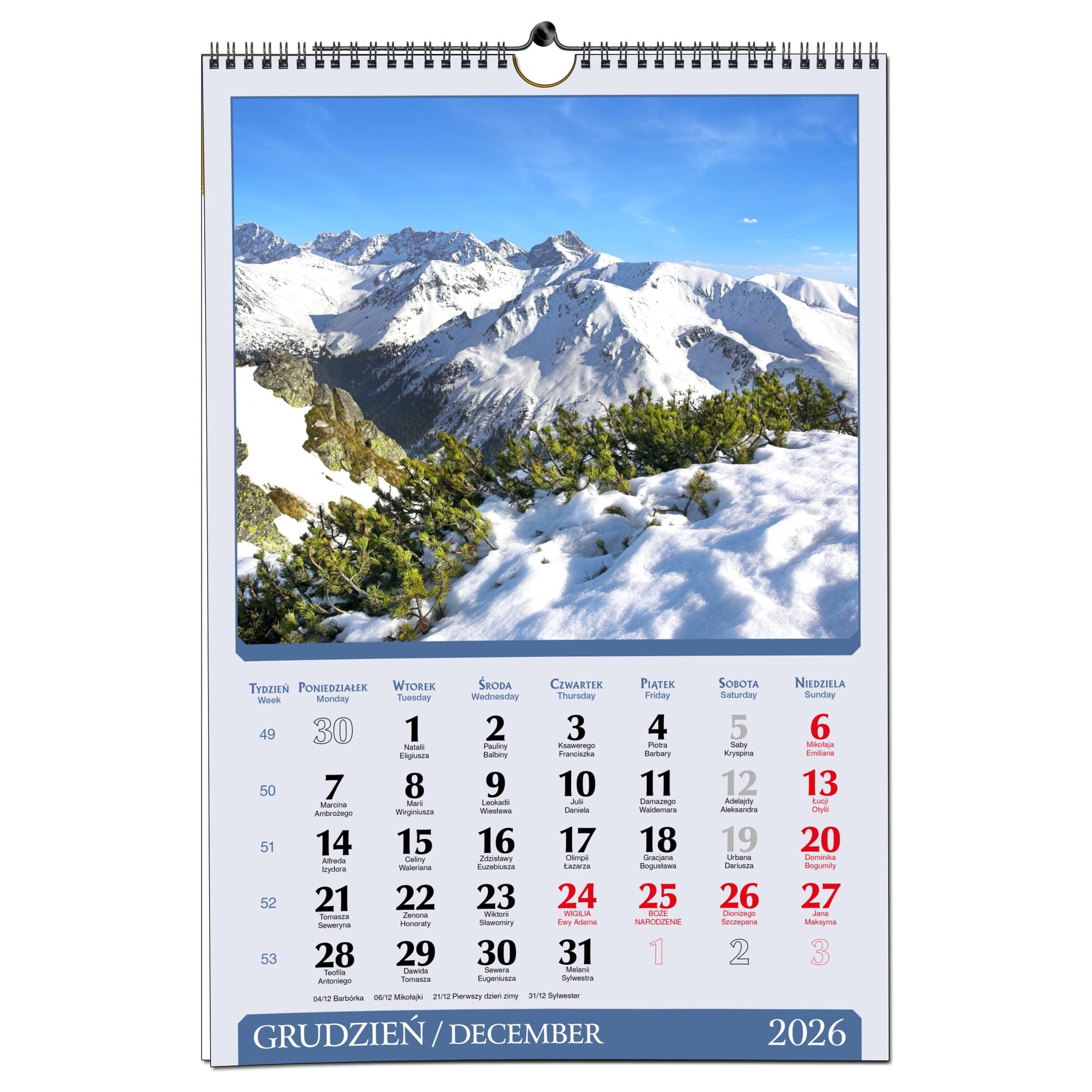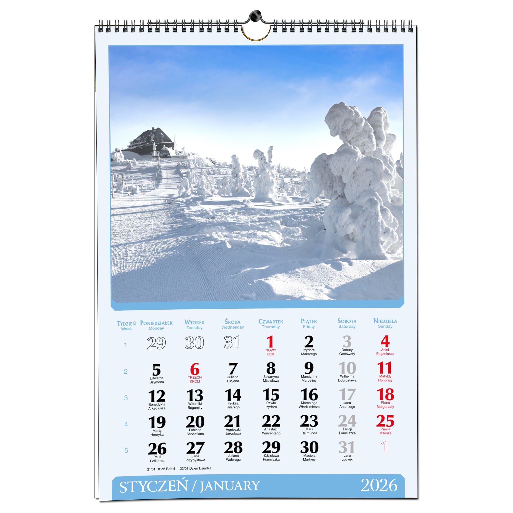 Kalendarz 2026 trójdzielny główka płaska PIENINY KSE26-30