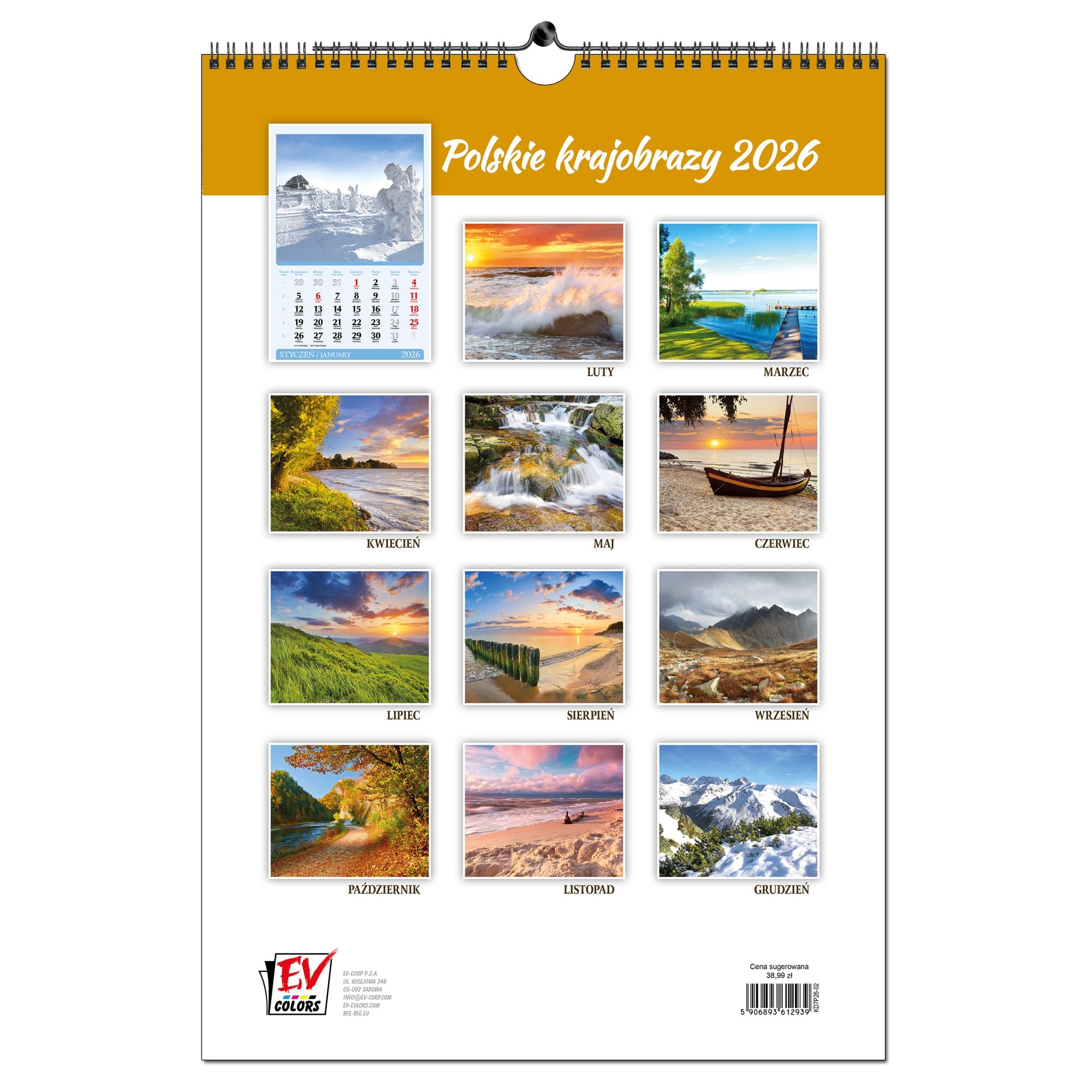Kalendarz 2026 ścienny B3 33 x 48 cm 7 planszowy POLSKIE KRAJOBRAZY