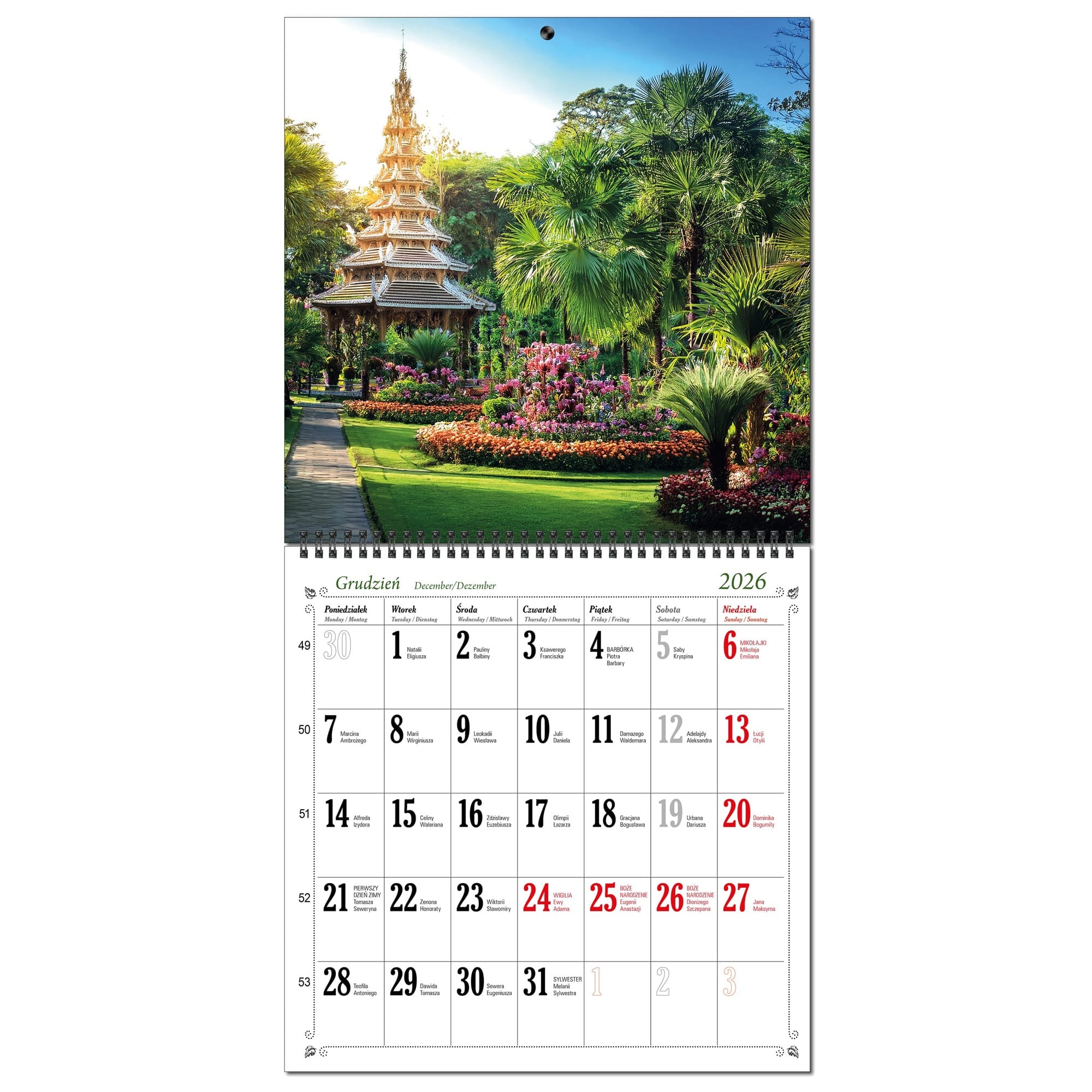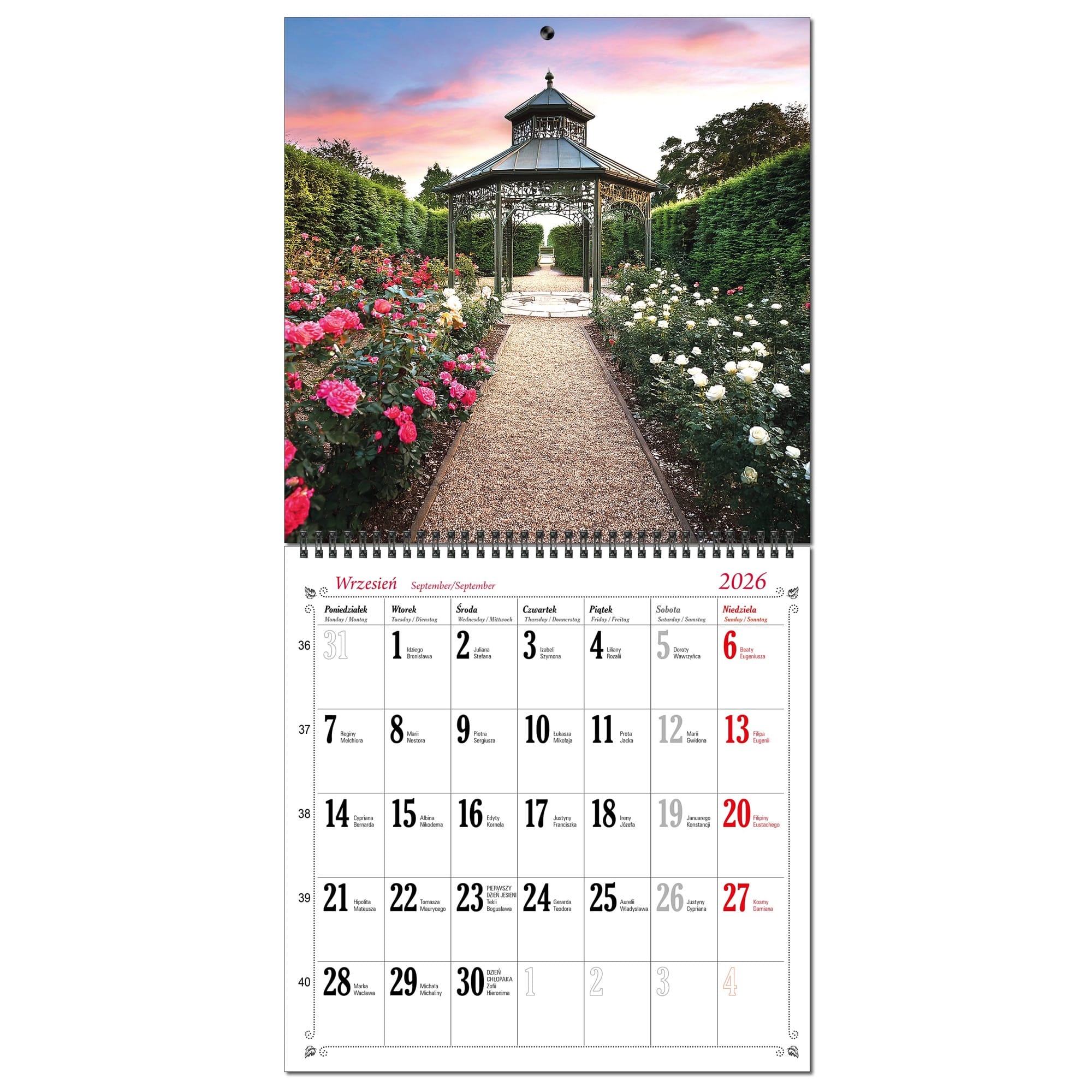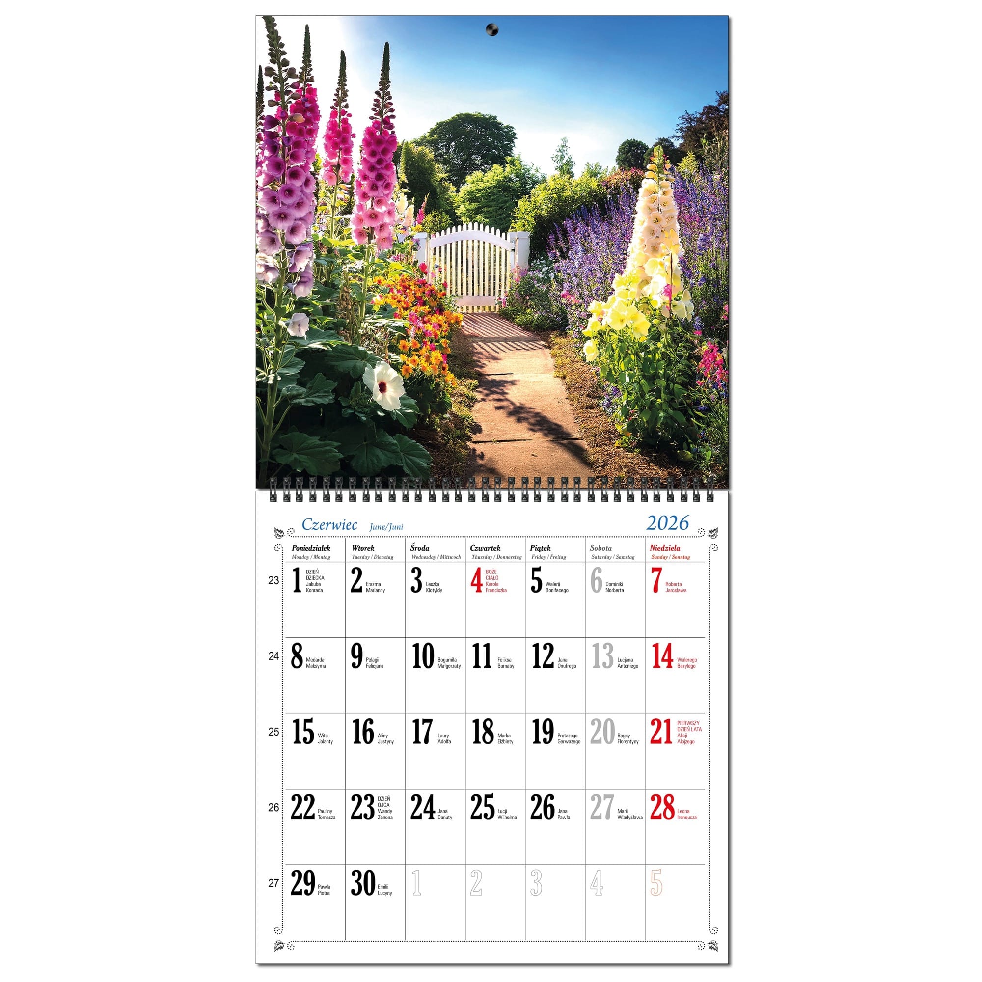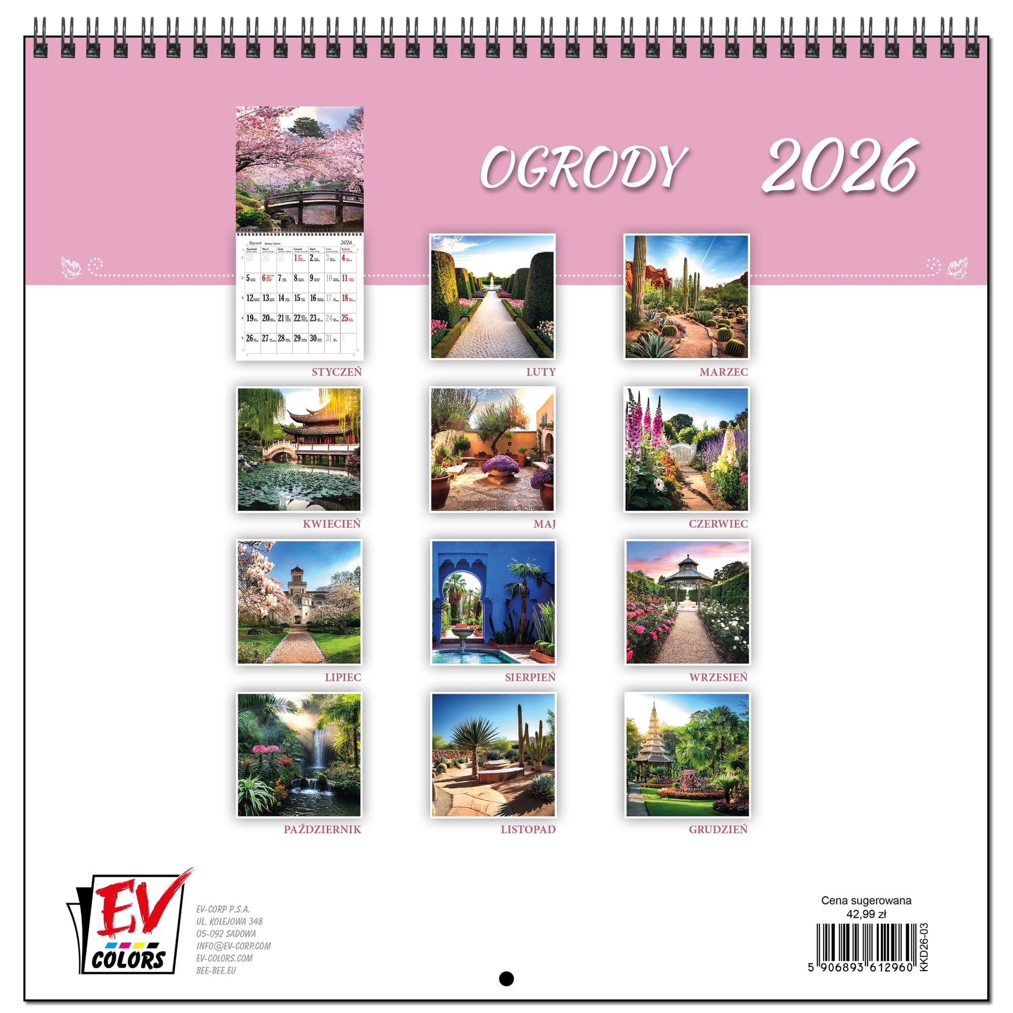 Kalendarz 2026 ścienny duży 30 x 60 cm 13 planszowy OGRODY