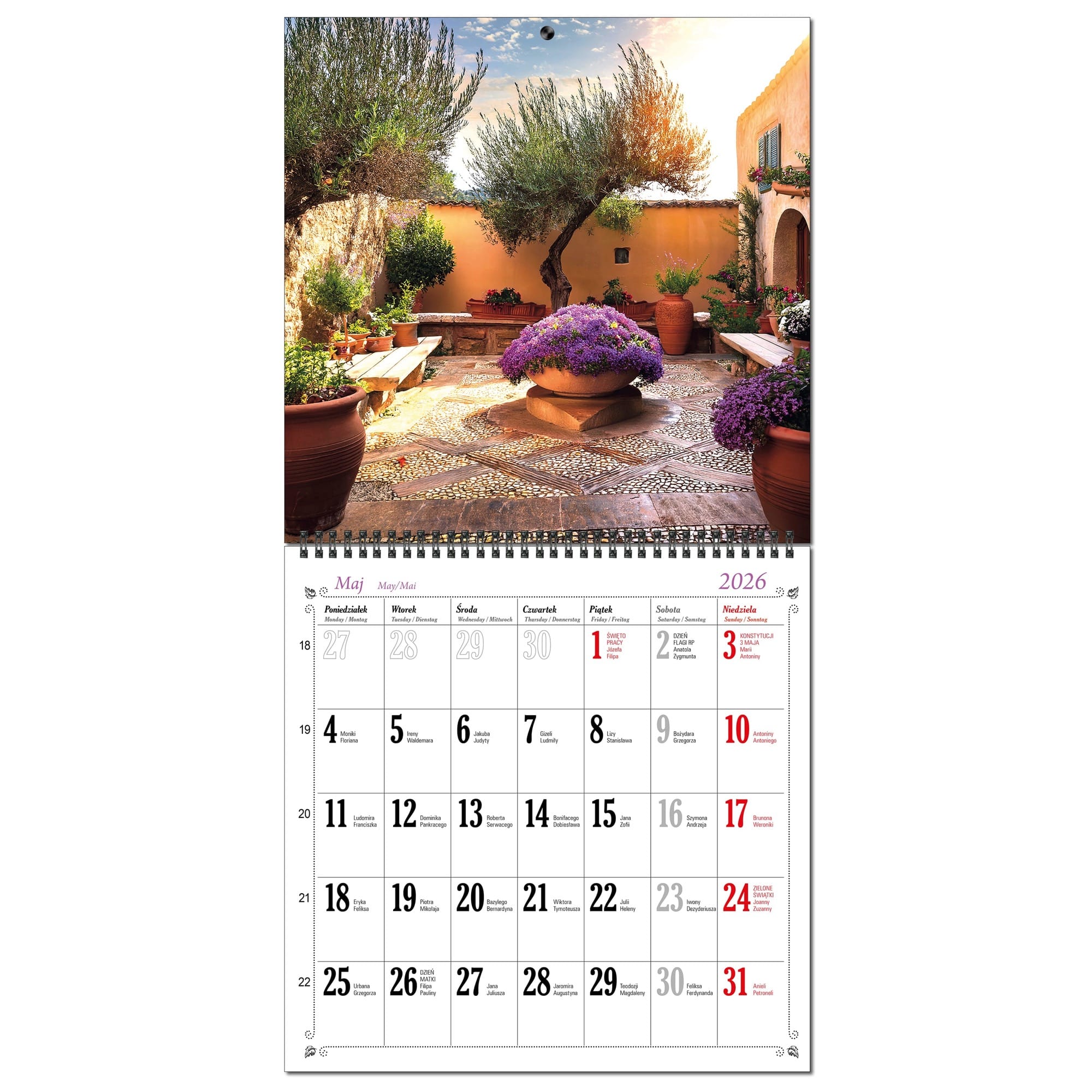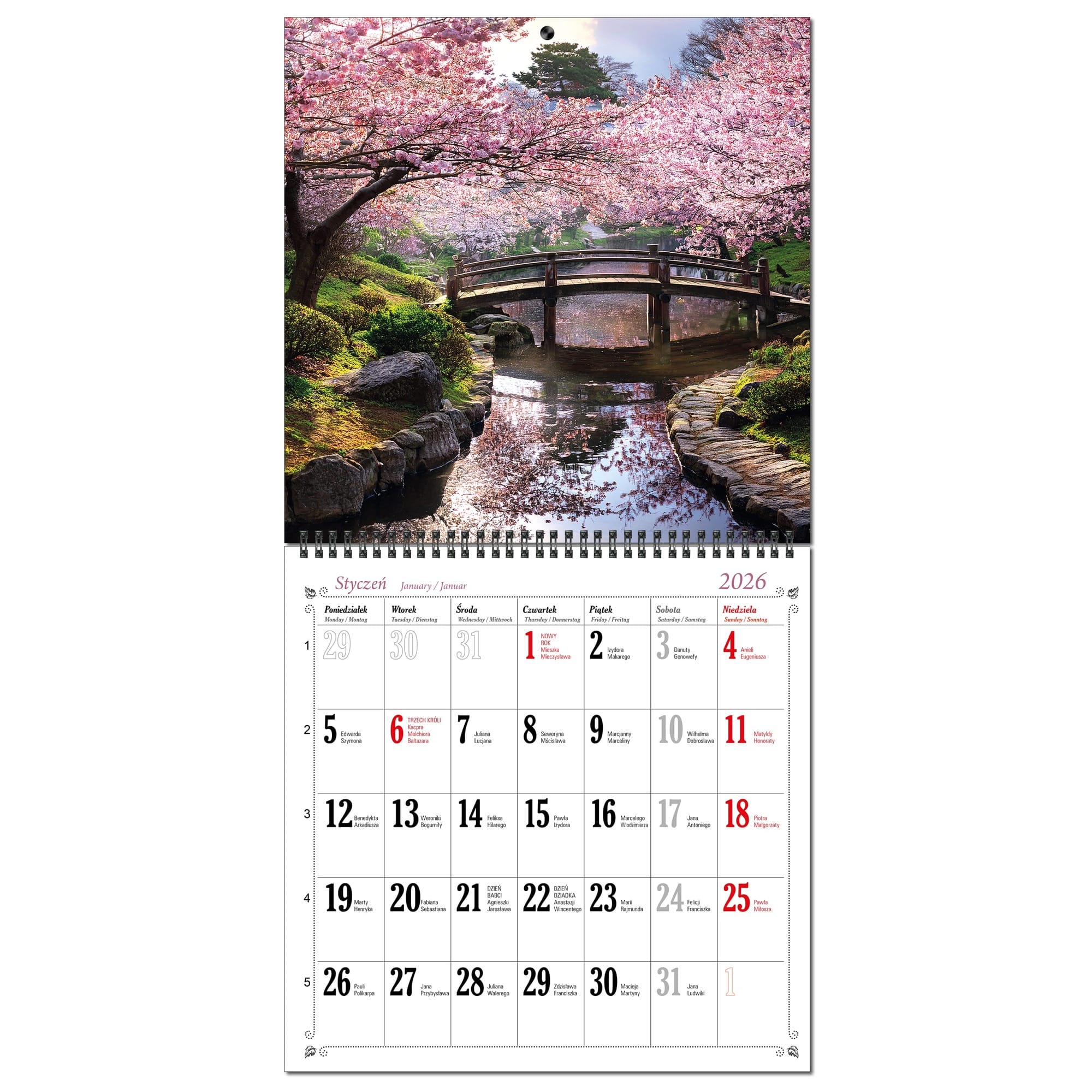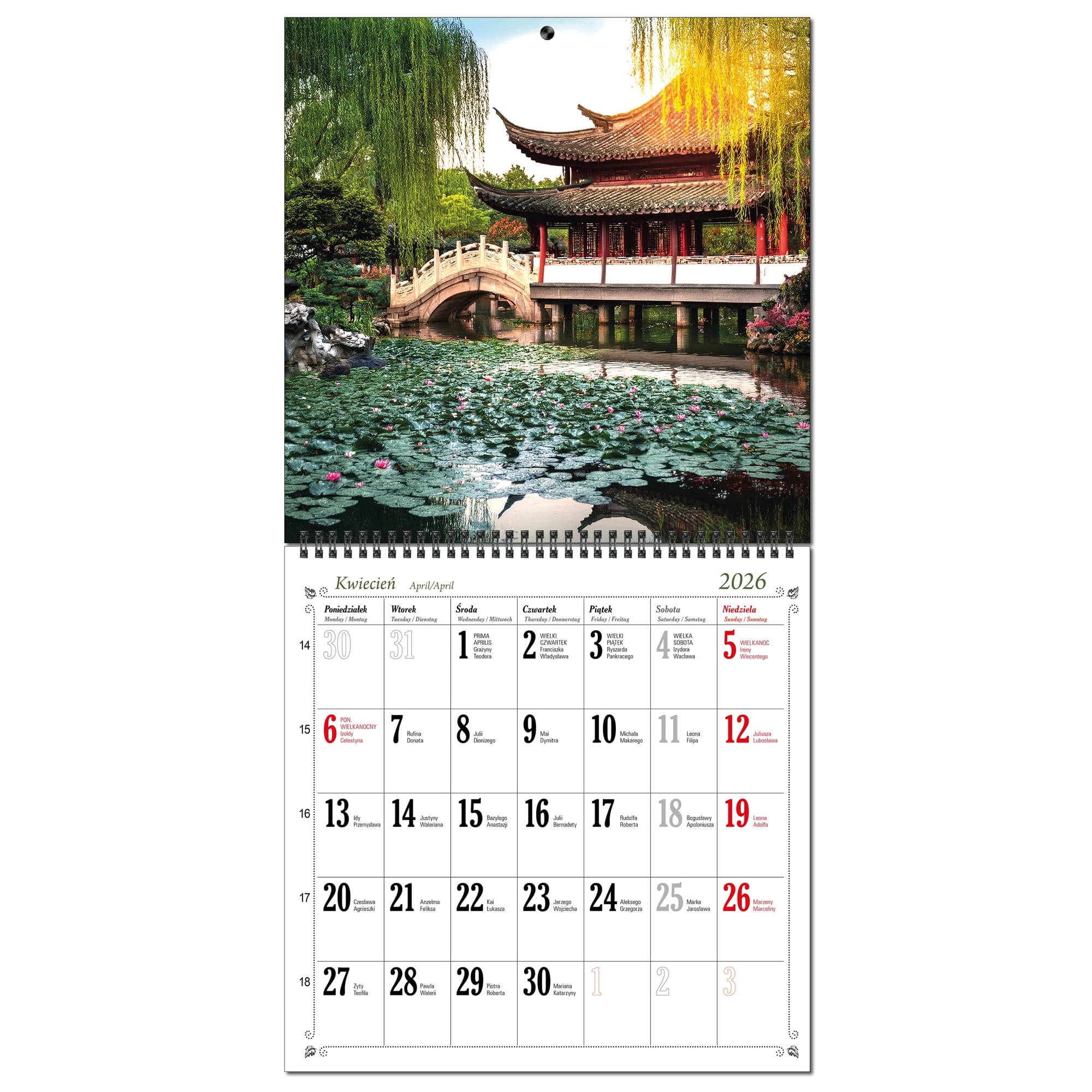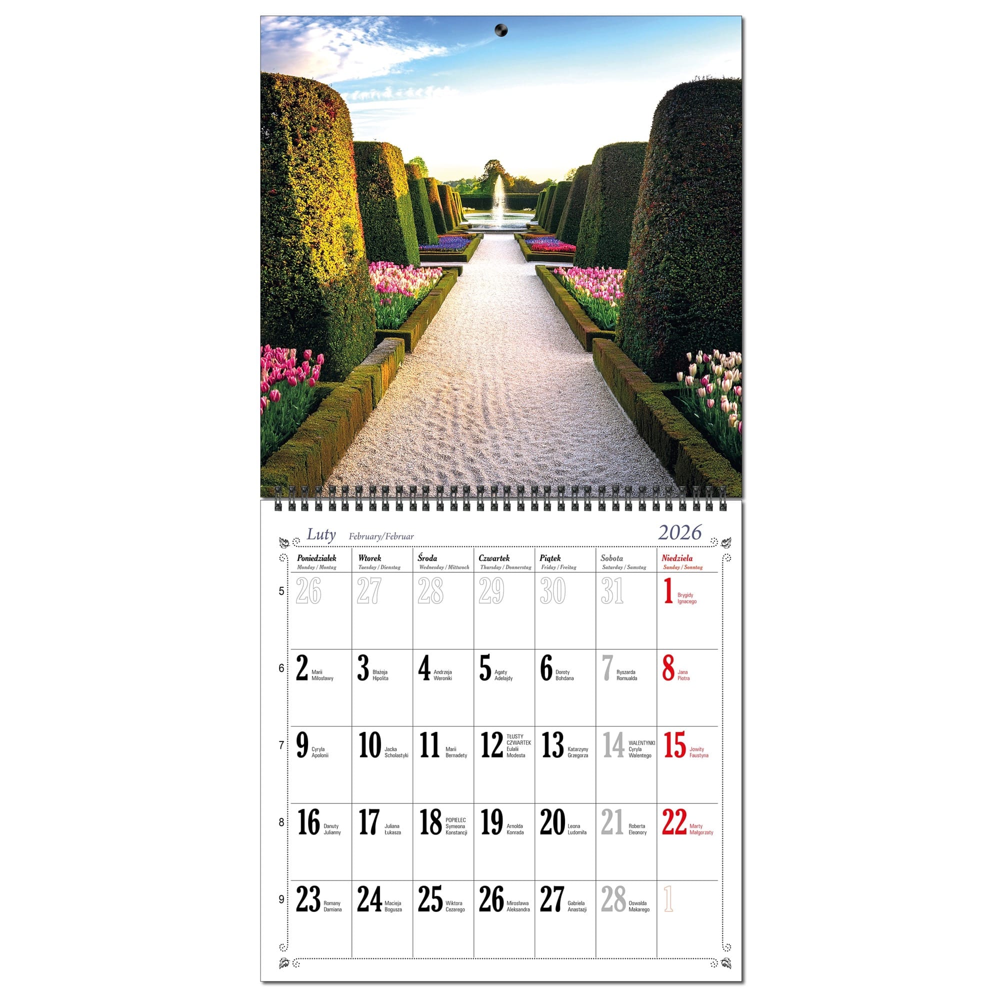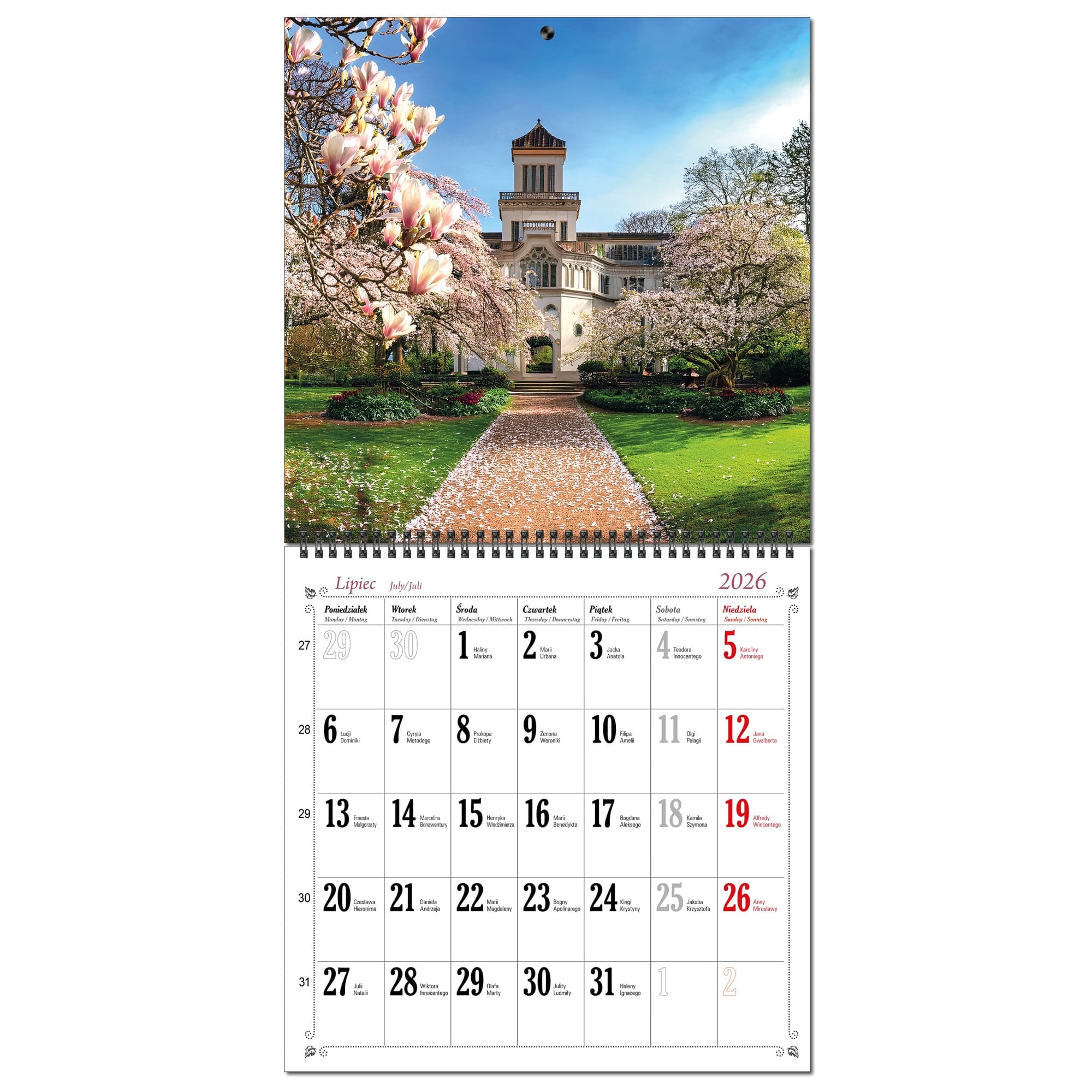 Kalendarz 2026 ścienny duży 30 x 60 cm 13 planszowy OGRODY