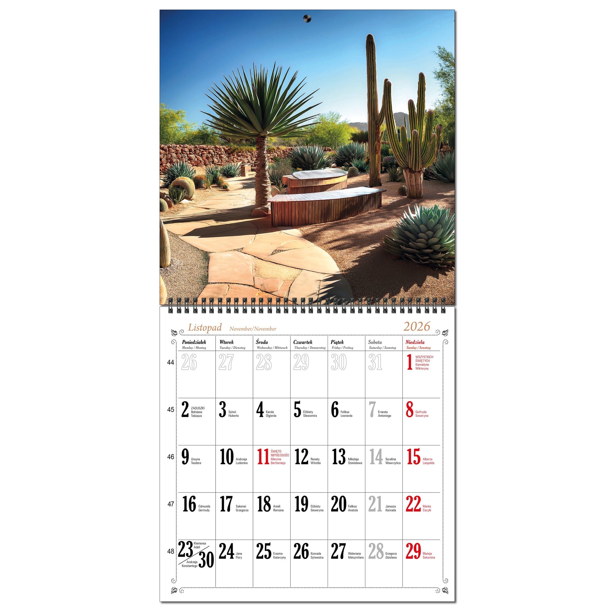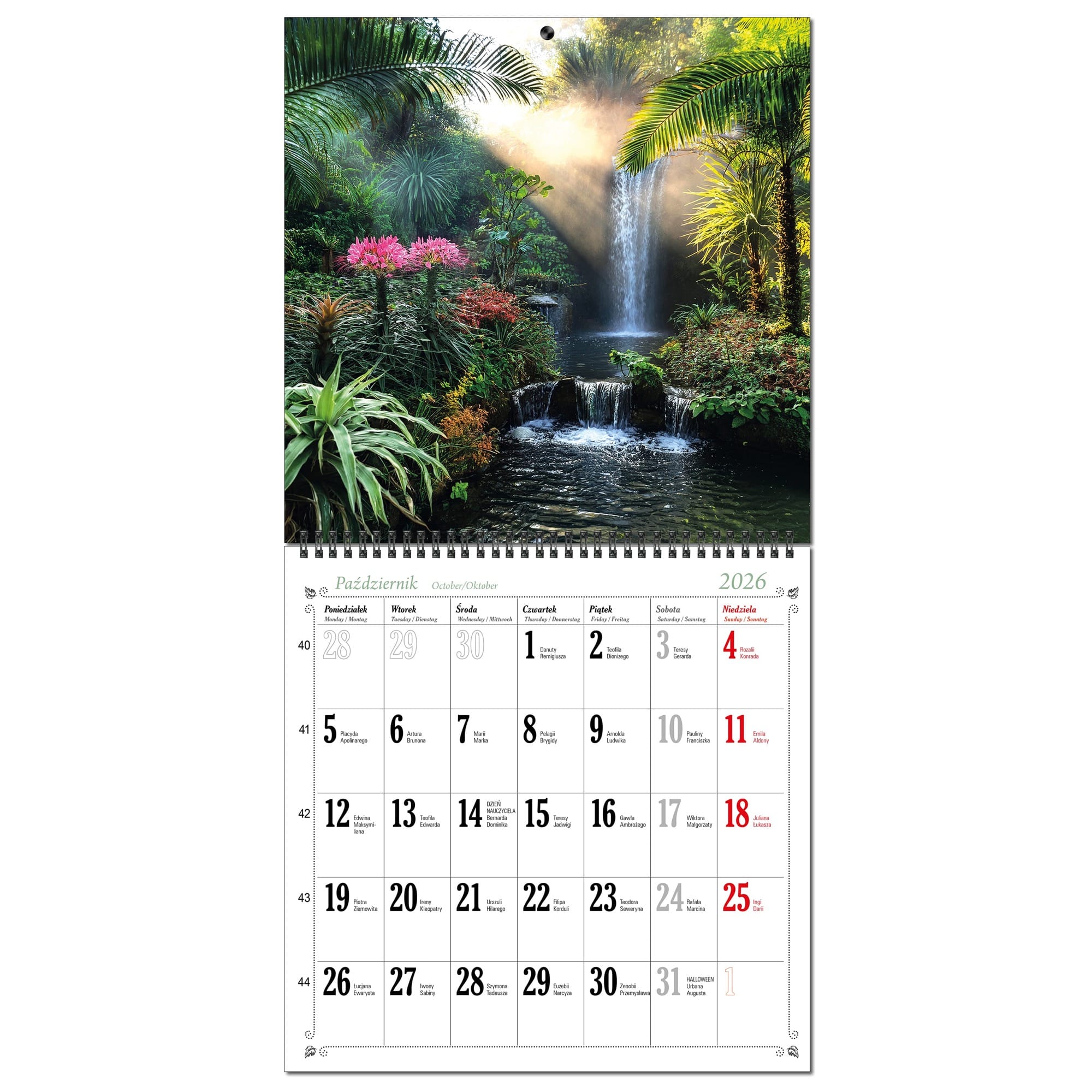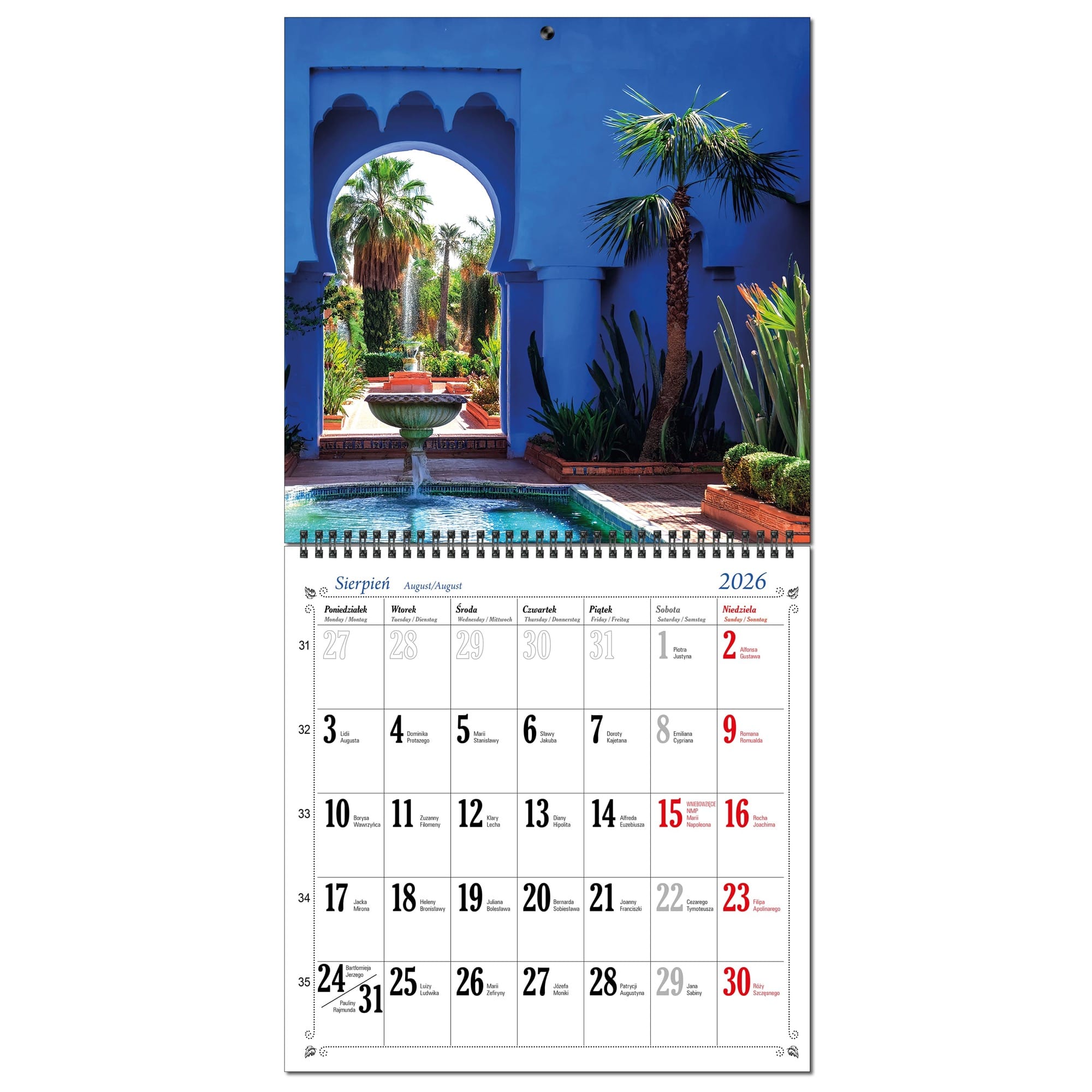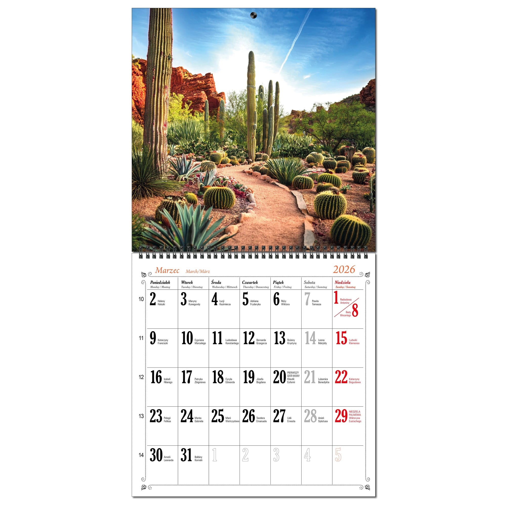 Kalendarz 2026 ścienny duży 30 x 60 cm 13 planszowy OGRODY