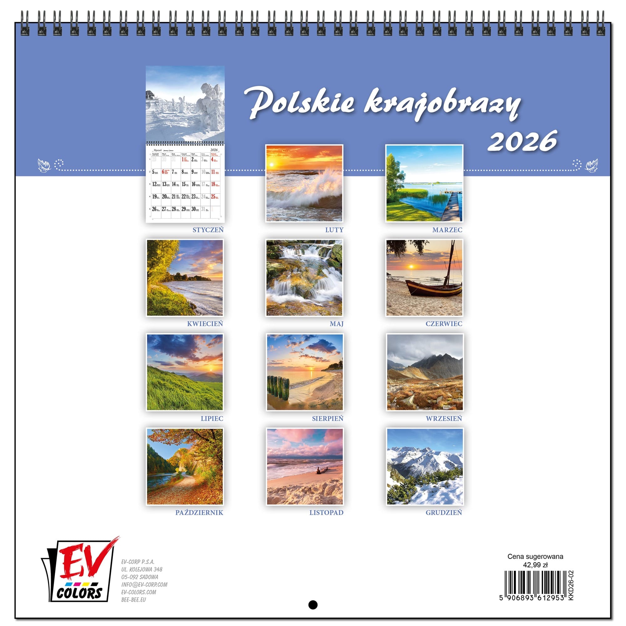 Kalendarz 2026 ścienny duży 30 x 60 cm 13 planszowy POLSKIE KRAJOBRAZY