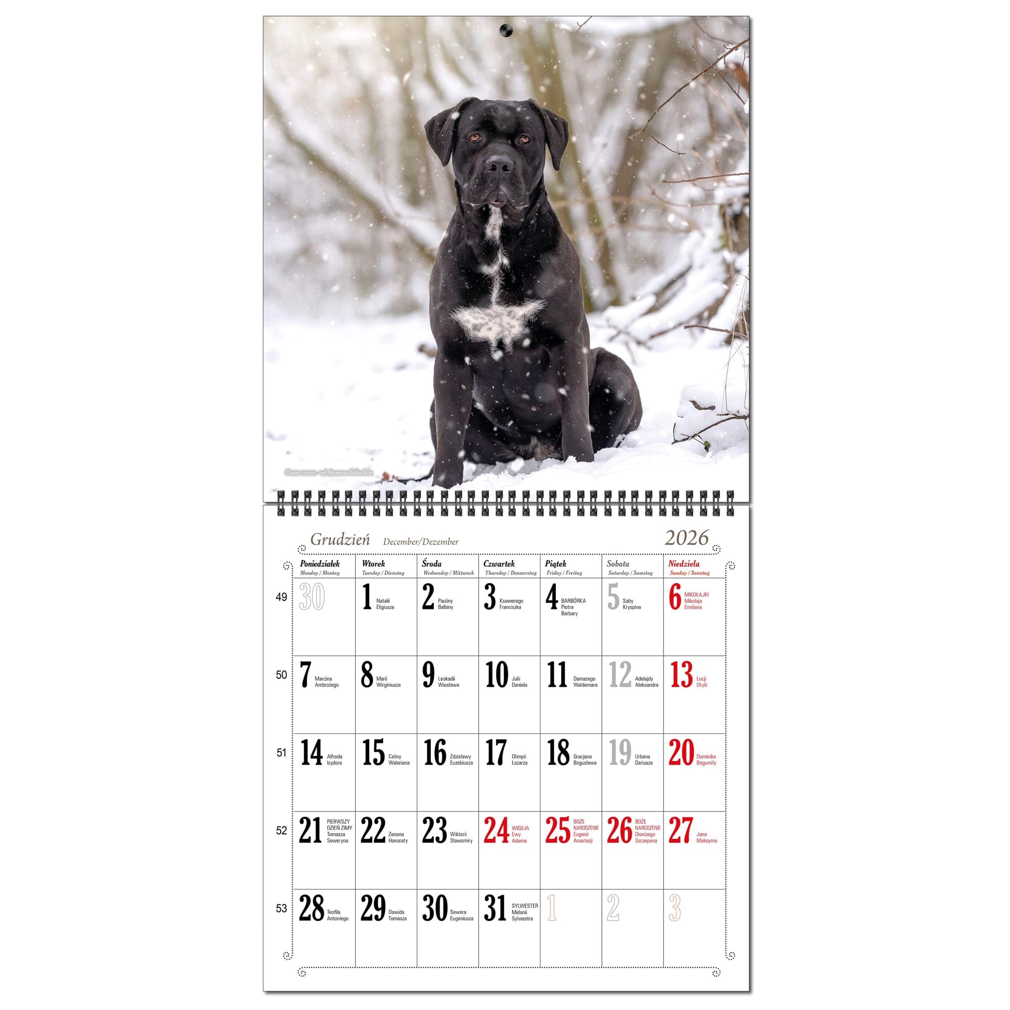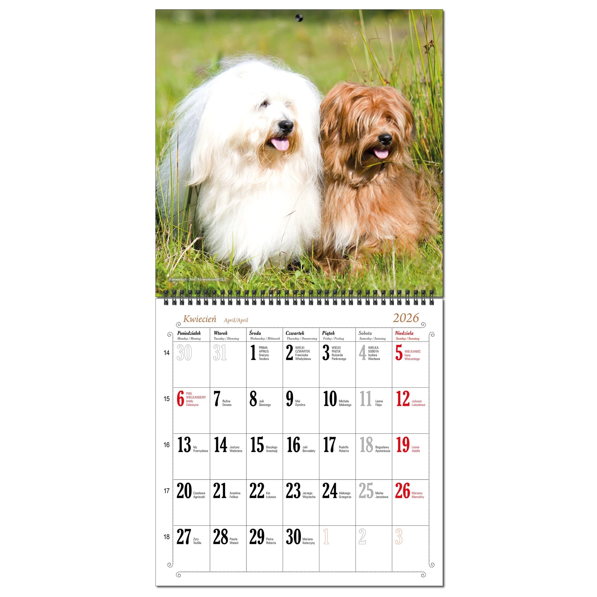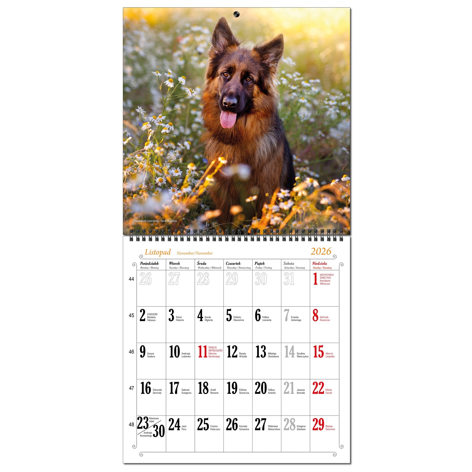 Kalendarz 2026 ścienny duży 30 x 60 cm 13 planszowy PSY RASOWE
