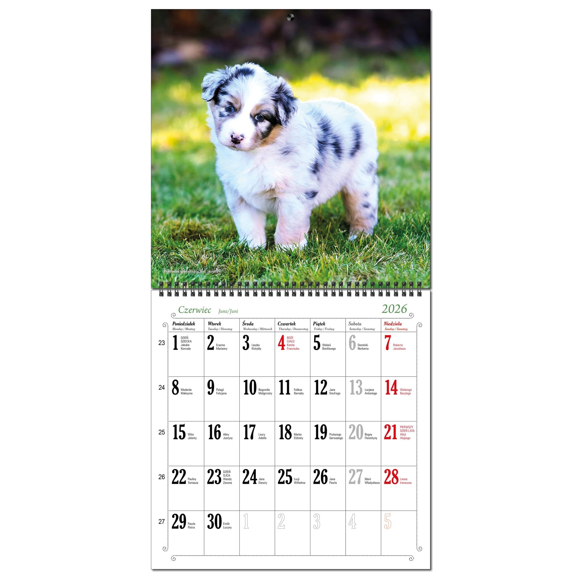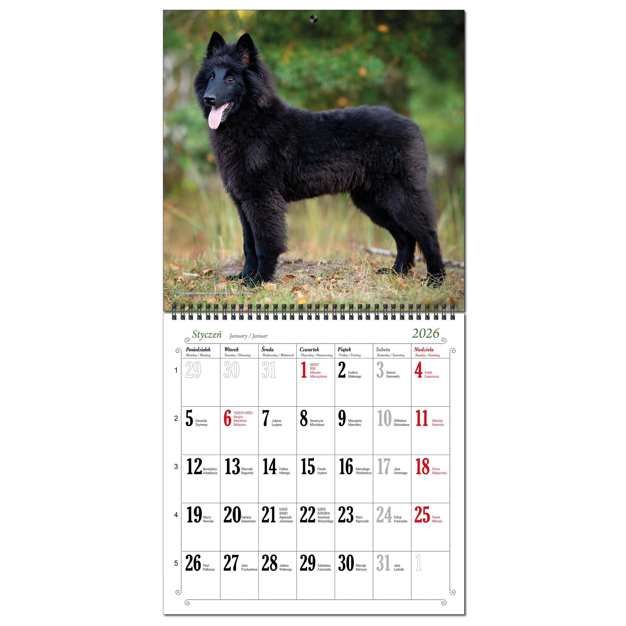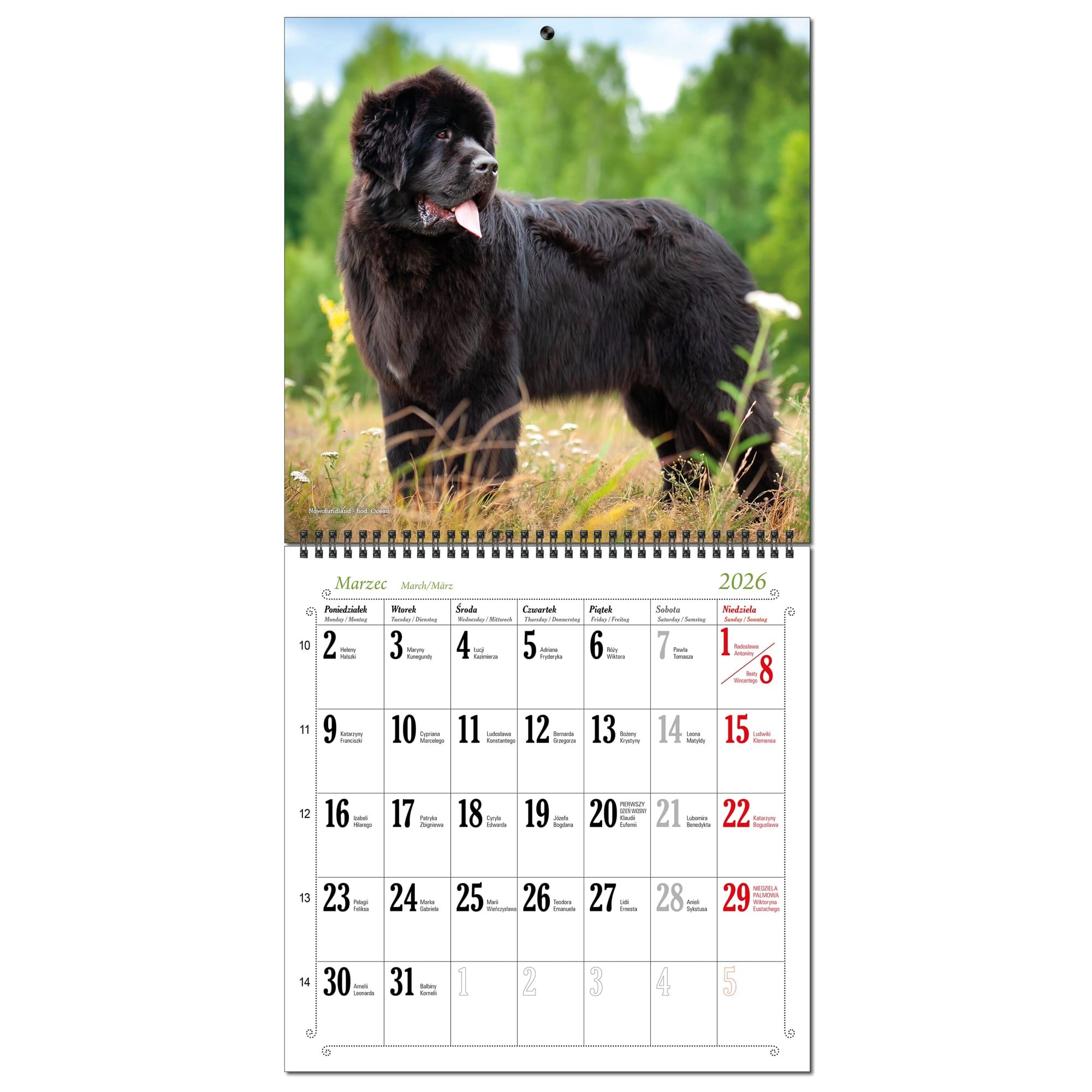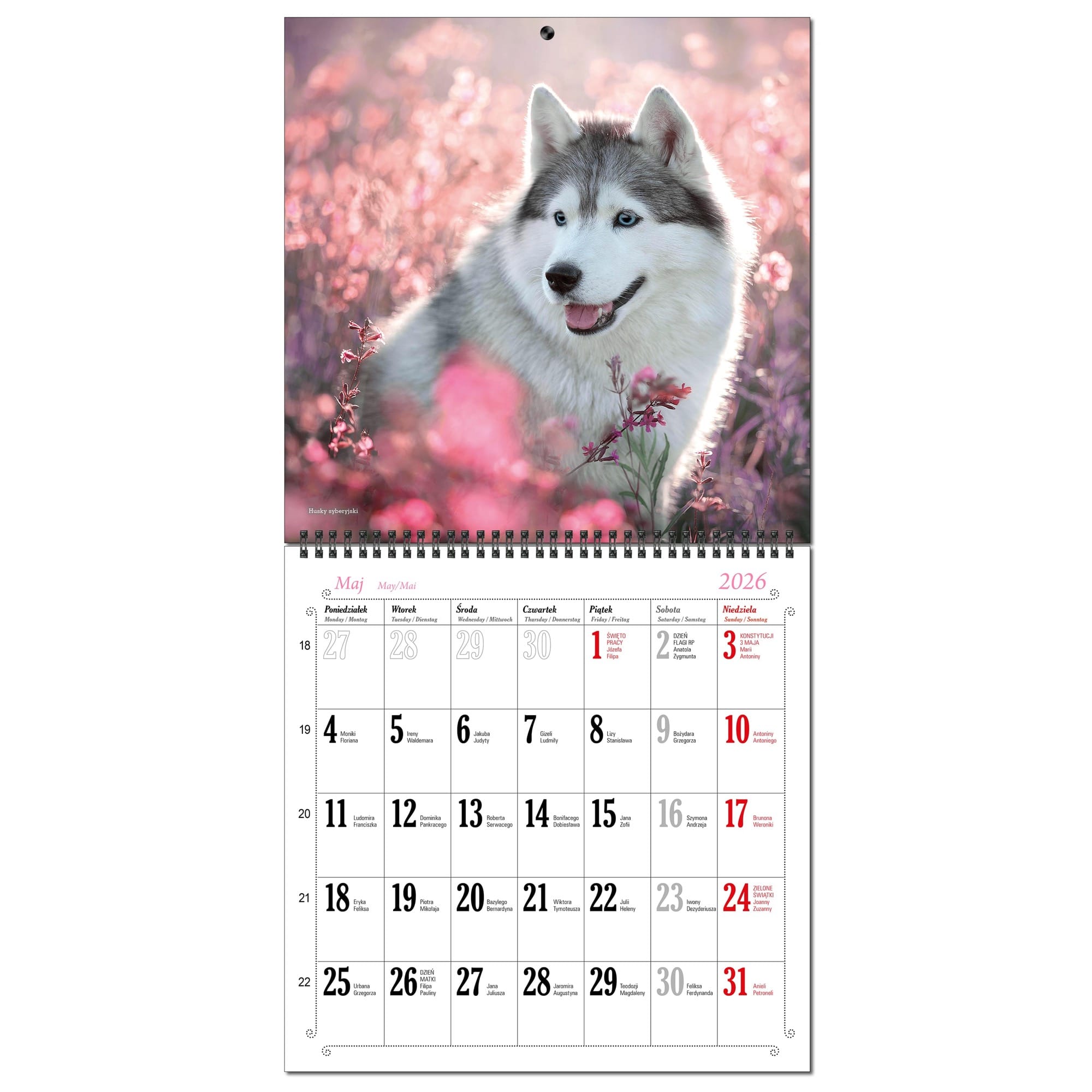 Kalendarz 2026 ścienny duży 30 x 60 cm 13 planszowy PSY RASOWE