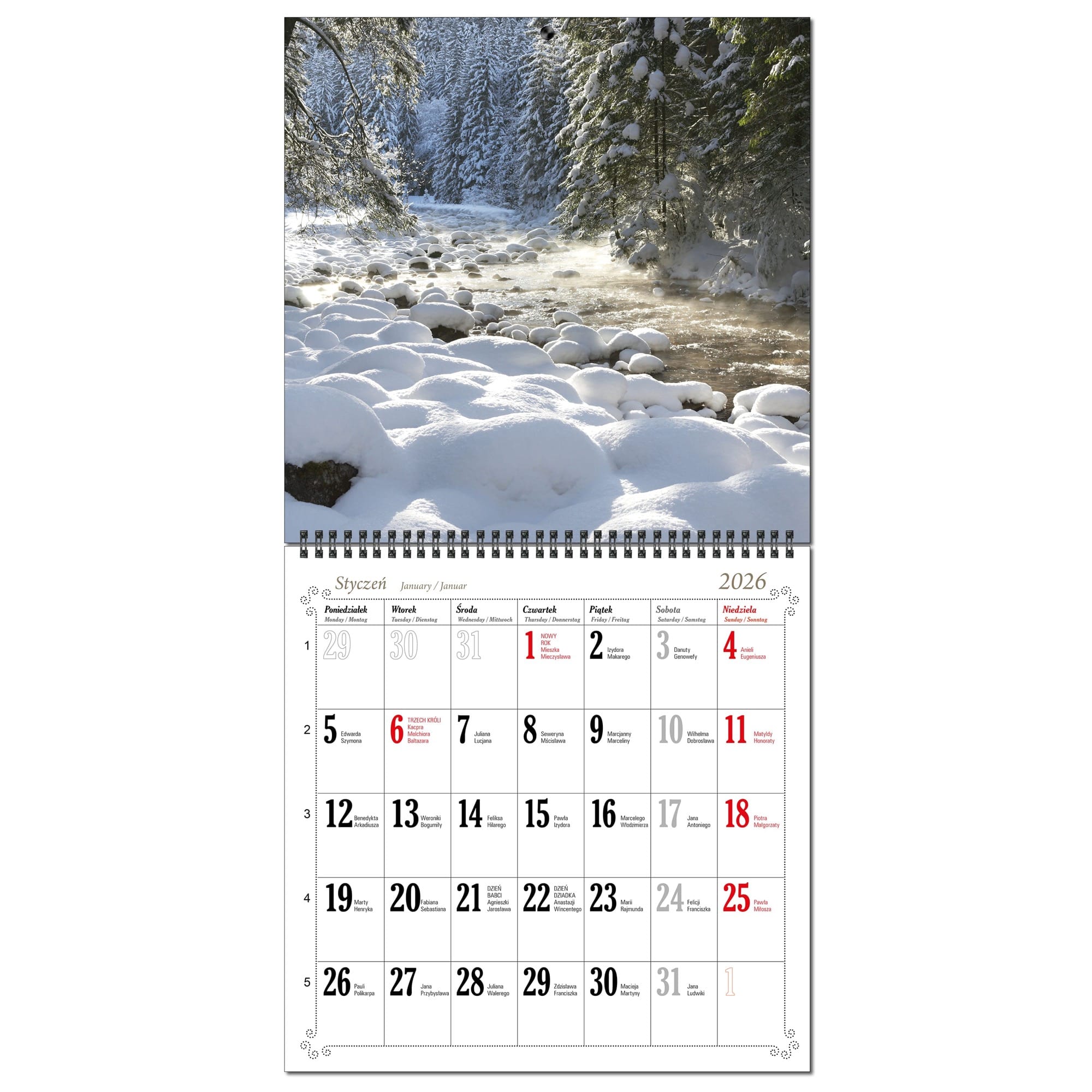 Kalendarz 2026 trójdzielny główka płaska PIENINY KSE26-30