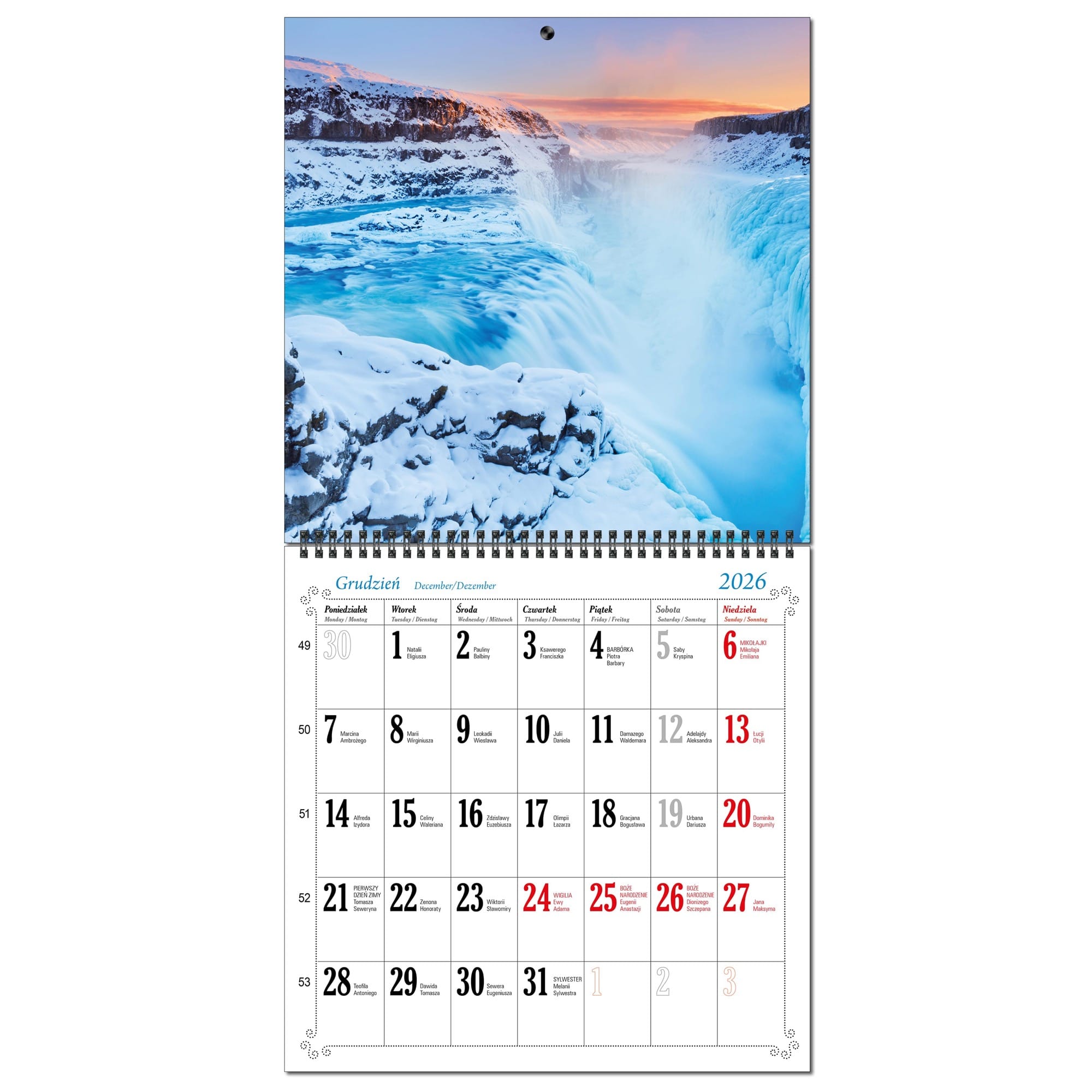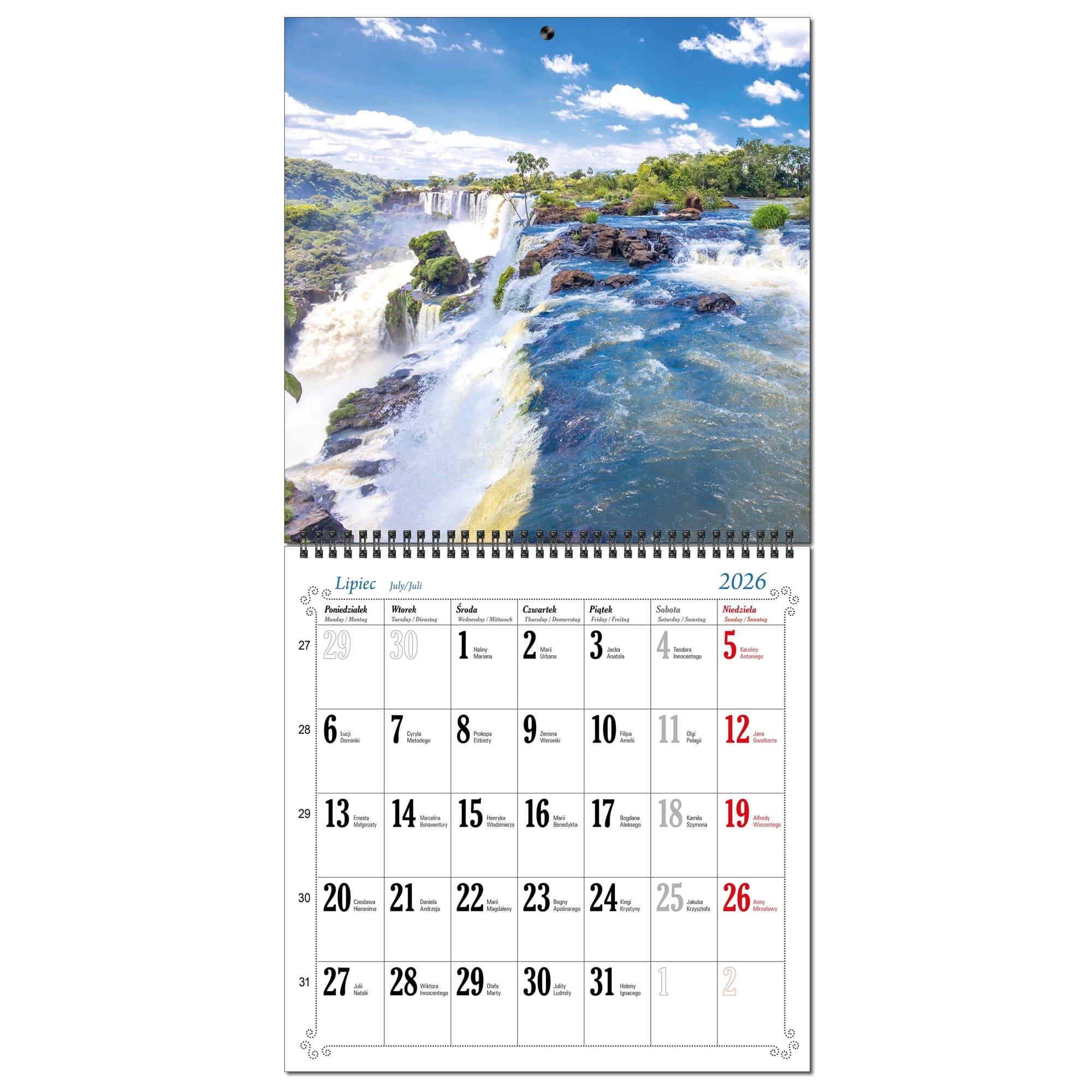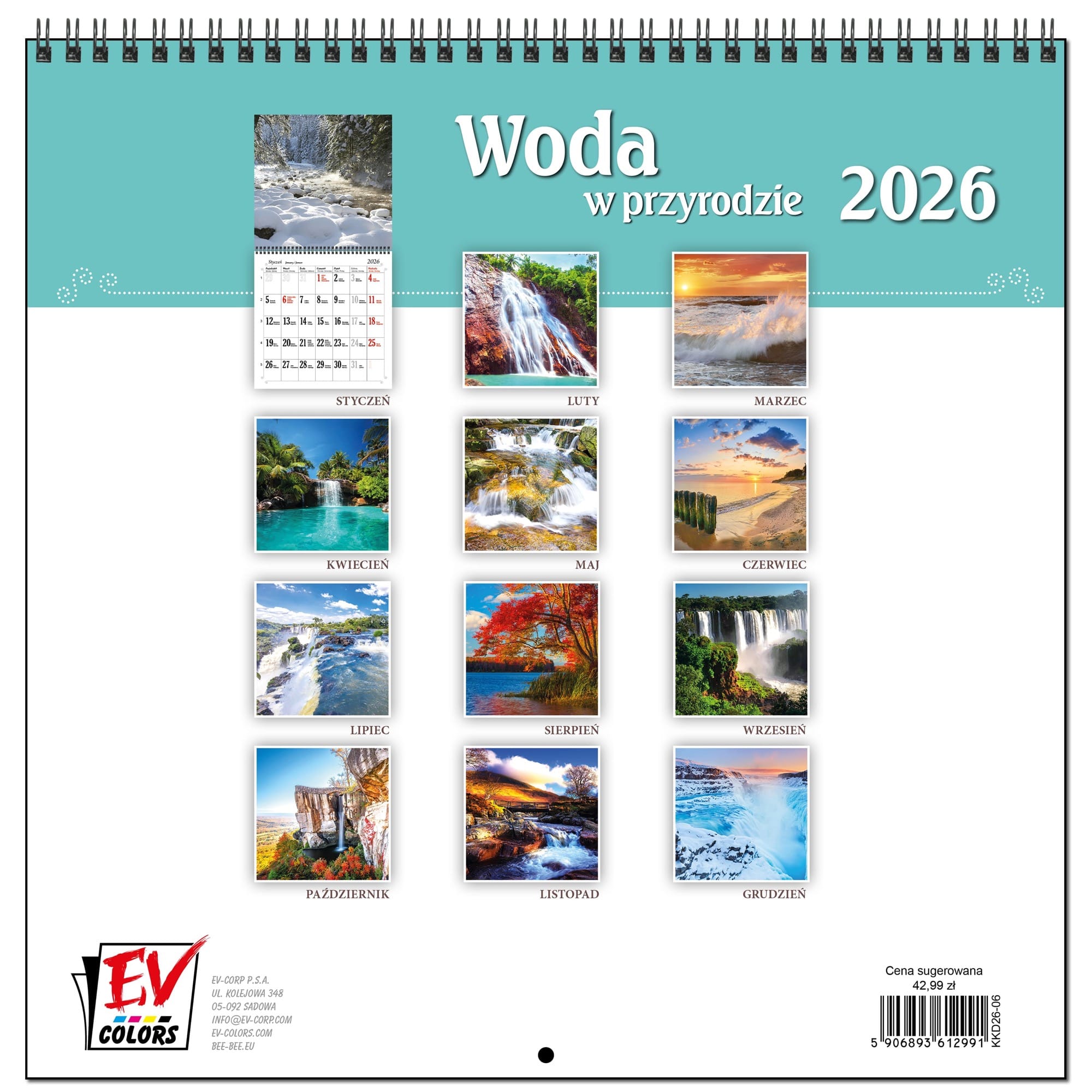 Kalendarz 2026 ścienny duży 30 x 60 cm 13 planszowy WODA W PRZYRODZIE