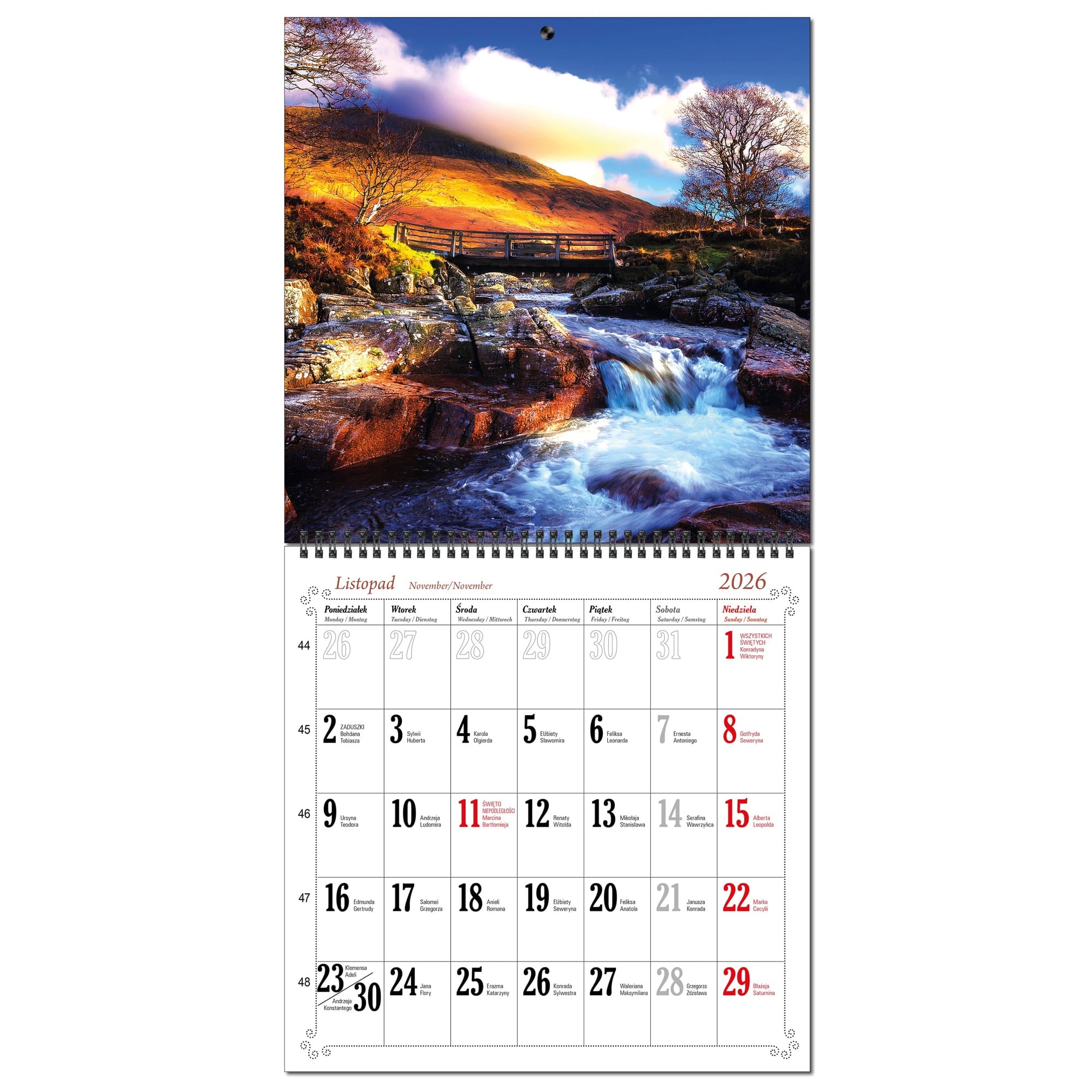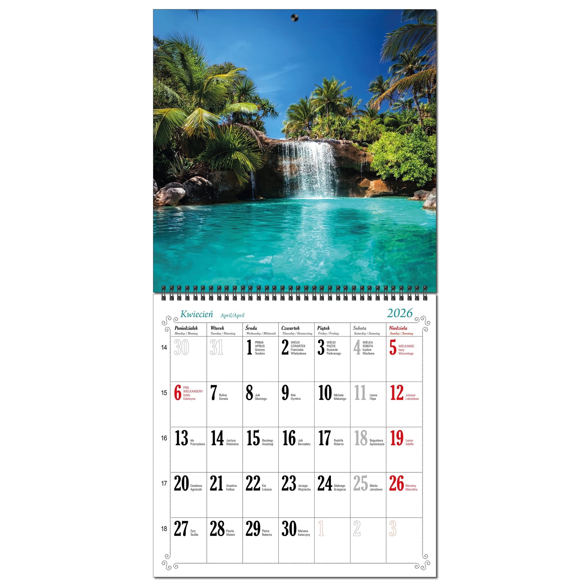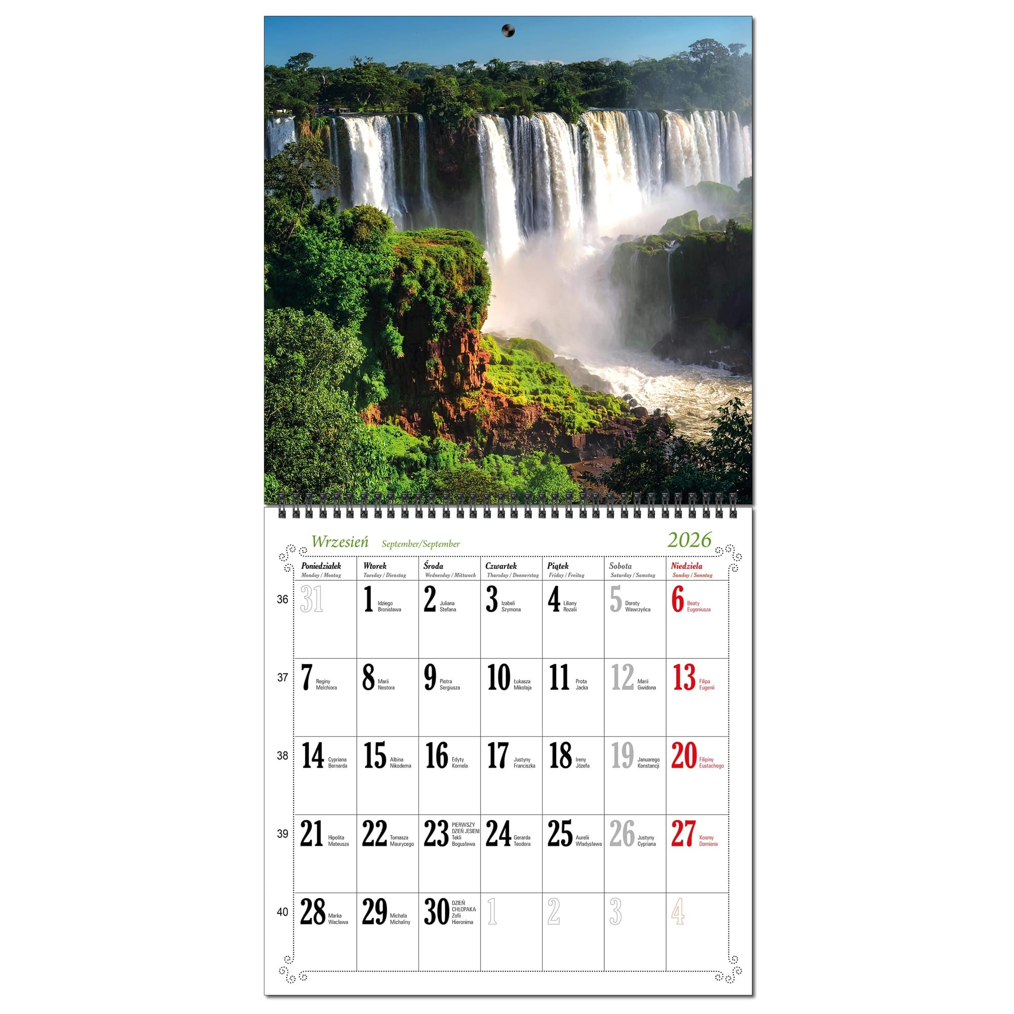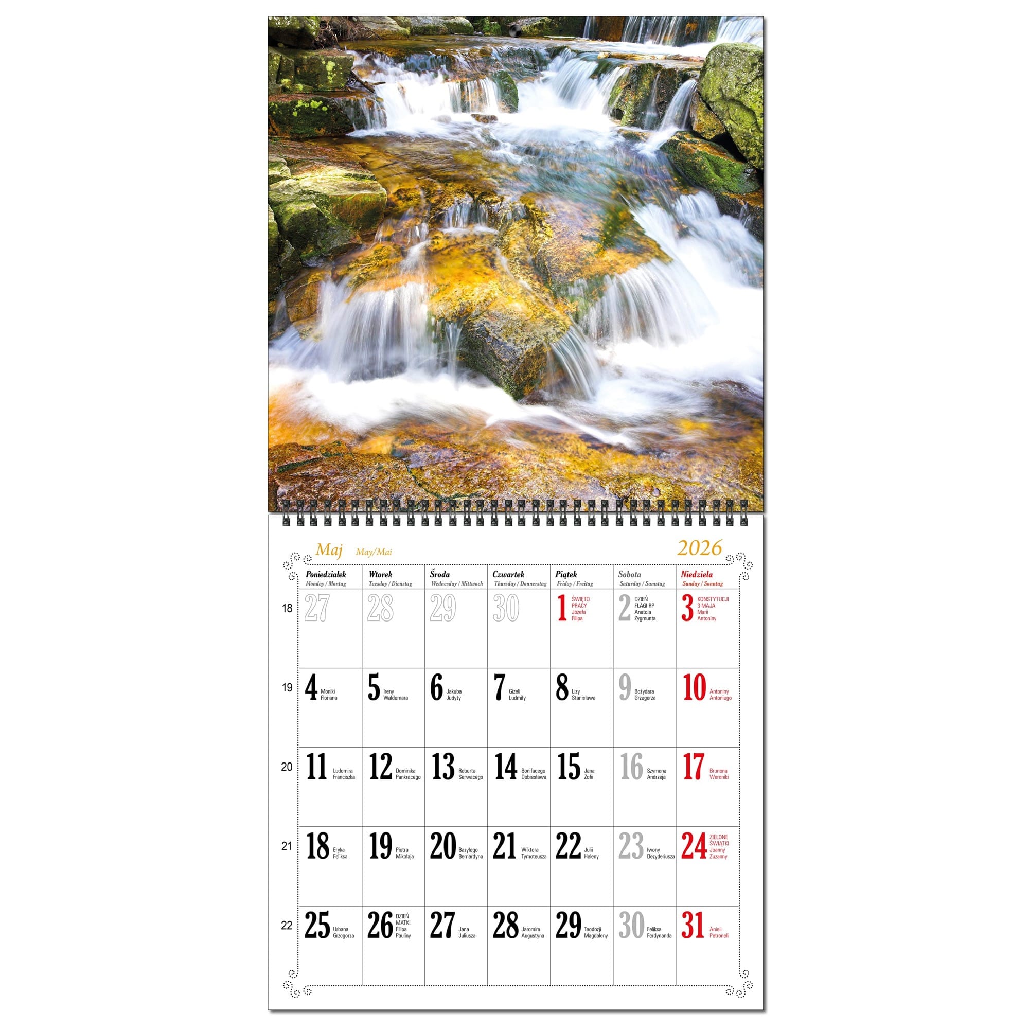 Kalendarz 2026 ścienny duży 30 x 60 cm 13 planszowy WODA W PRZYRODZIE
