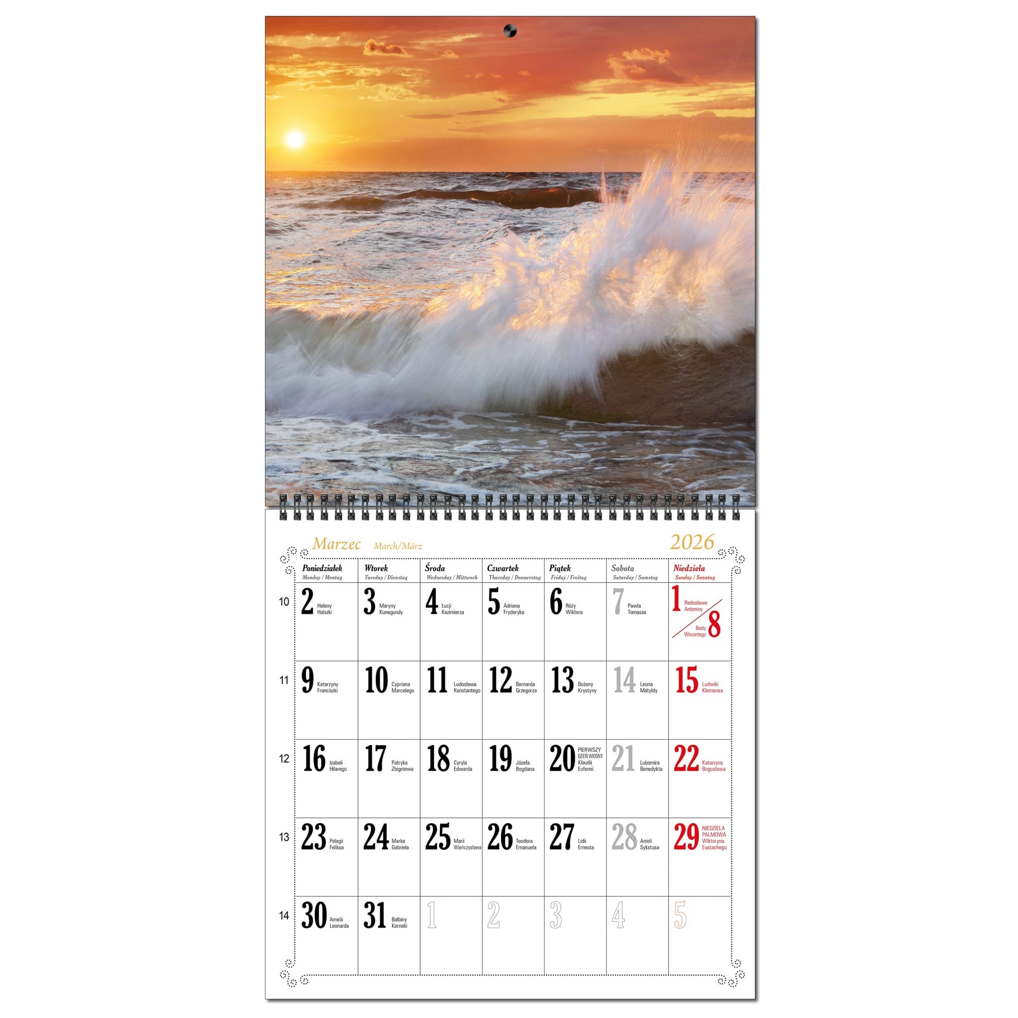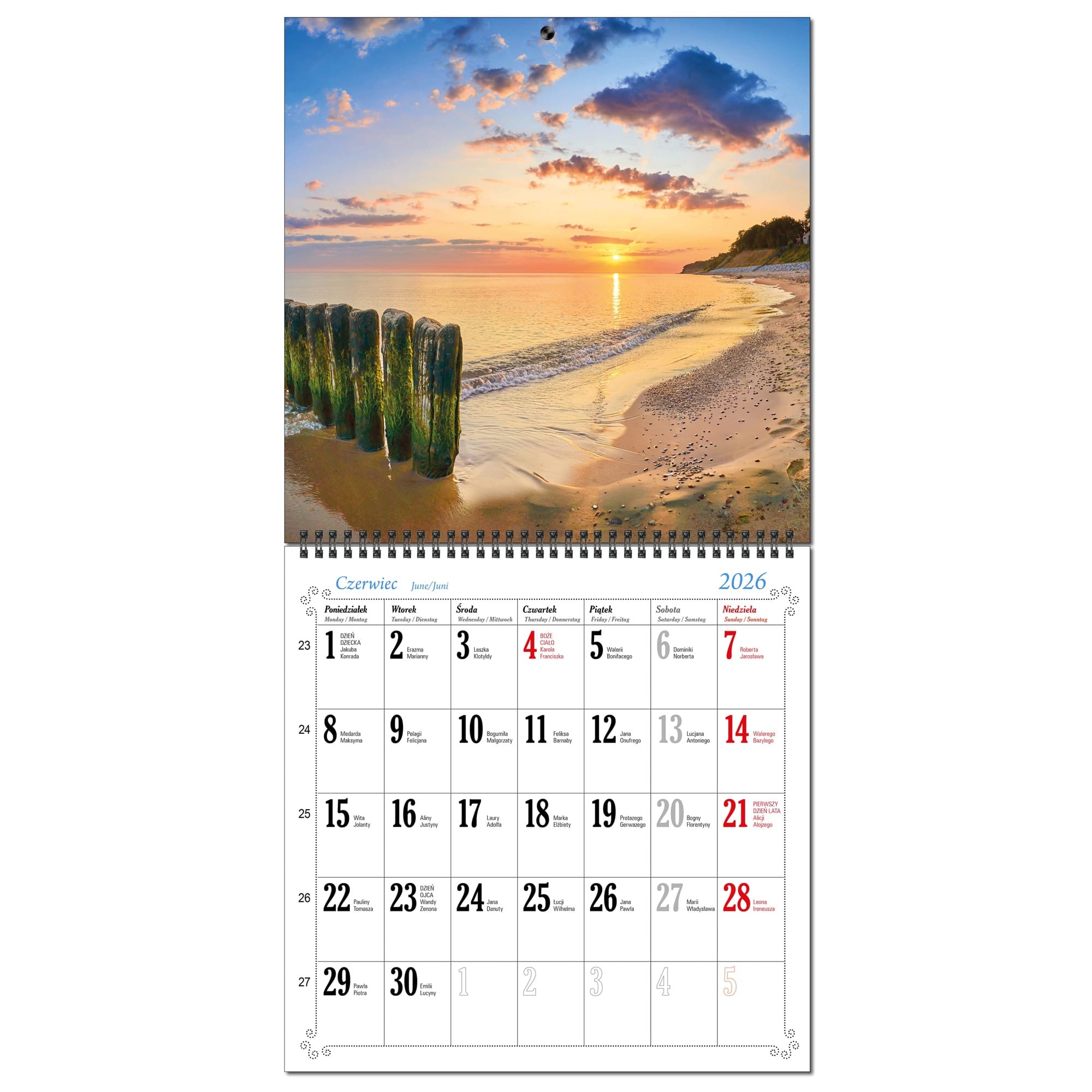 Kalendarz 2026 trójdzielny główka płaska BAŁTYK ZACHÓD KSE26-37