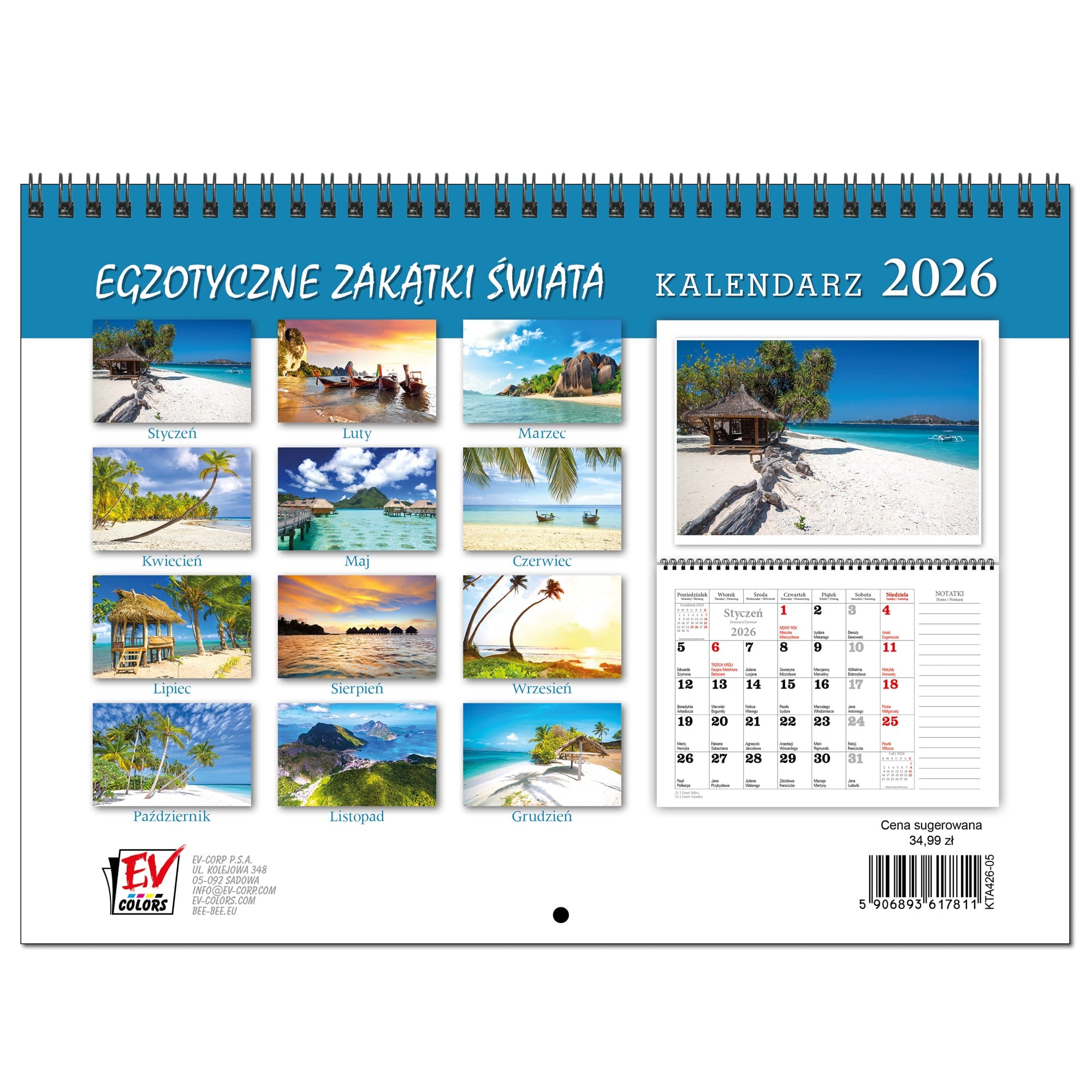 Kalendarz 2026 ścienny terminarz A3 13 planszowy EGZOTYCZNE ZAKĄTKI ŚWIATA