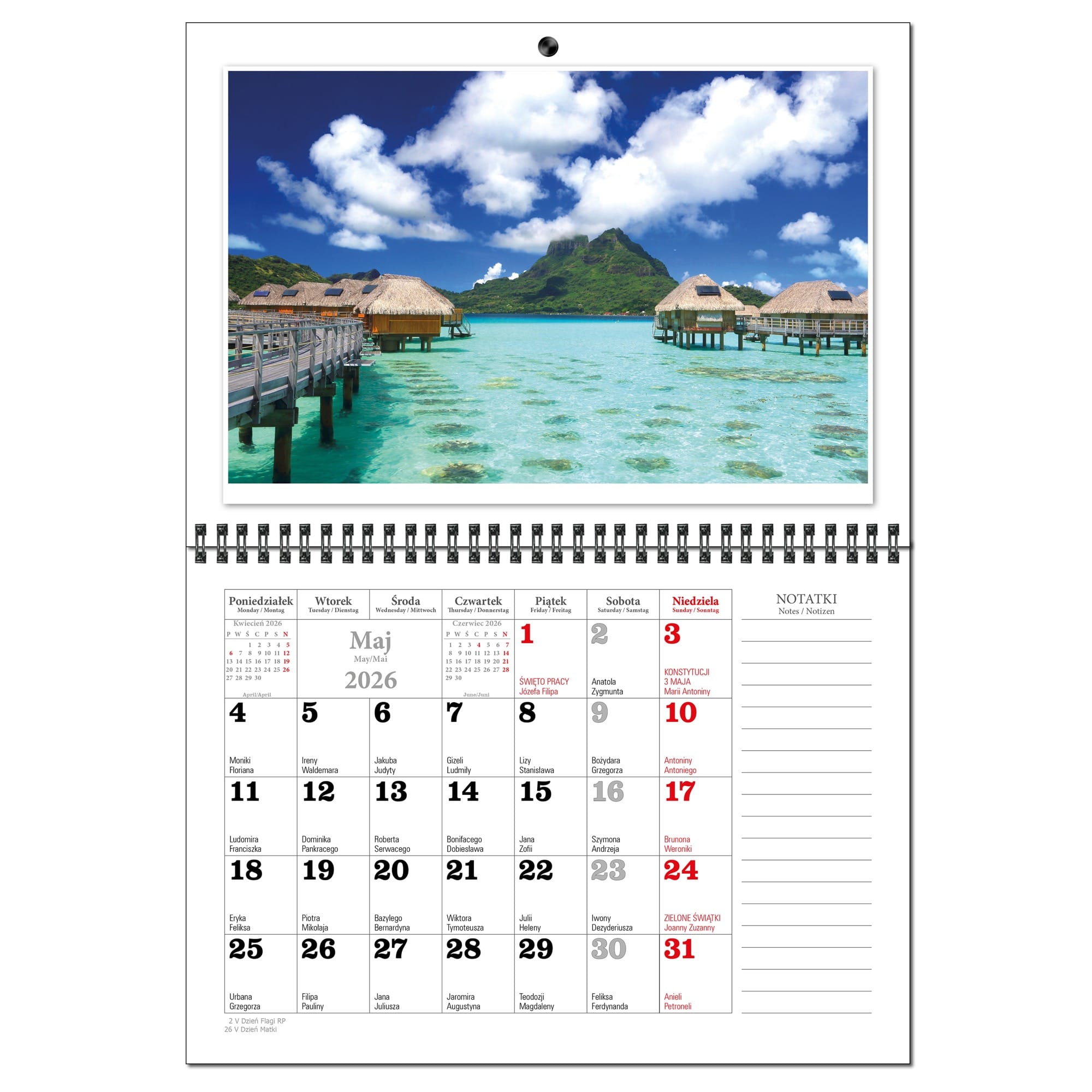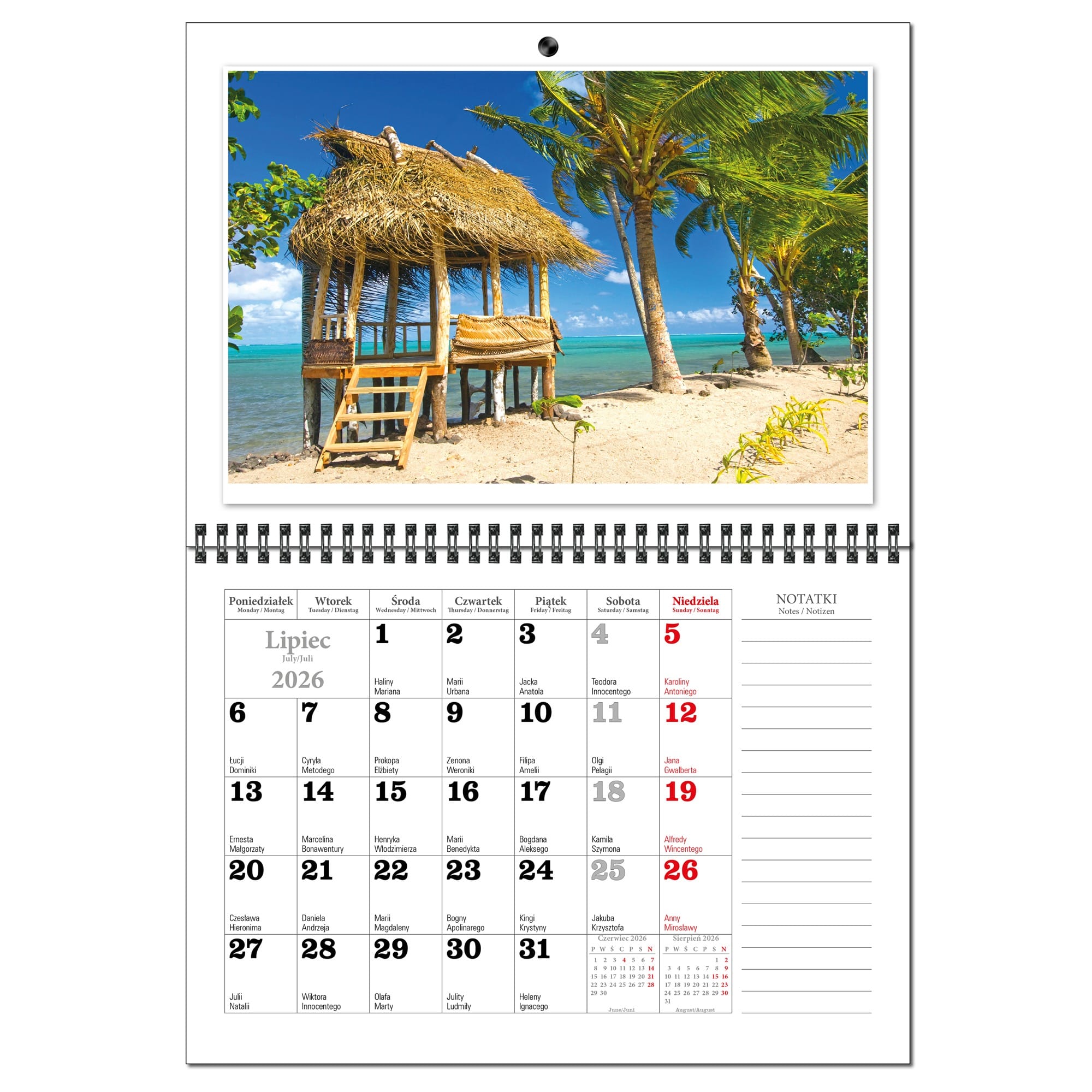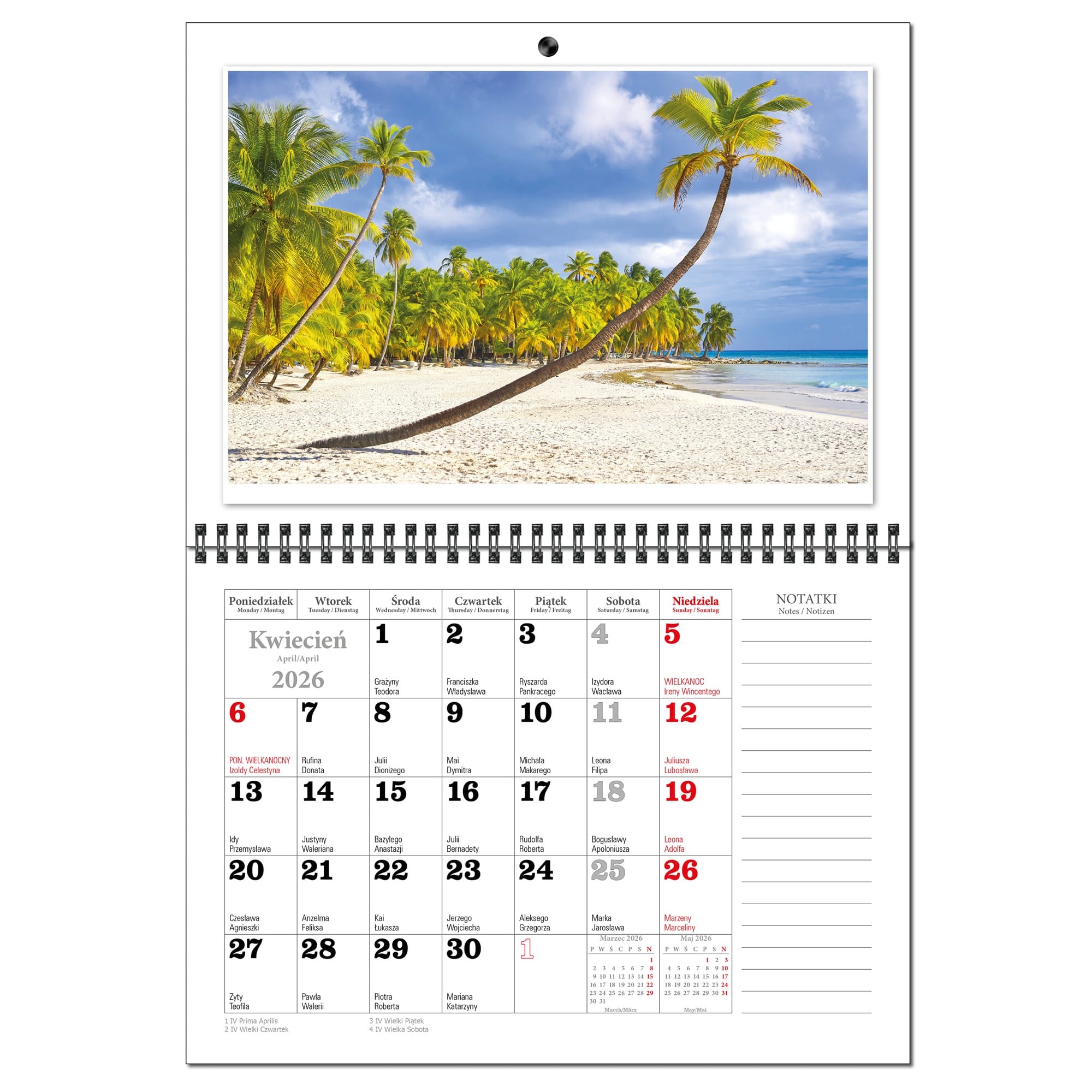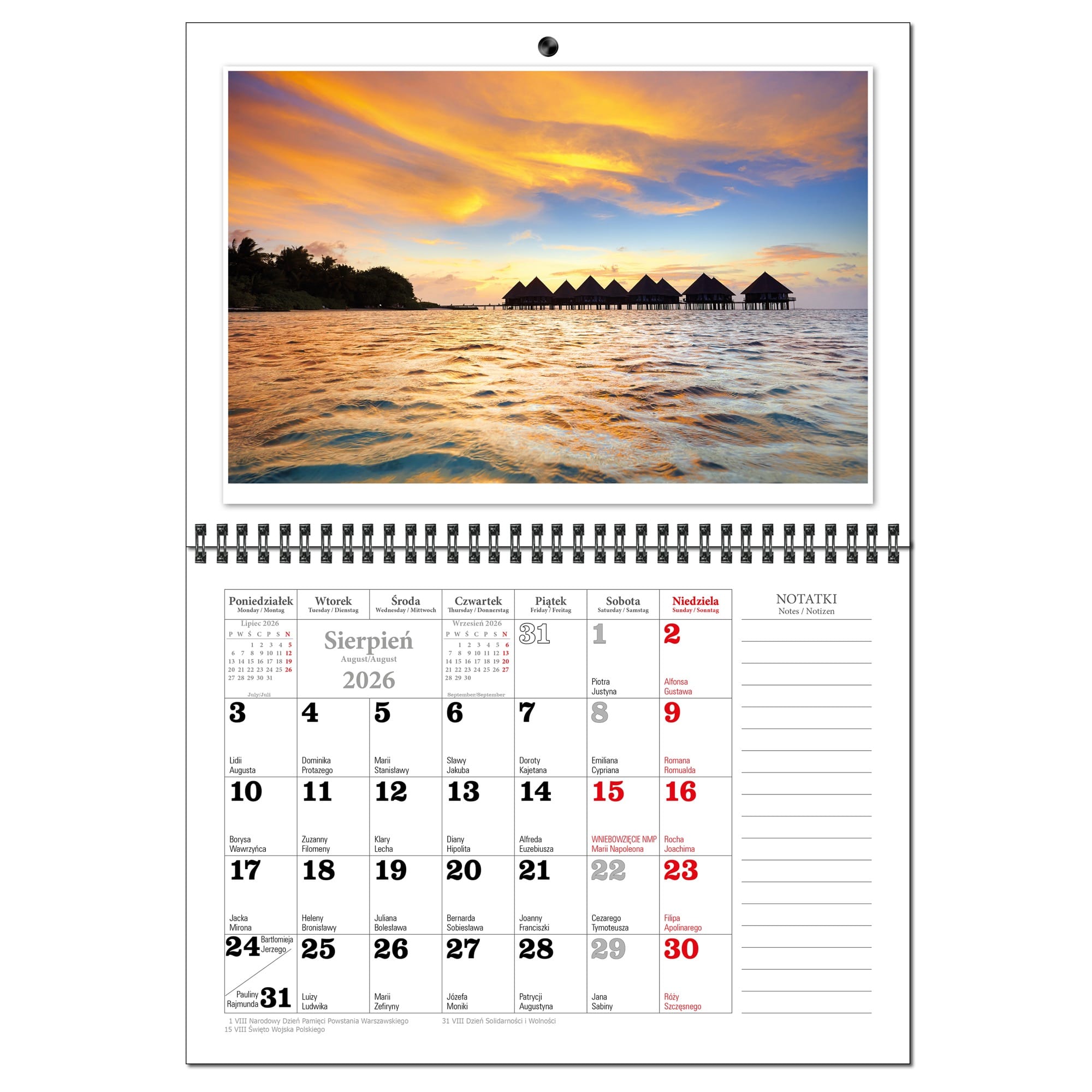 Kalendarz 2026 trójdzielny główka płaska MALEDIWY KSE26-34
