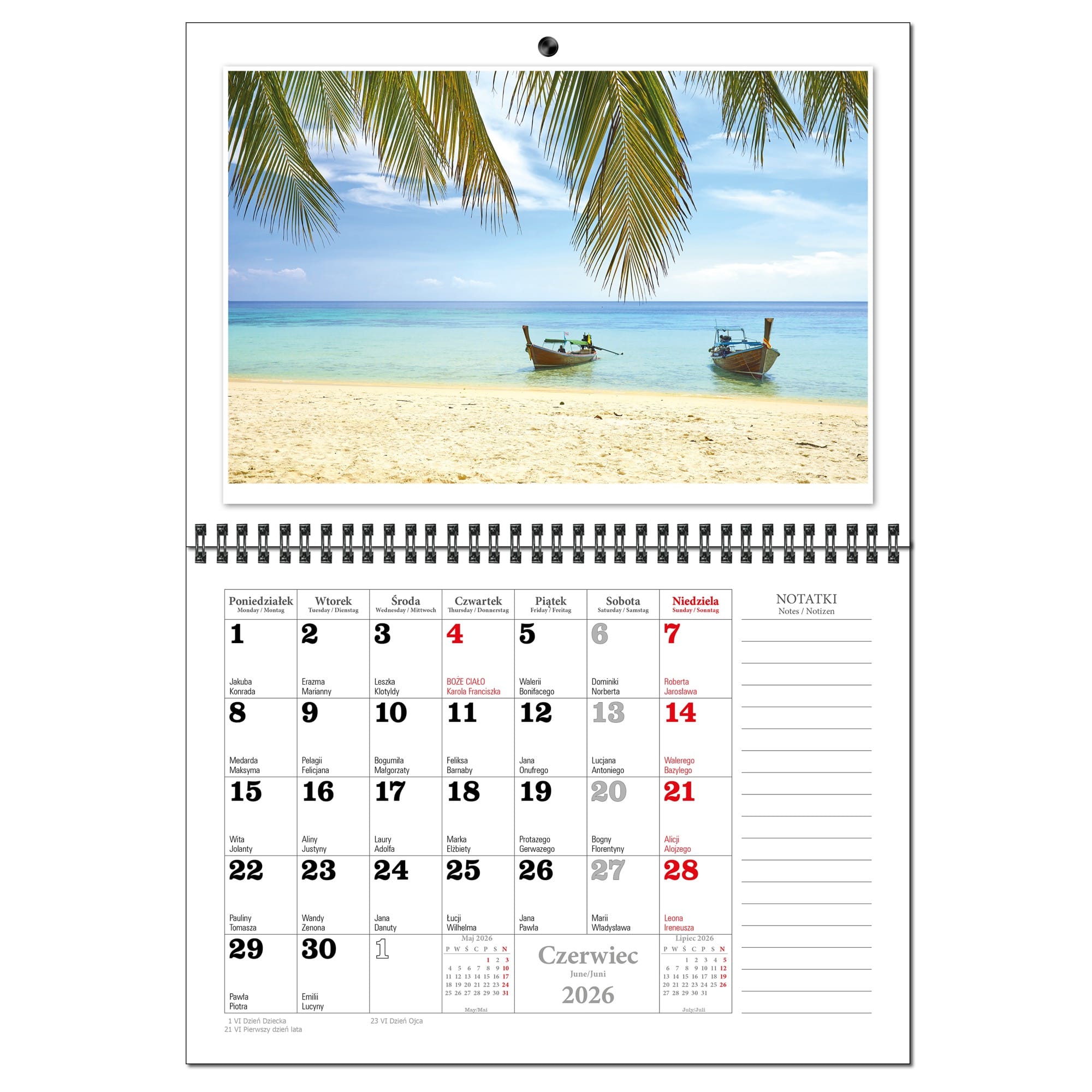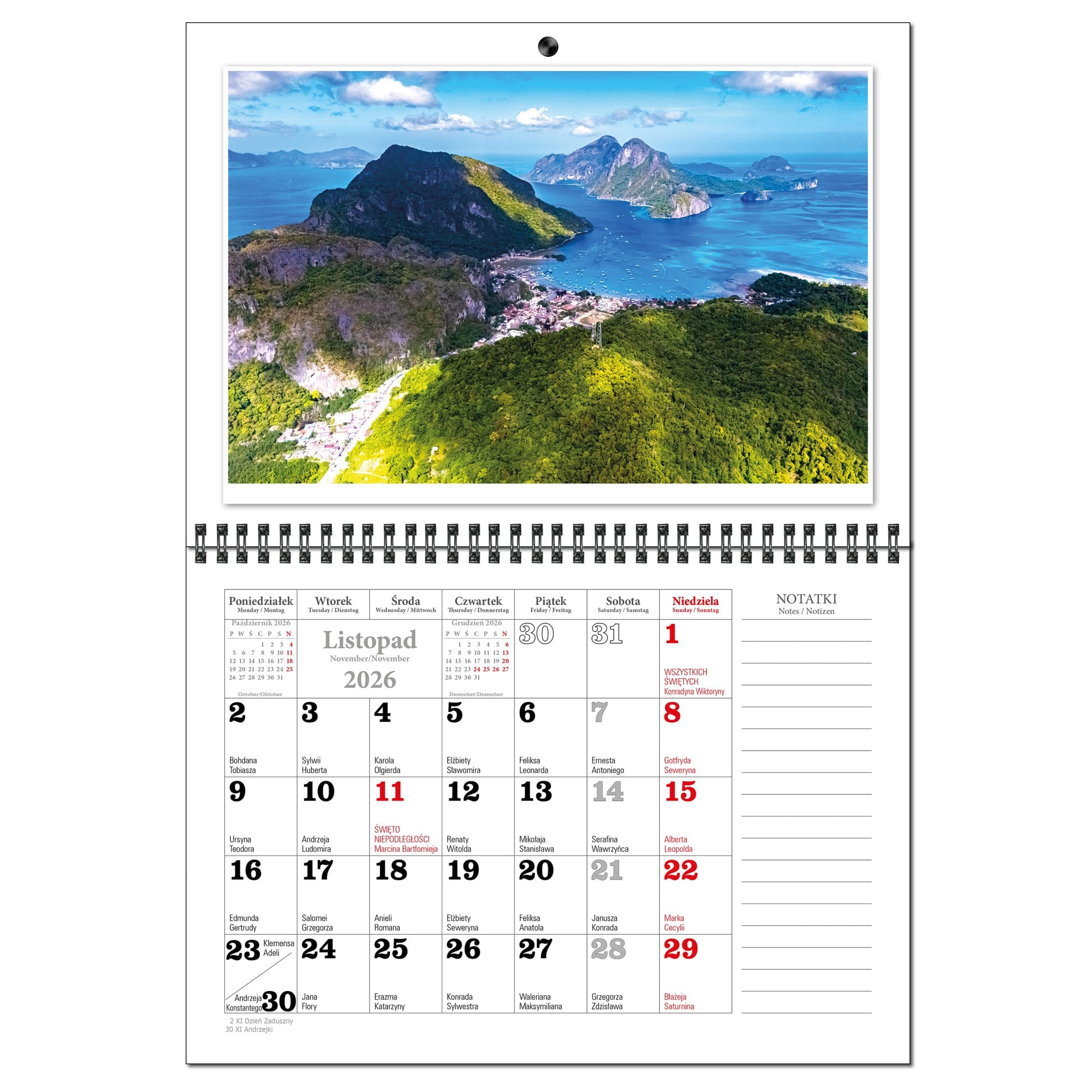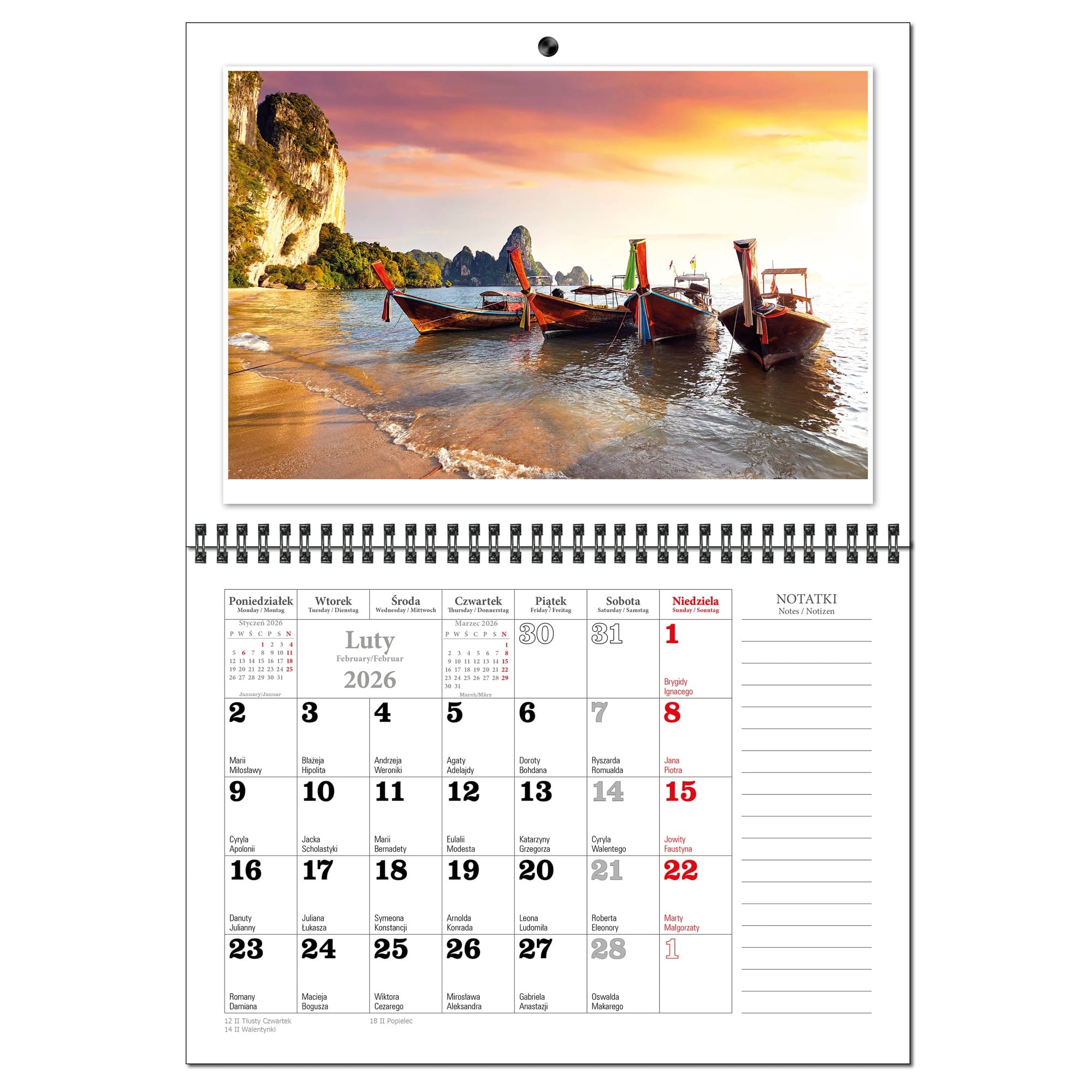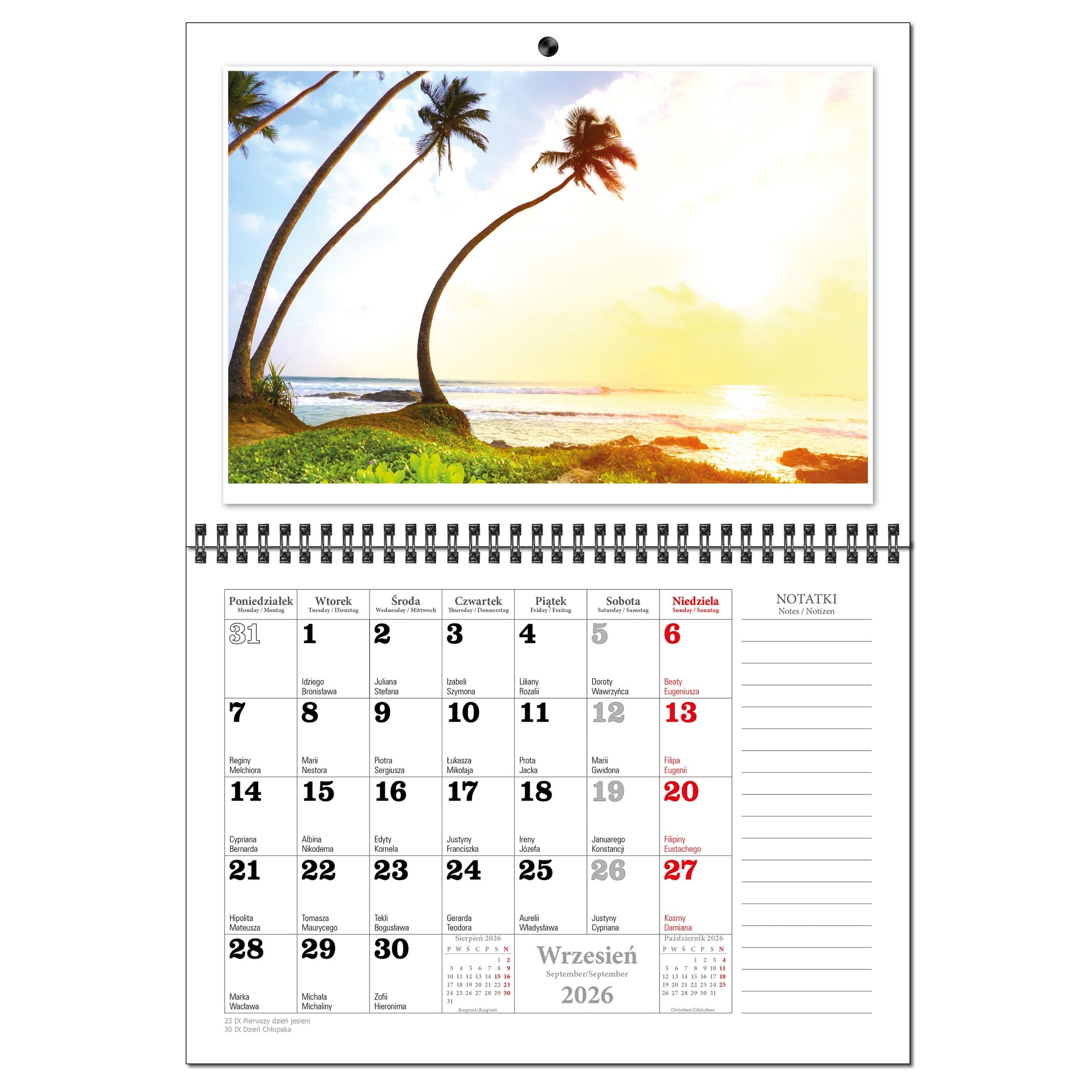 Kalendarz 2026 trójdzielny główka płaska MALEDIWY KSE26-34