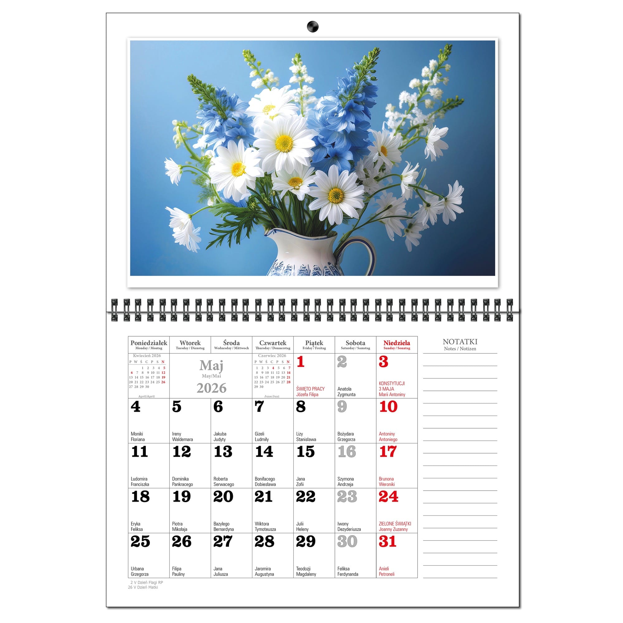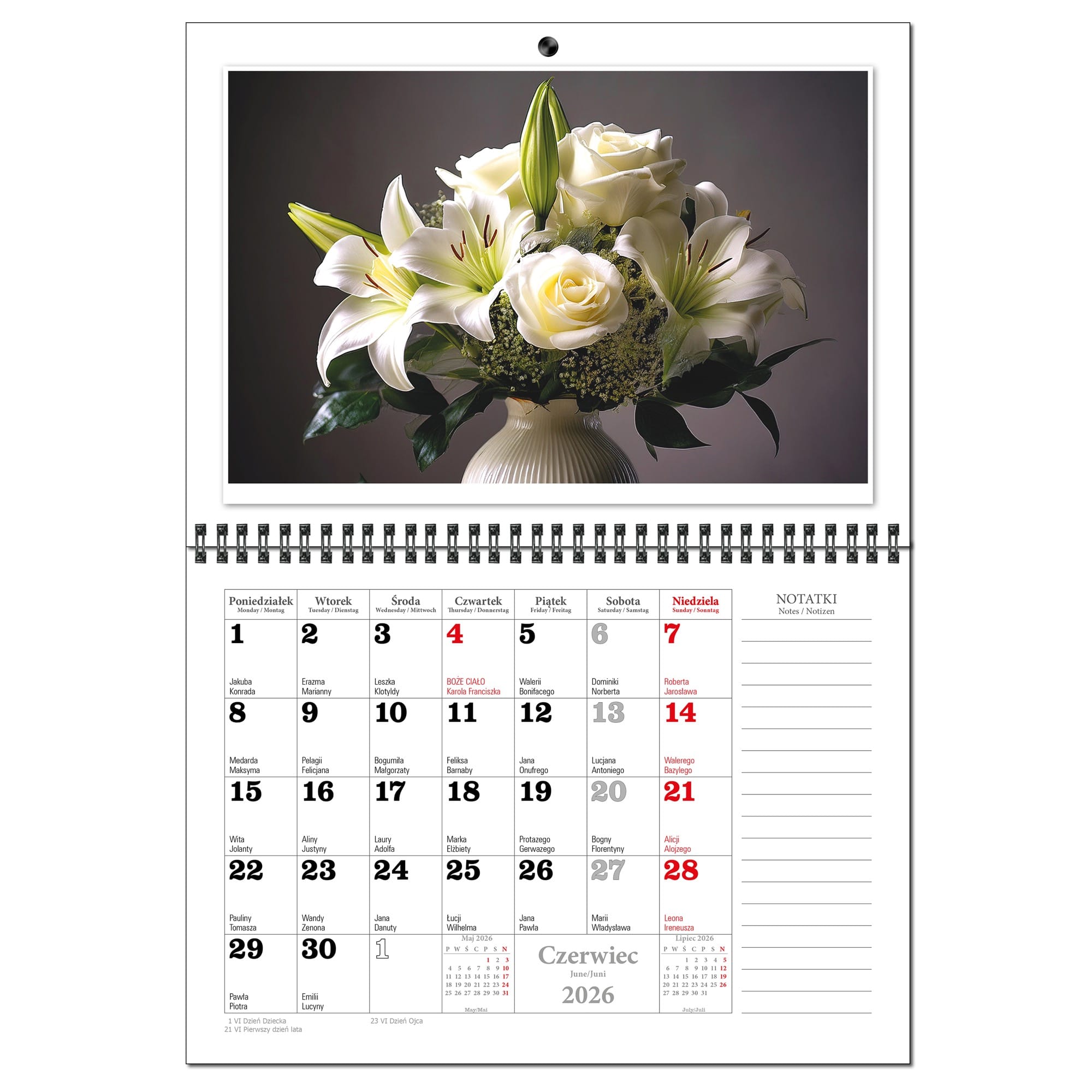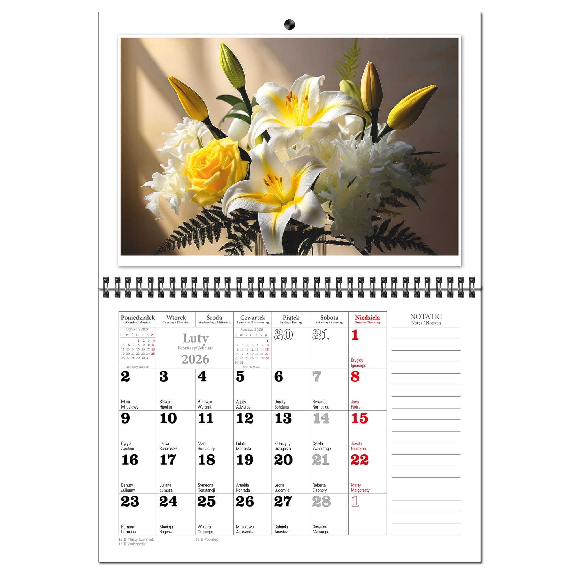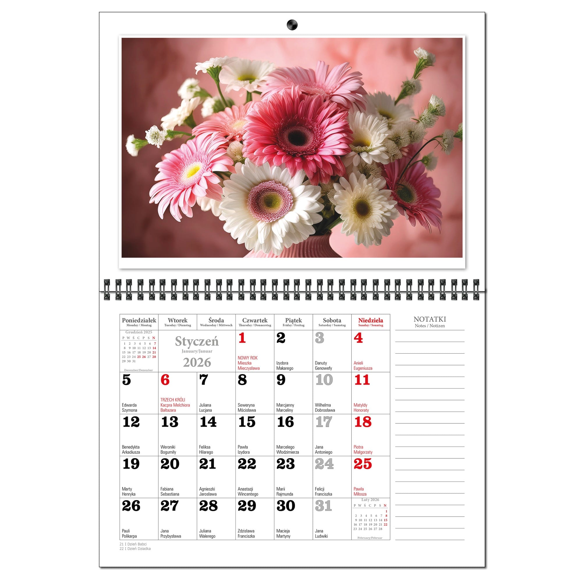 Kalendarz 2026 ścienny terminarz A3 13 planszowy KWIATY