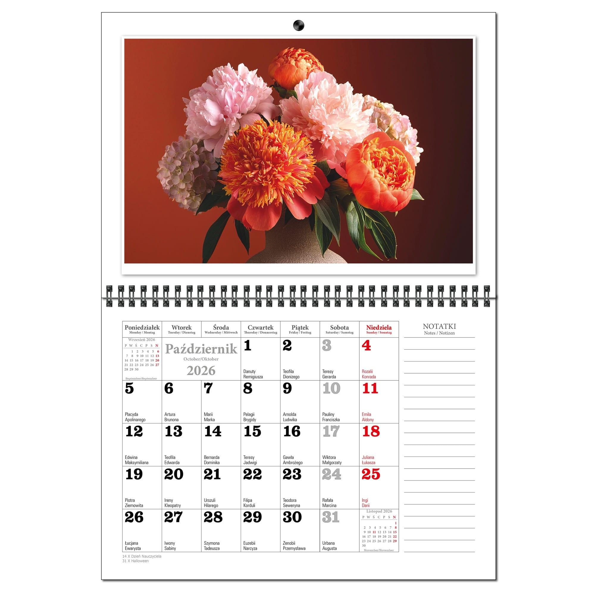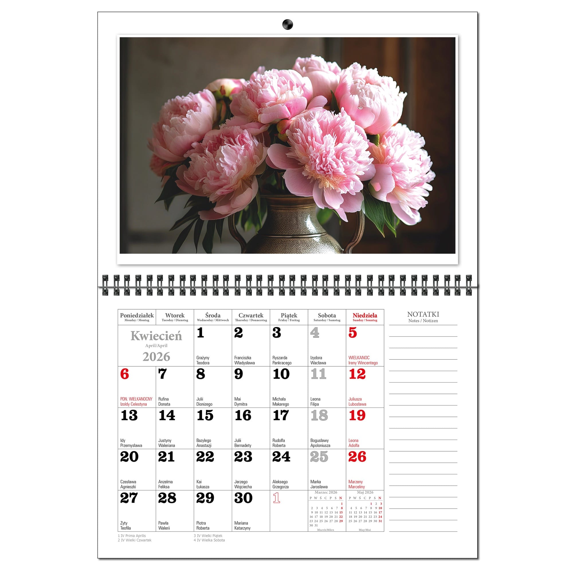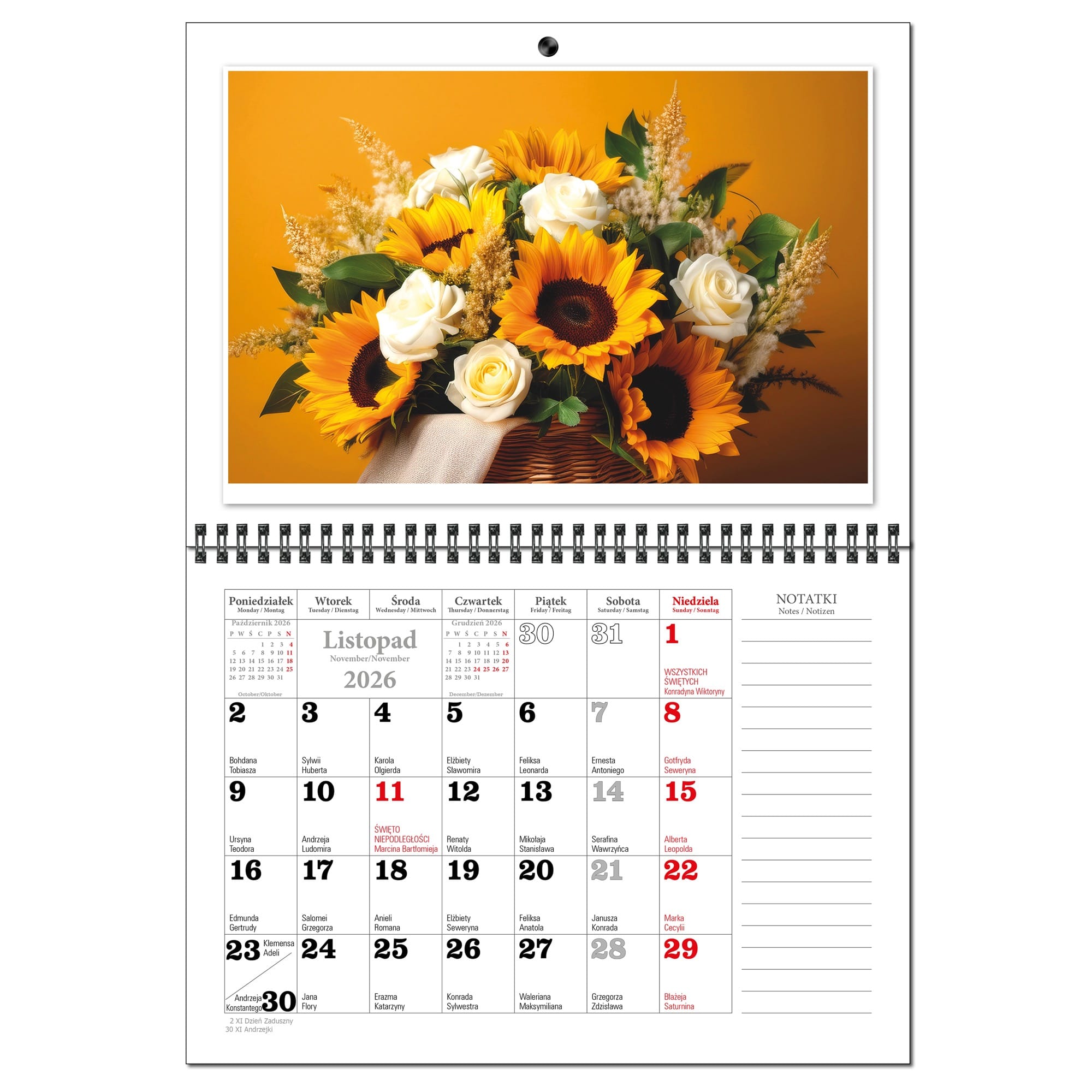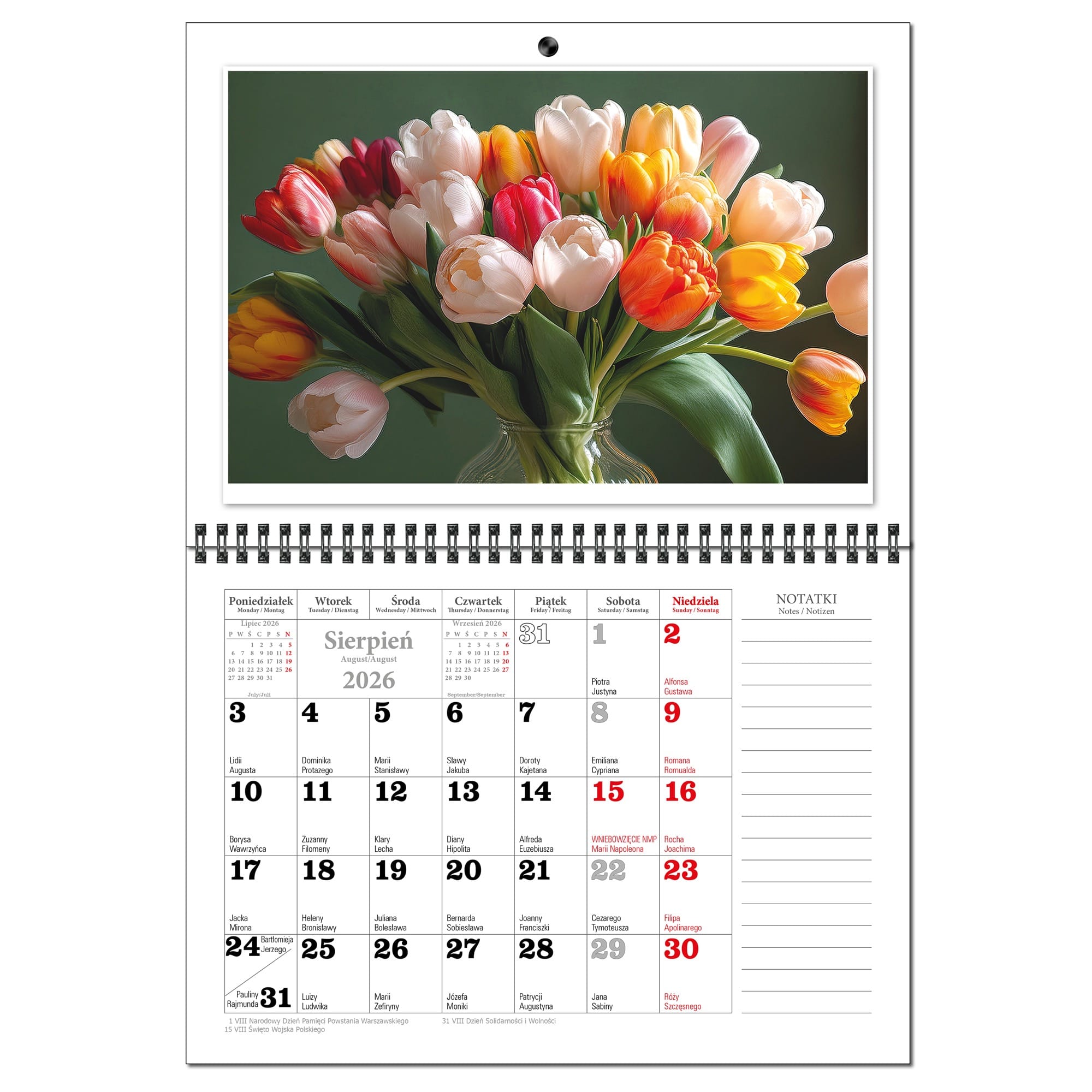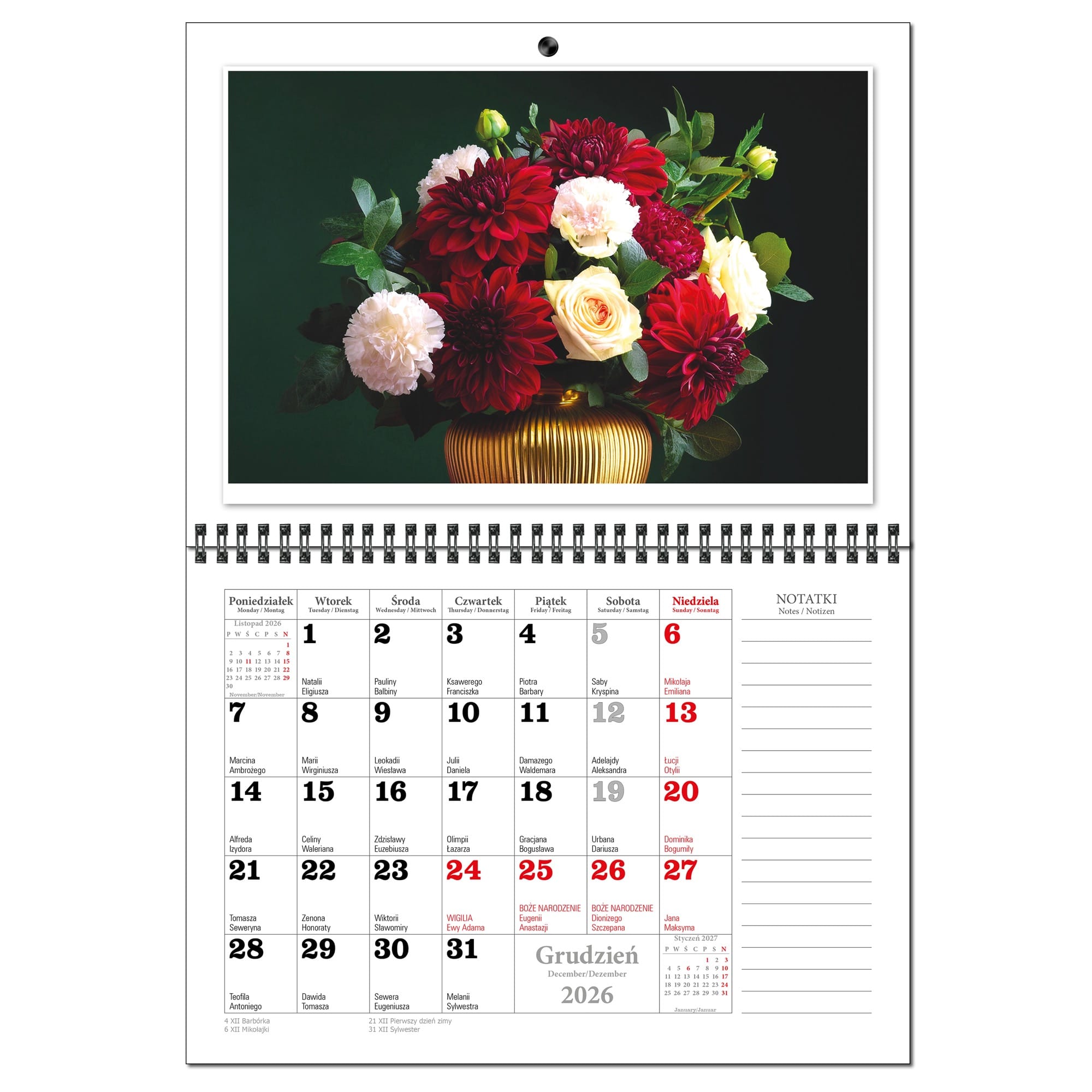 Kalendarz 2026 ścienny terminarz A3 13 planszowy KWIATY