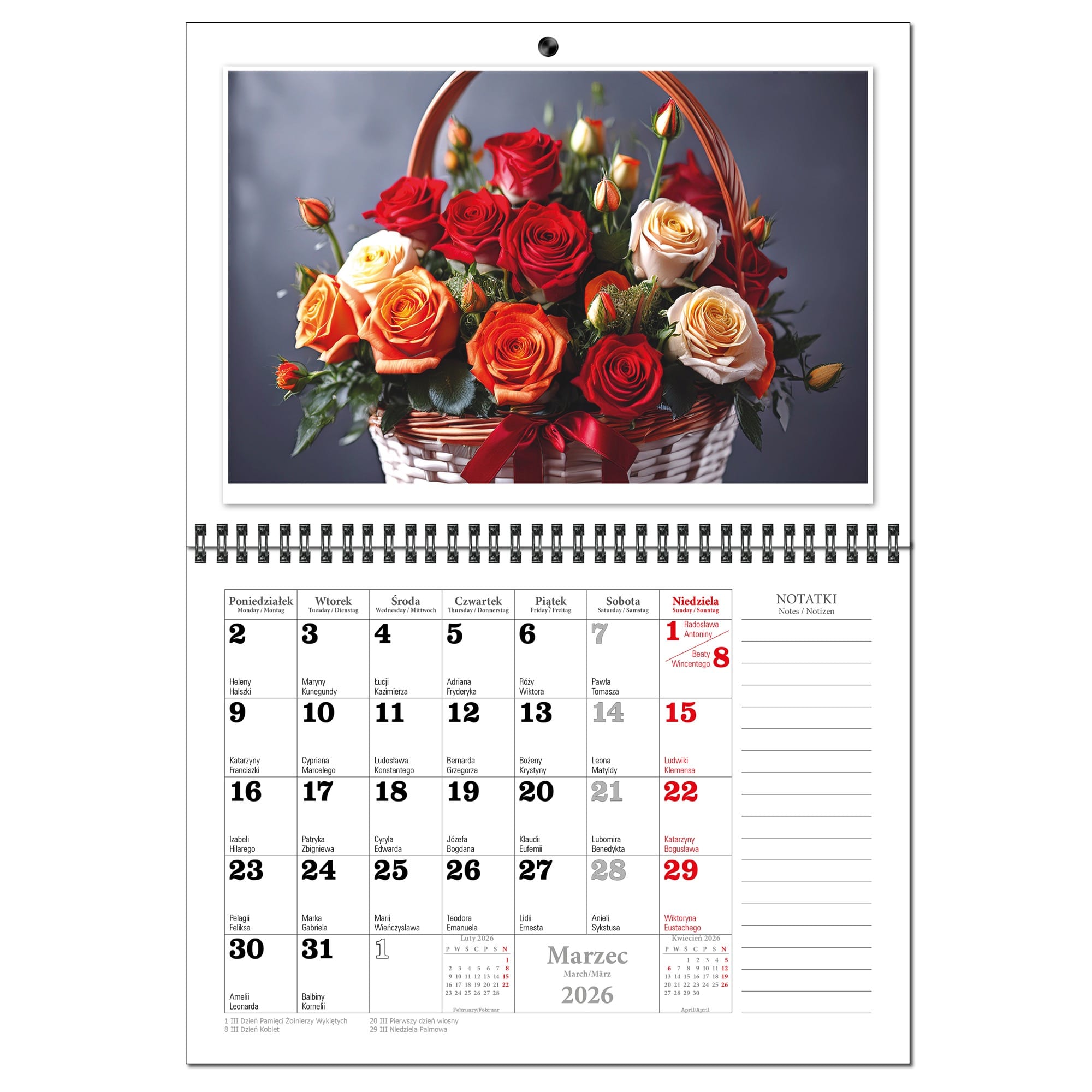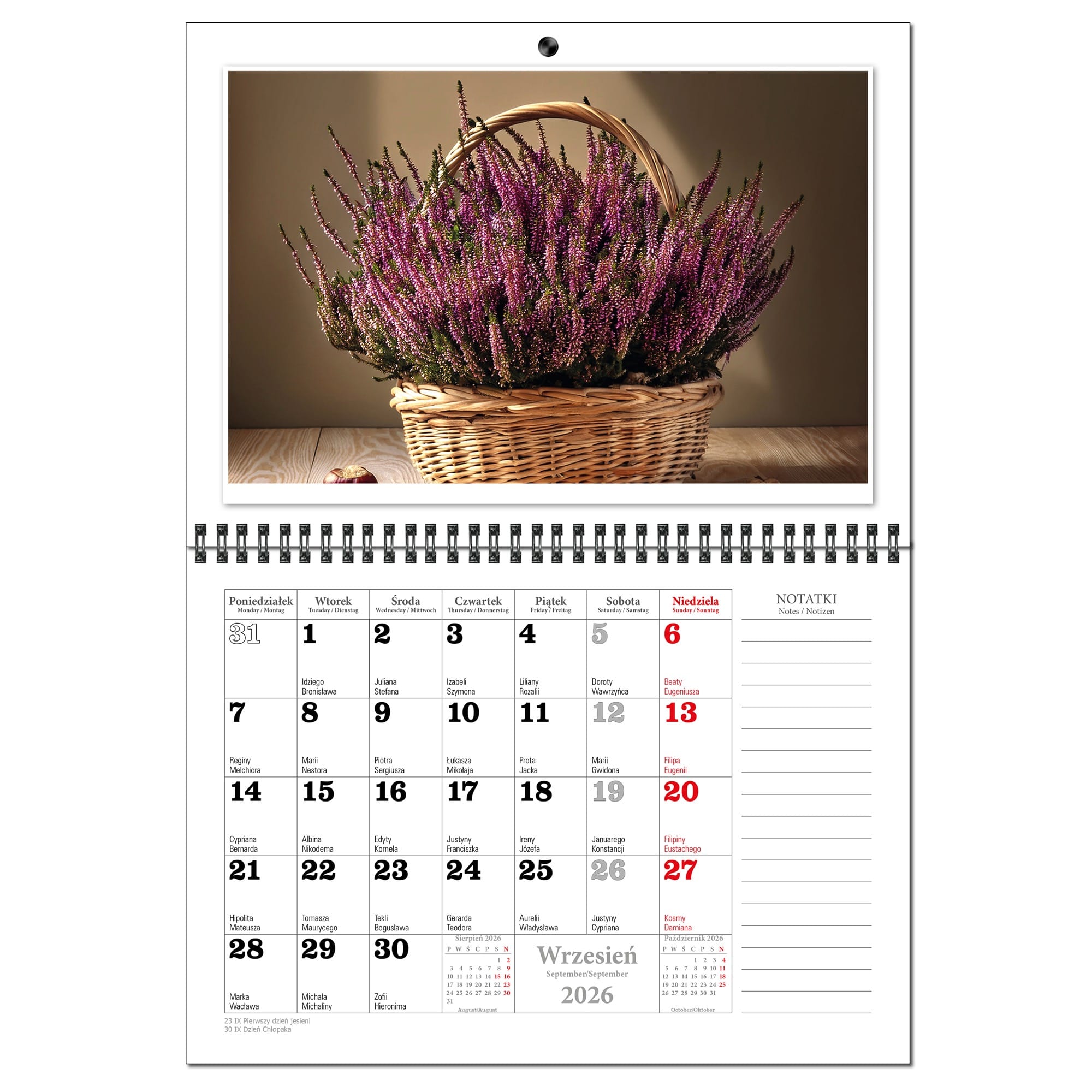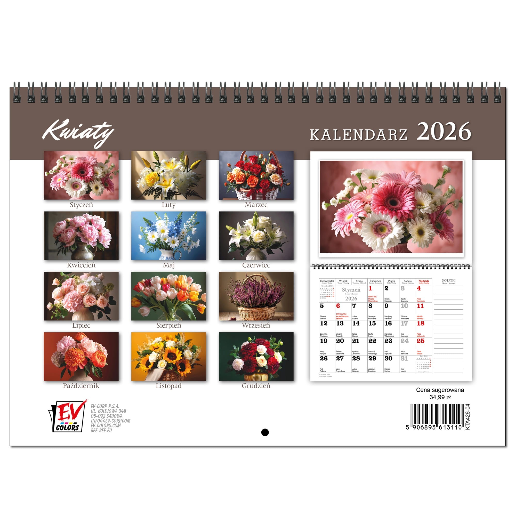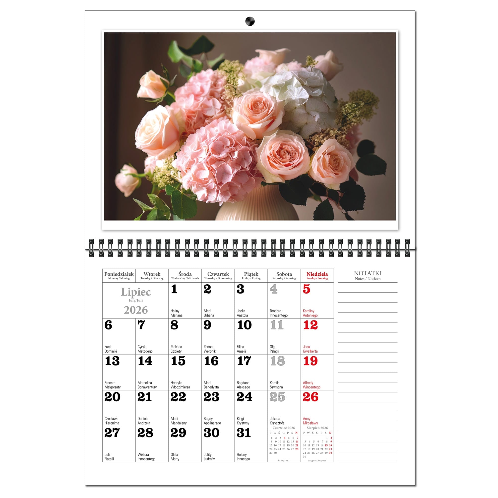 Kalendarz 2026 ścienny terminarz A3 13 planszowy KWIATY