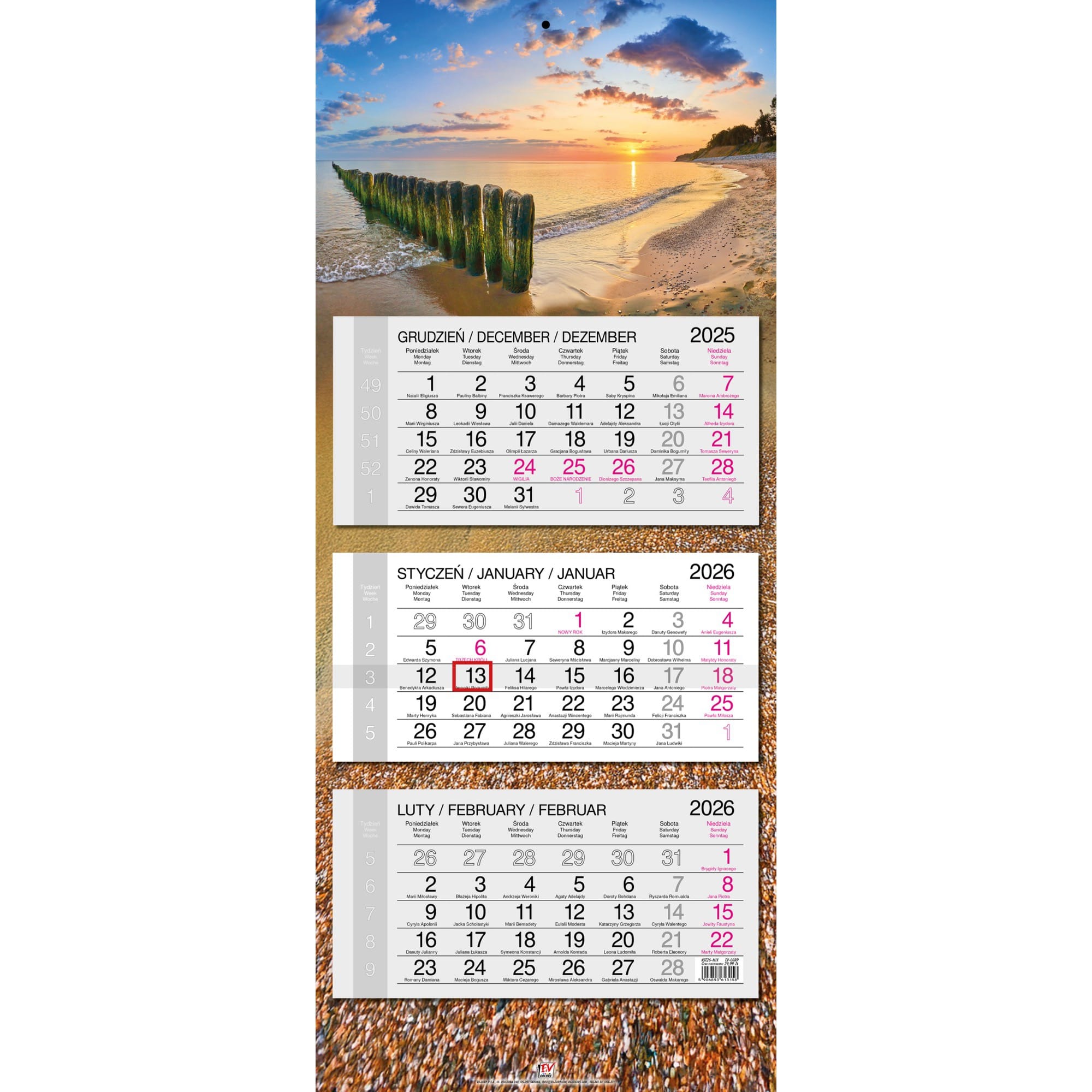 Kalendarz 2026 trójdzielny główka płaska BAŁTYK ZACHÓD KSE26-37