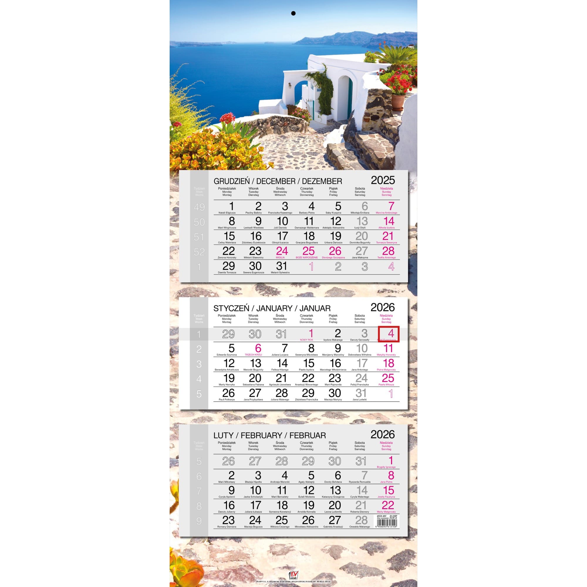 Kalendarz 2026 trójdzielny główka płaska GRECJA SANTORINI KSE26-33