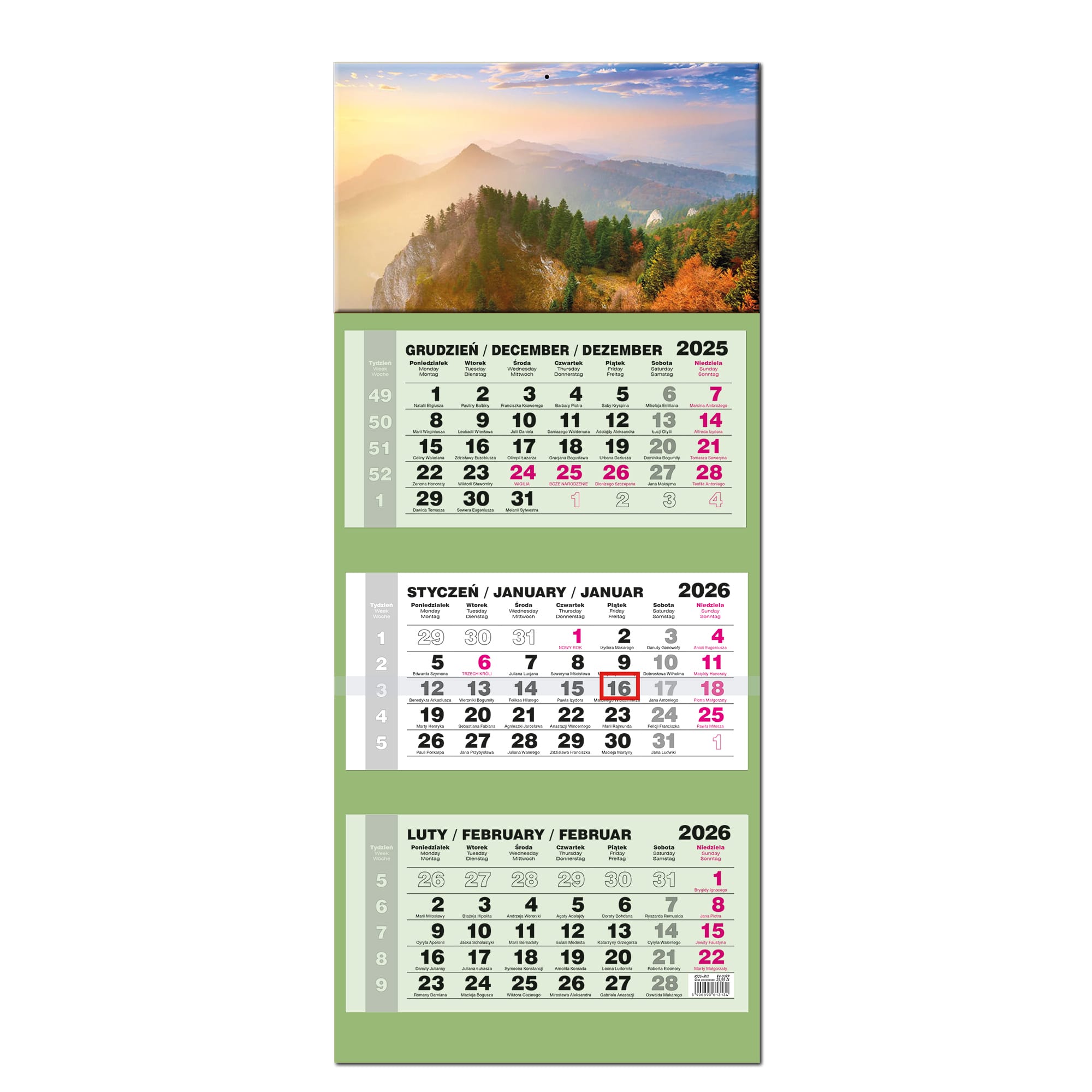 Kalendarz 2026 trójdzielny główka płaska PIENINY KSE26-30