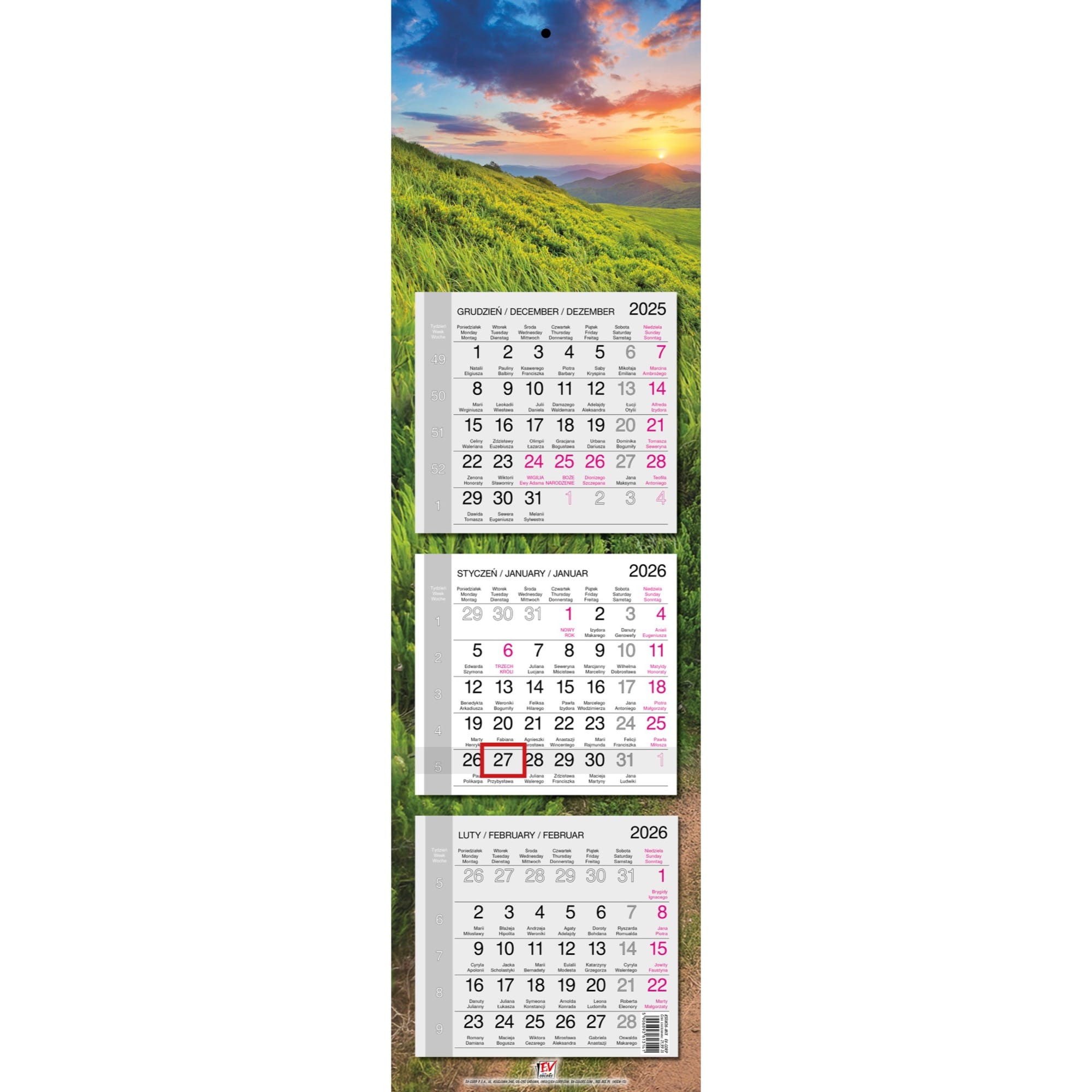 Kalendarz 2026 trójdzielny wąski główka płaska BIESZCZADY KSEW26-13