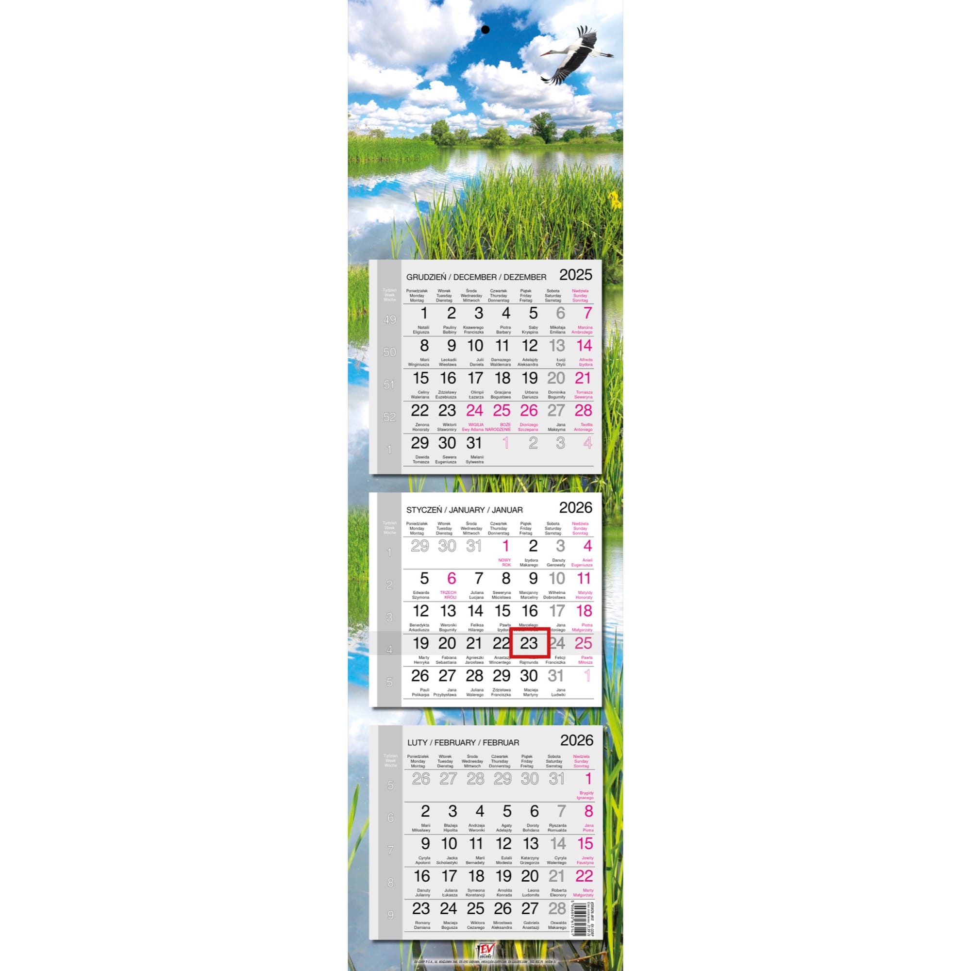 Kalendarz 2026 trójdzielny wąski główka płaska MAZURY KSEW26-5